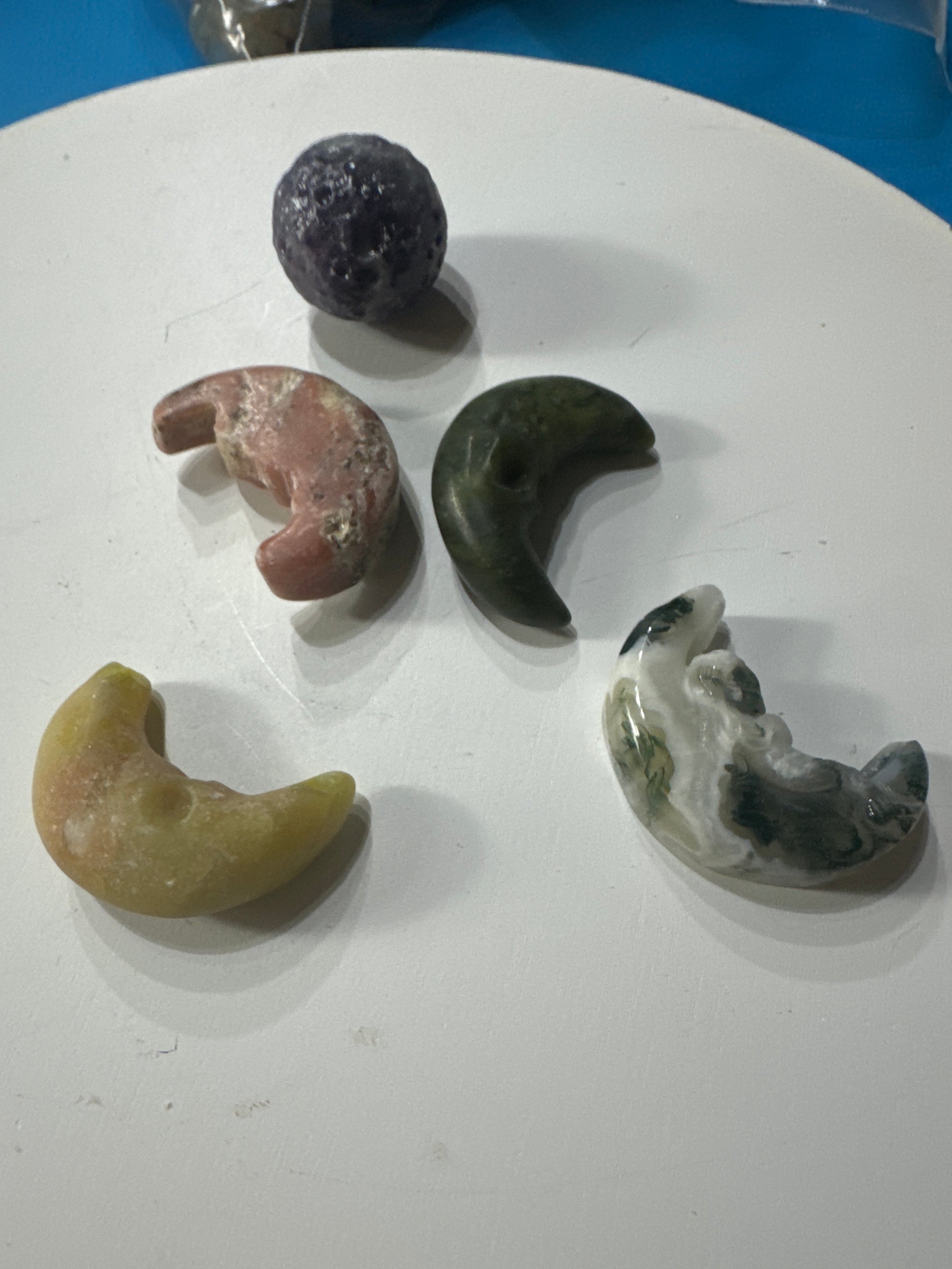 Each mini moon carving is unique in color and pattern due to natural gemstone variations, ensuring every piece is truly one of a kind.