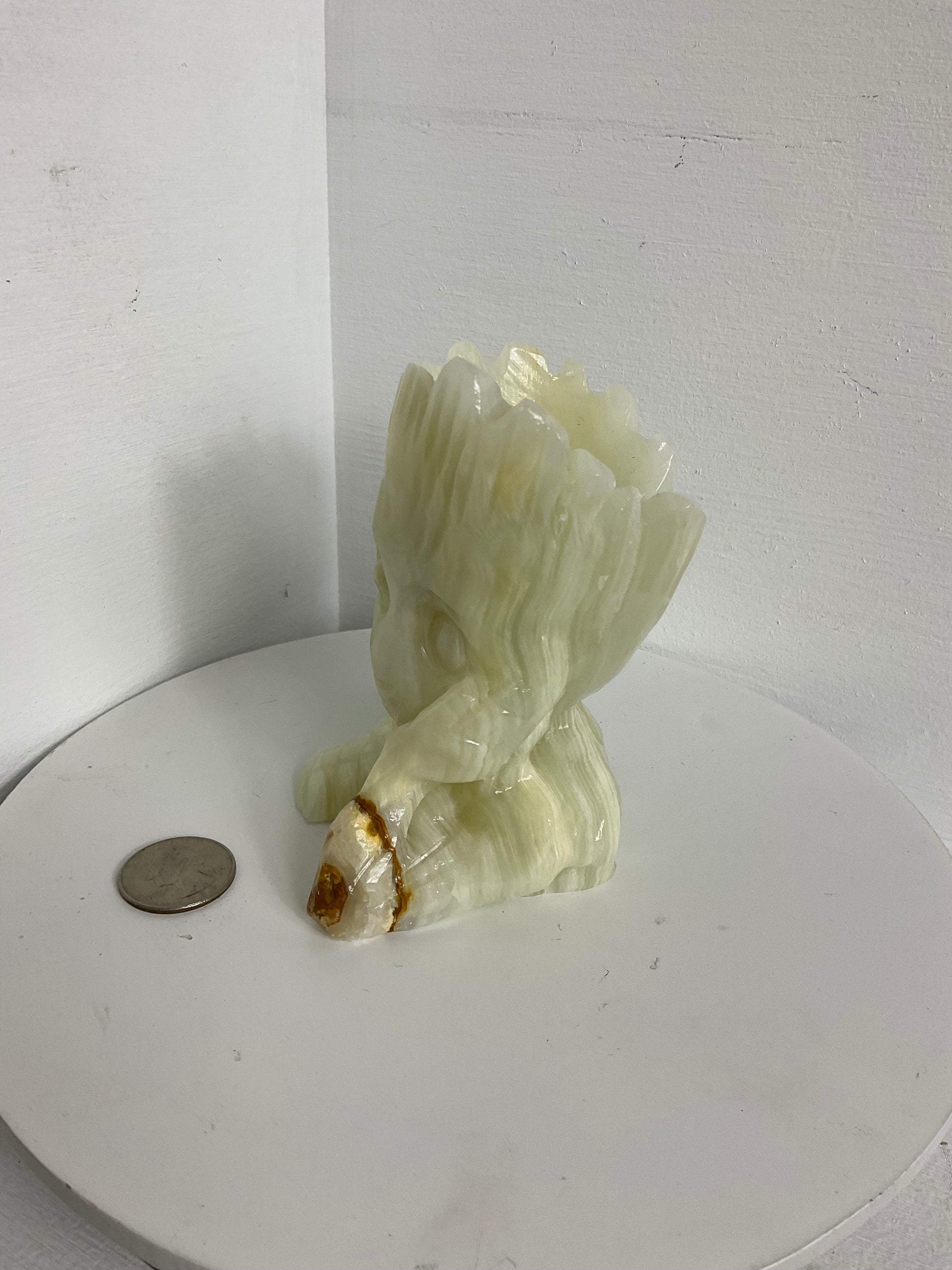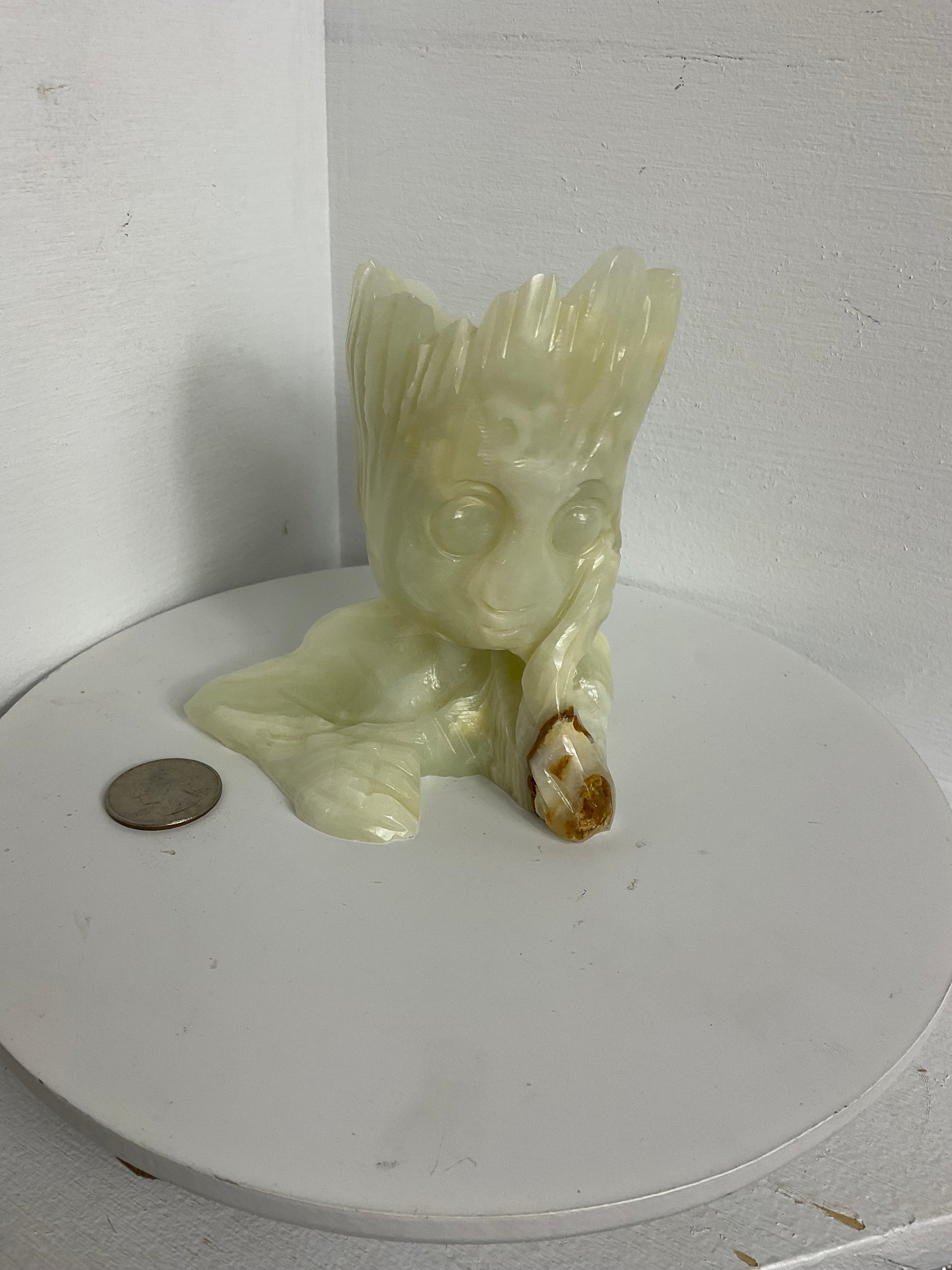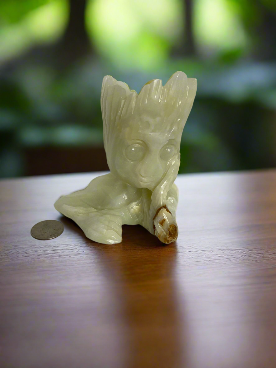 Celebrate the whimsical charm and grounding energy of our Afghan Jade Groot Carvings, symbols of growth, resilience, and harmony with nature. This intricately carved figure captures the essence of Groot, blending the nurturing properties of Afghan jade with the beloved character’s iconic representation of nature’s vitality and strength.