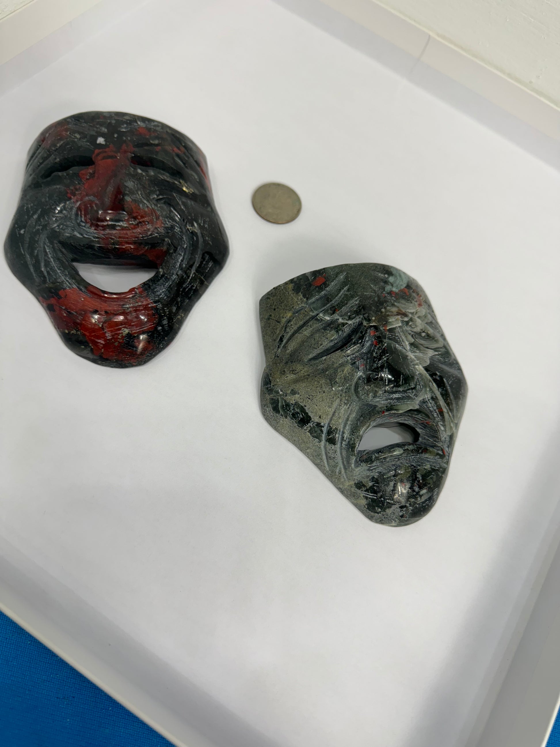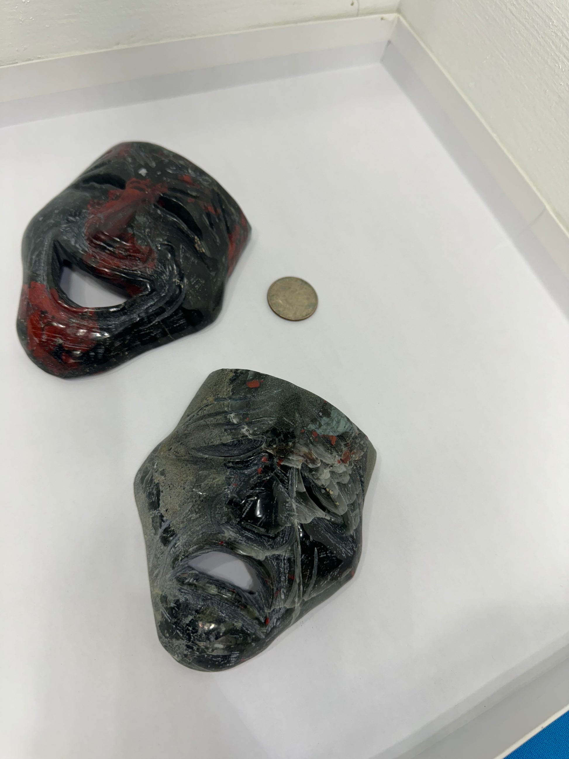 ⢠Emotional Balance and Resilience: African Bloodstone is a powerful stone for balancing emotions, helping you navigate moments of happiness and sorrow. The dual masks capture this essence, encouraging strength and acceptance of all emotions.