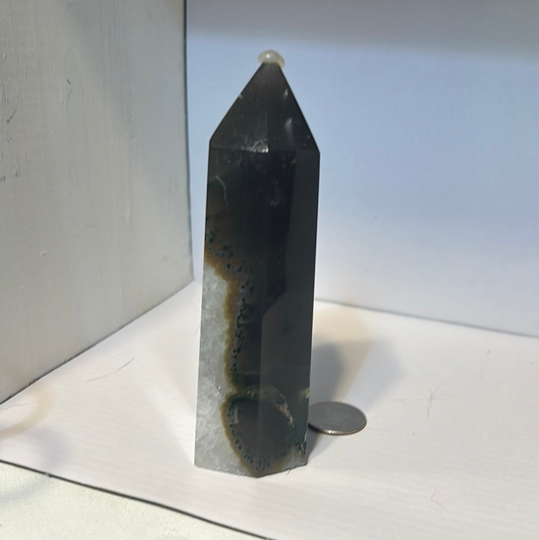 Whether displayed in your home as a symbol of harmony and renewal, used in meditation and mindfulness practices to enhance focus and clarity, or gifted to a loved one as a token of stability and grounding, our Banded Agate Tower brings a touch of natural beauty and spiritual serenity to any space.
