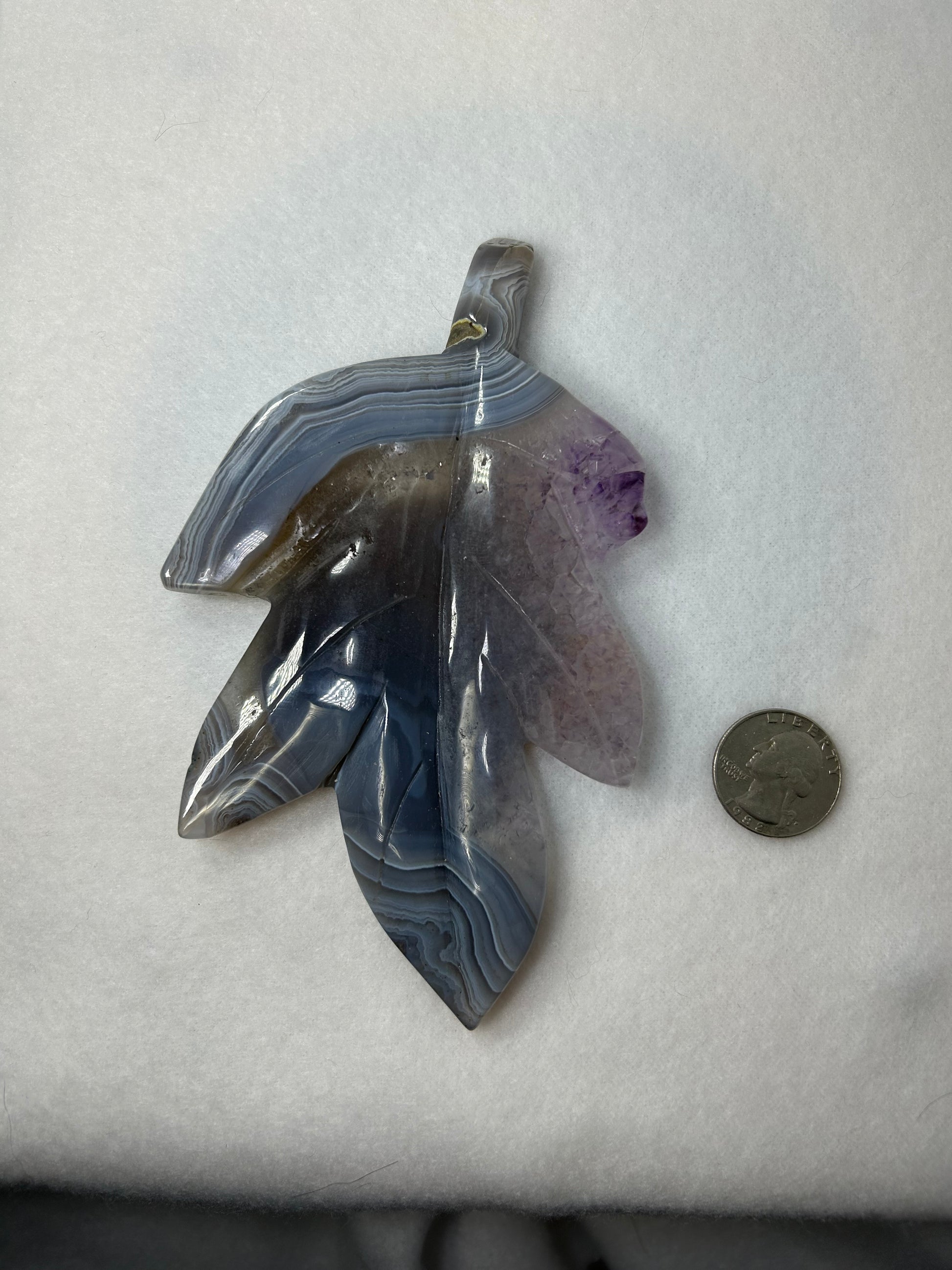 Please note that due to the natural variations in crystals, each Banded Agate Leaf Carving may vary slightly in color, pattern, and appearance. The images provided are for reference purposes only, and the carving you receive may differ from the ones depicted.