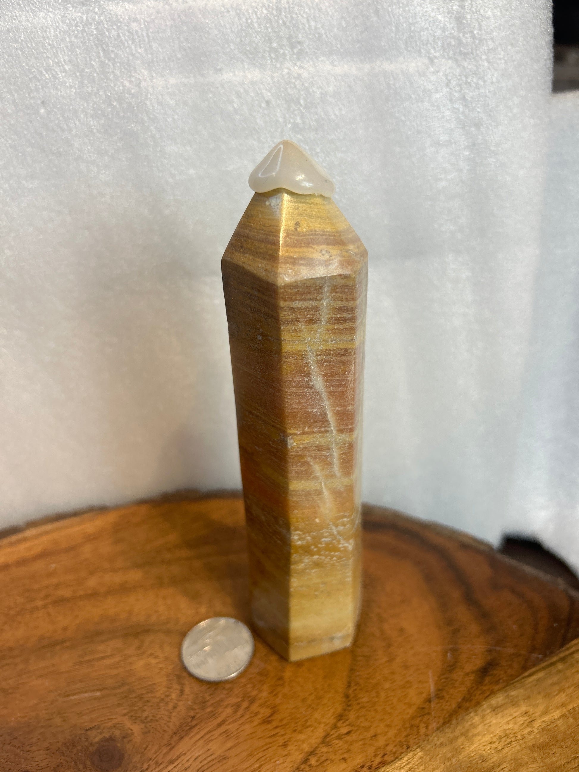 YELLOW BANDED CALCITE TOWER -Positivity, Confidence, and Energy Amplification
