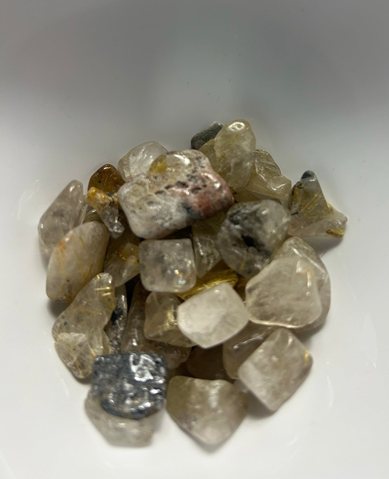 Enhance your energy with our **Blue Rutile Chips**, symbols of mental clarity, intuitive growth, and harmony. These chips, featuring delicate blue rutile inclusions in clear quartz, are perfect for fostering spiritual connection, communication, and emotional balance.