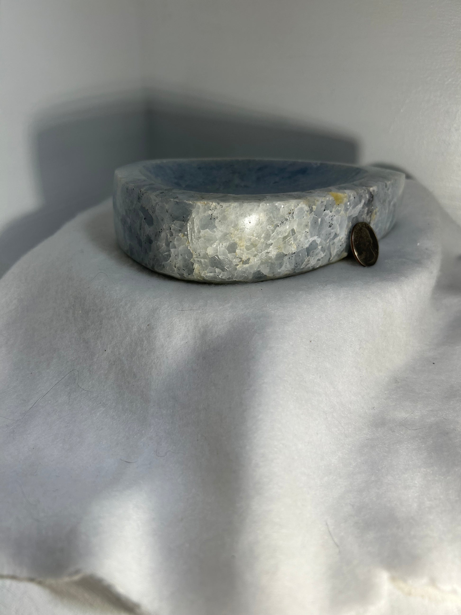 Whether used as a sacred vessel for holding offerings and intentions, as a focal point for meditation and visualization practices, or as a decorative accent in your sacred space, our Celestine Bowl serves as a portal to the celestial realms, inviting you to explore the mysteries of the cosmos and awaken your soul's highest potential.
