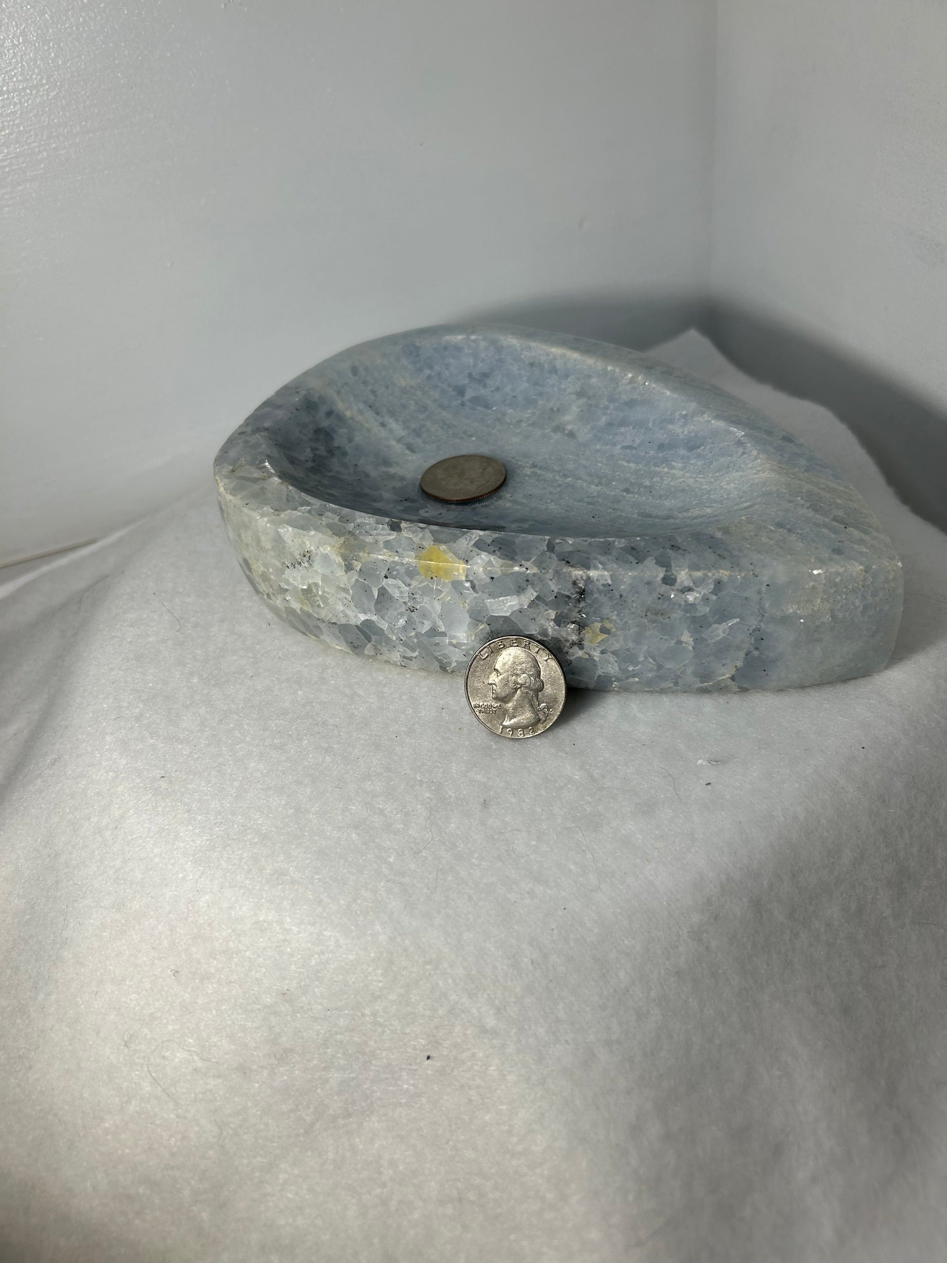 Immerse yourself in the celestial realms and awaken your soul to the infinite possibilities of the universe with our celestial Celestine Bowl. Crafted from the ethereal celestine crystal, each bowl radiates with the serene energies of divine connection, inner peace, and spiritual harmony, inviting you to journey beyond the stars and discover the profound depths of your being.