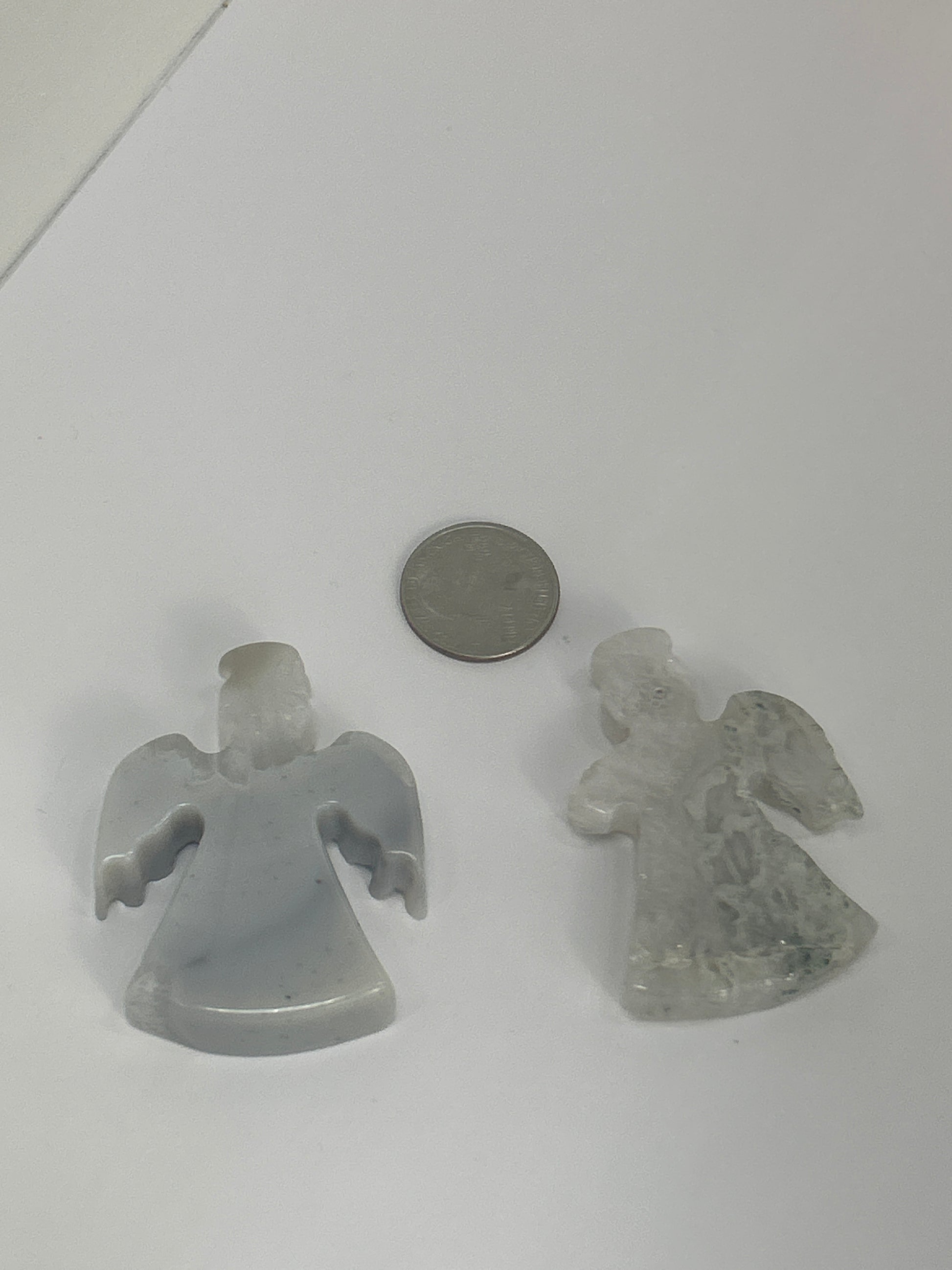 Each Chalcedony Angel is intricately carved, showcasing soft blue or pastel hues with a polished finish that highlights the natural beauty of the stone. Its graceful design and smooth texture make it a meaningful and serene addition to any collection.