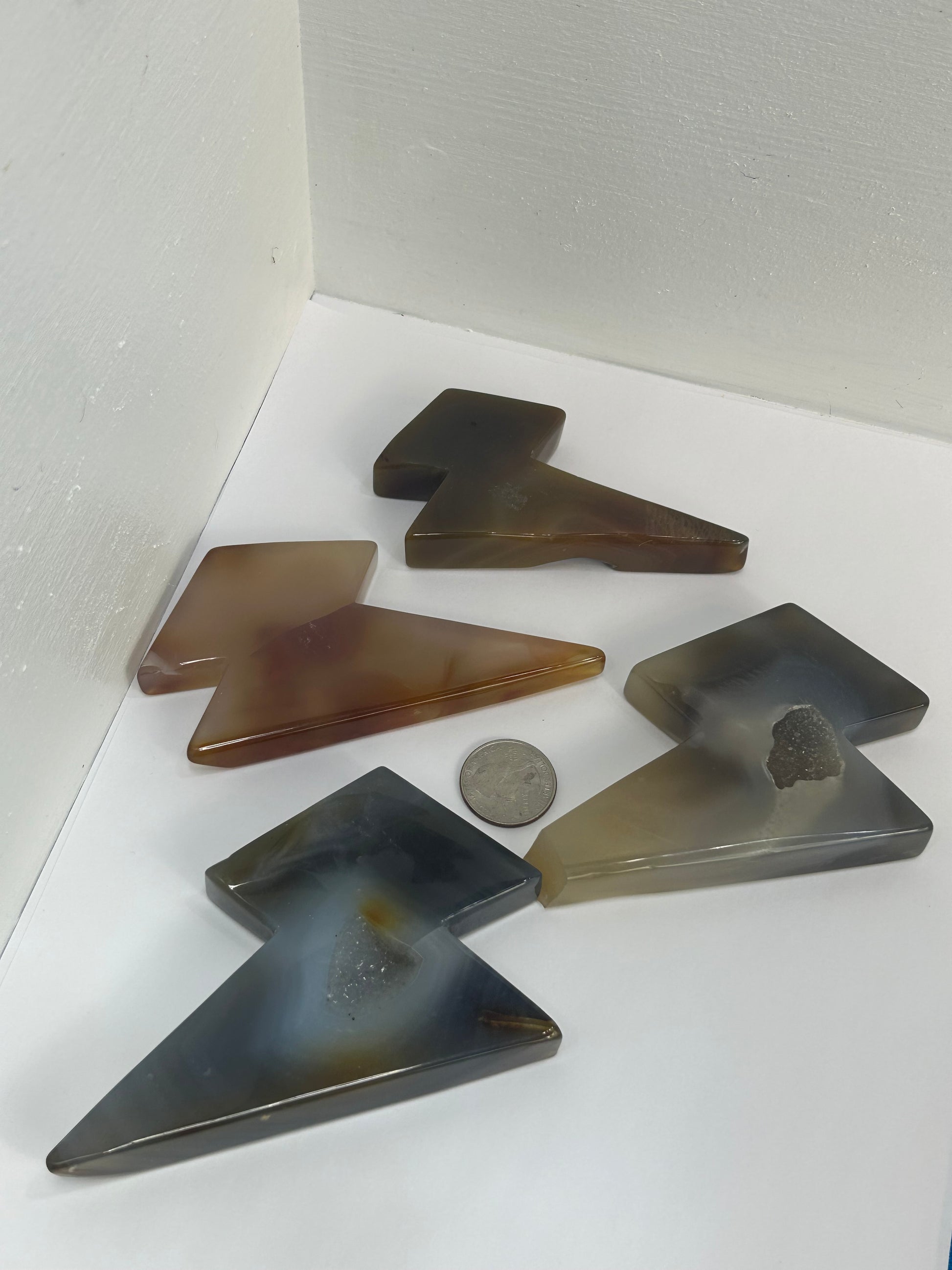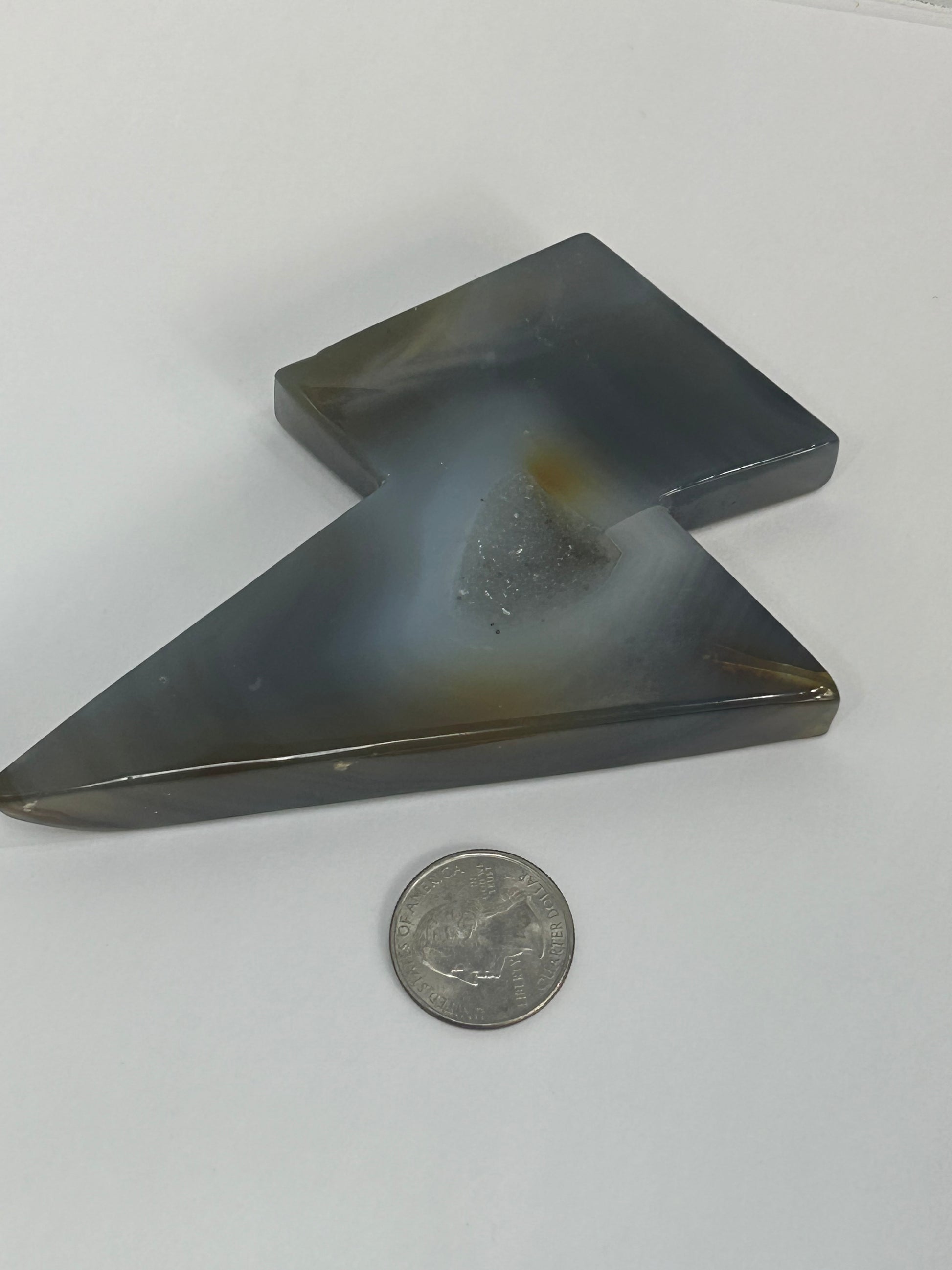 Harness the electrifying power of transformation with our Chalcedony Lightning Bolt, a symbol of clarity, emotional healing, and energetic flow. Known for its calming hues and smooth texture, chalcedony radiates peace and harmony while the lightning bolt shape inspires focus and dynamic change.