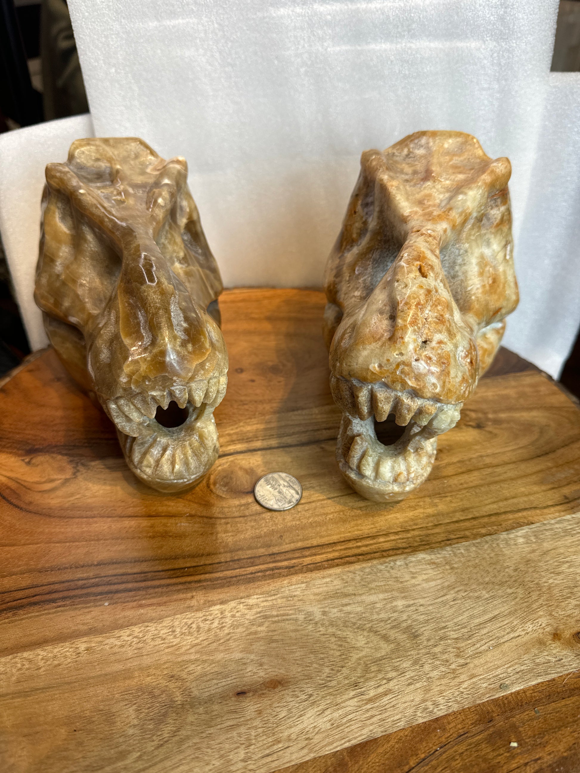 Each Chocolate Agate Dinosaur Skull is unique in color and pattern due to natural gemstone variations, ensuring every piece is truly one of a kind.