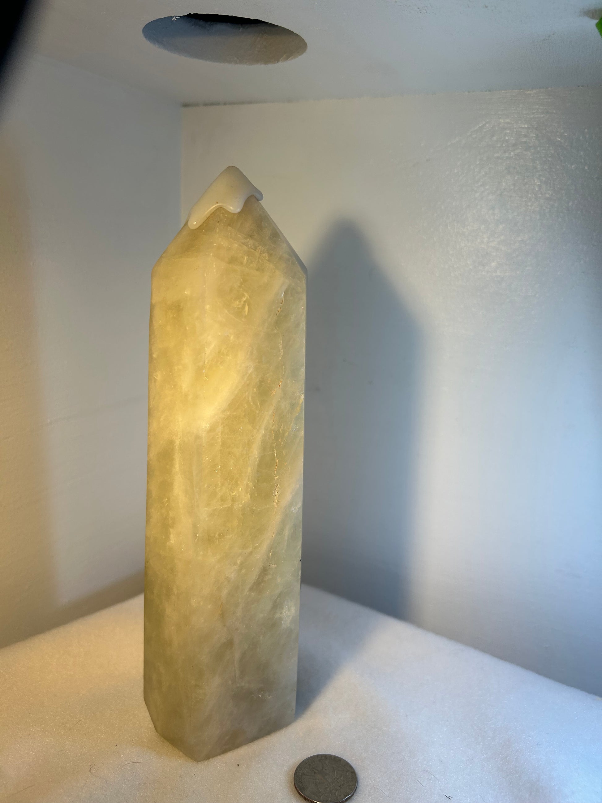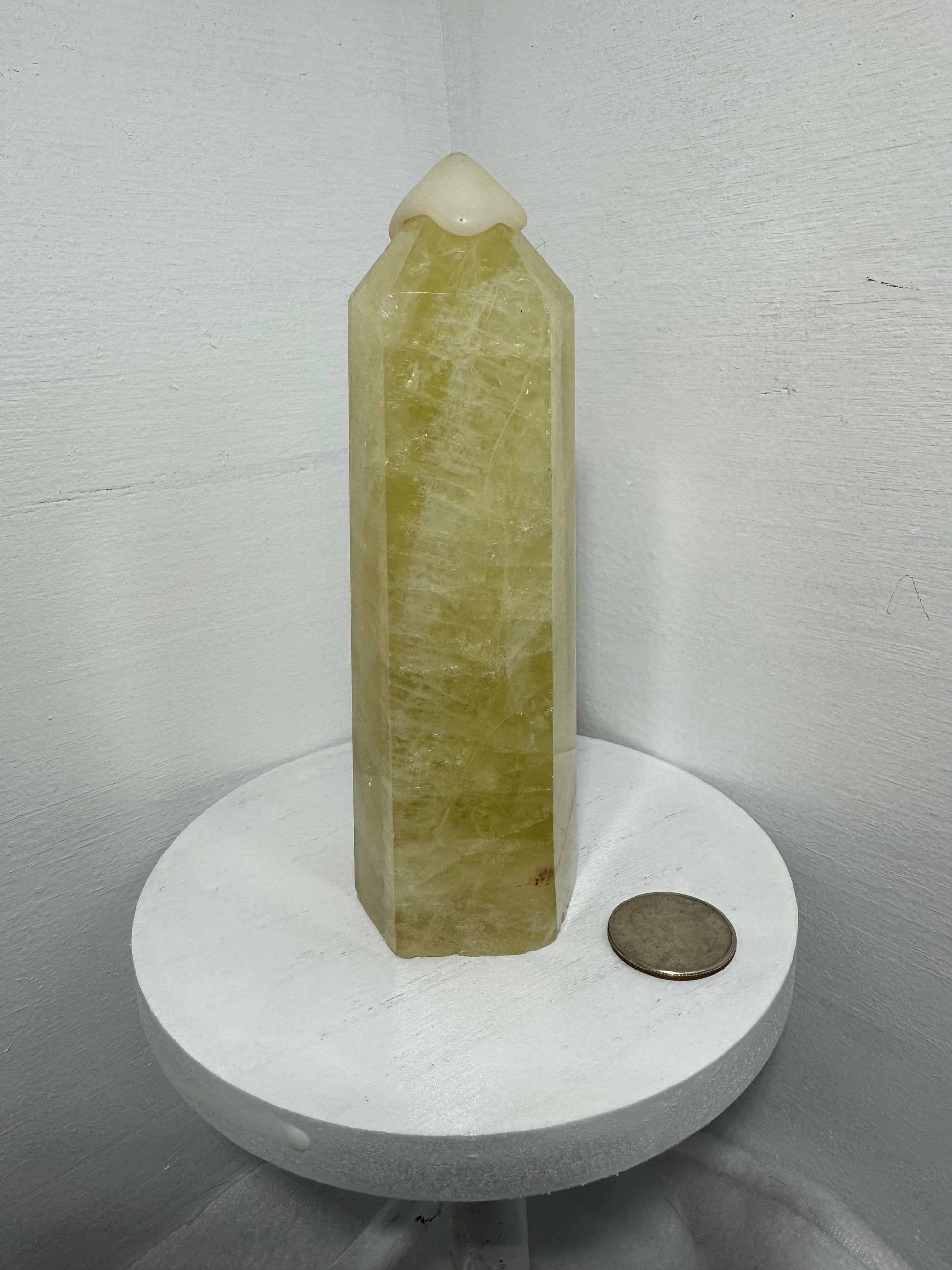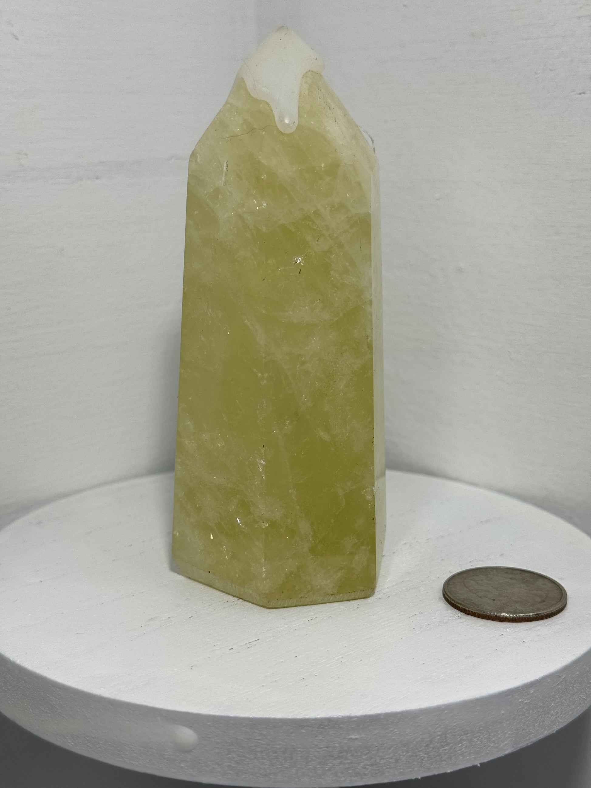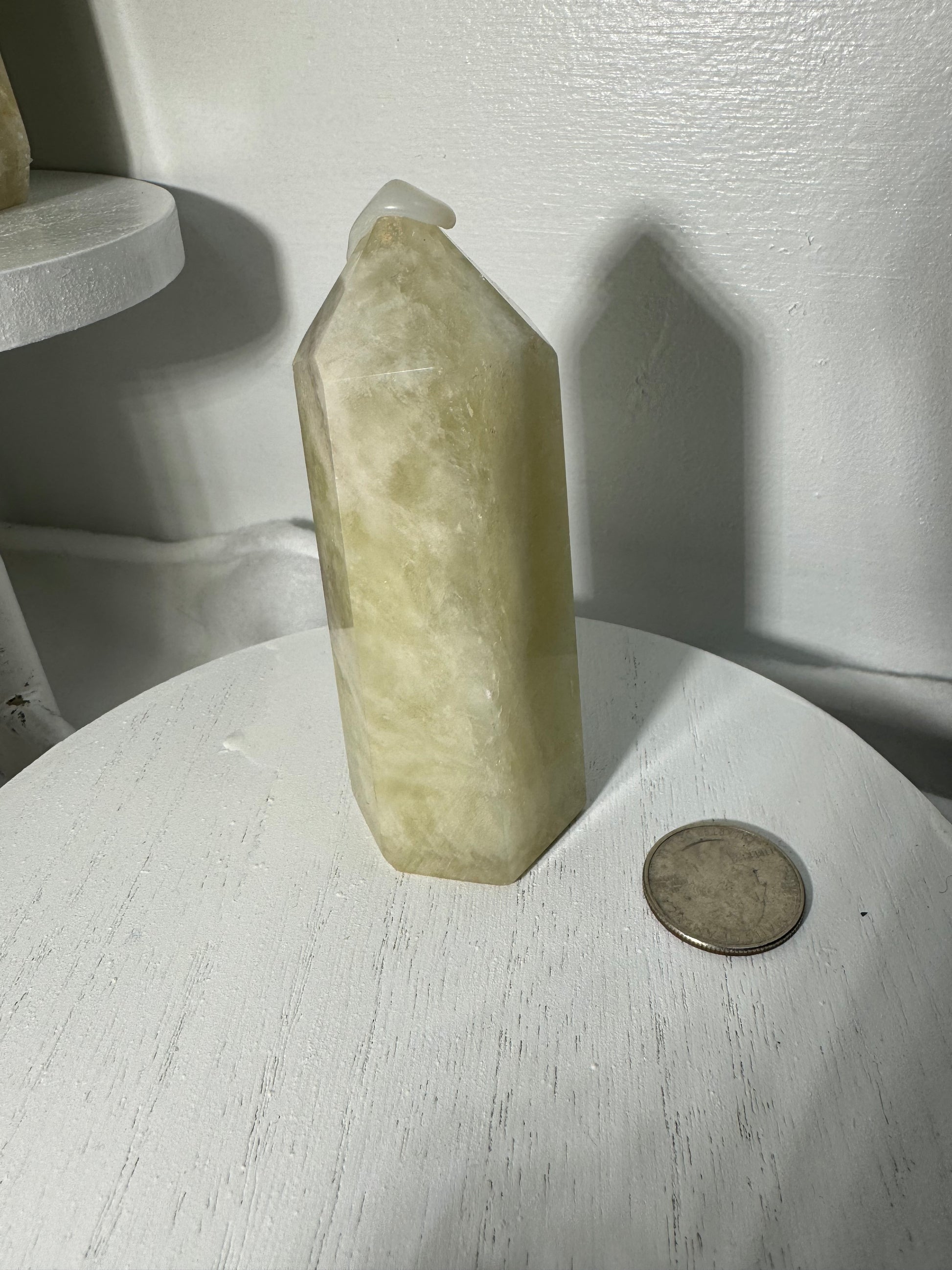 Elevate your energy and manifest abundance with our radiant Citrine tower. Each tower is expertly crafted from genuine Citrine, showcasing its vibrant golden hues and natural clarity.