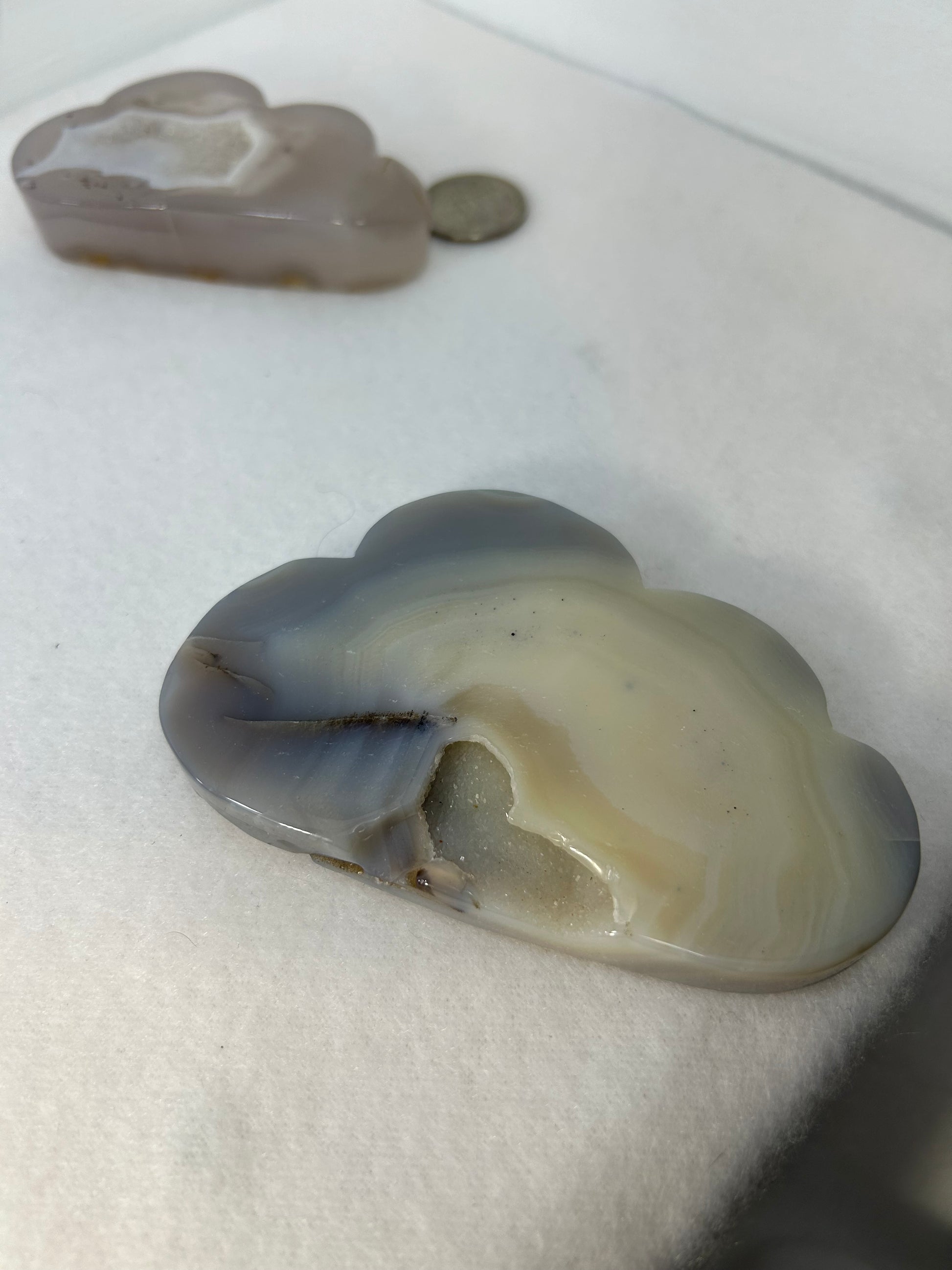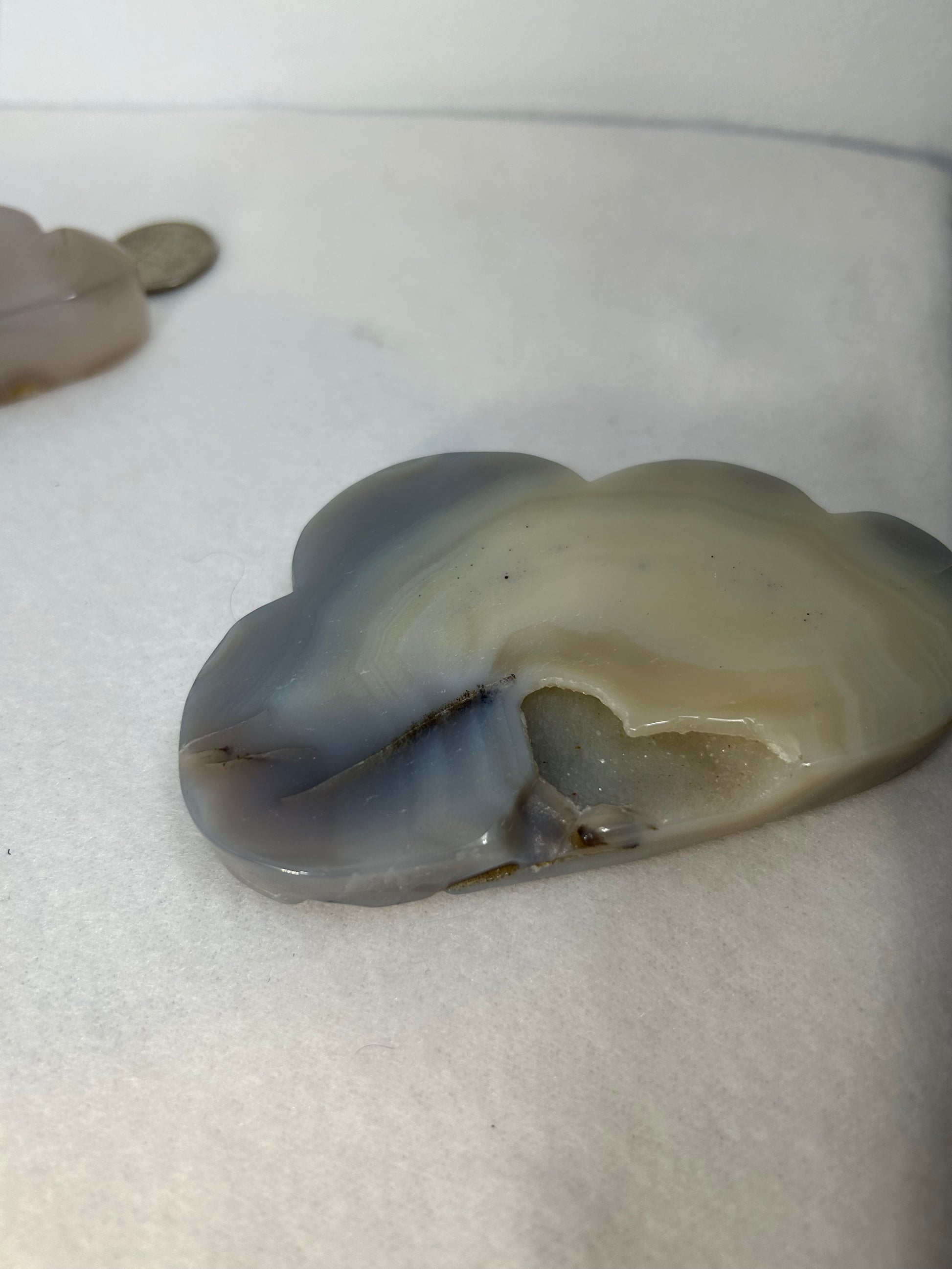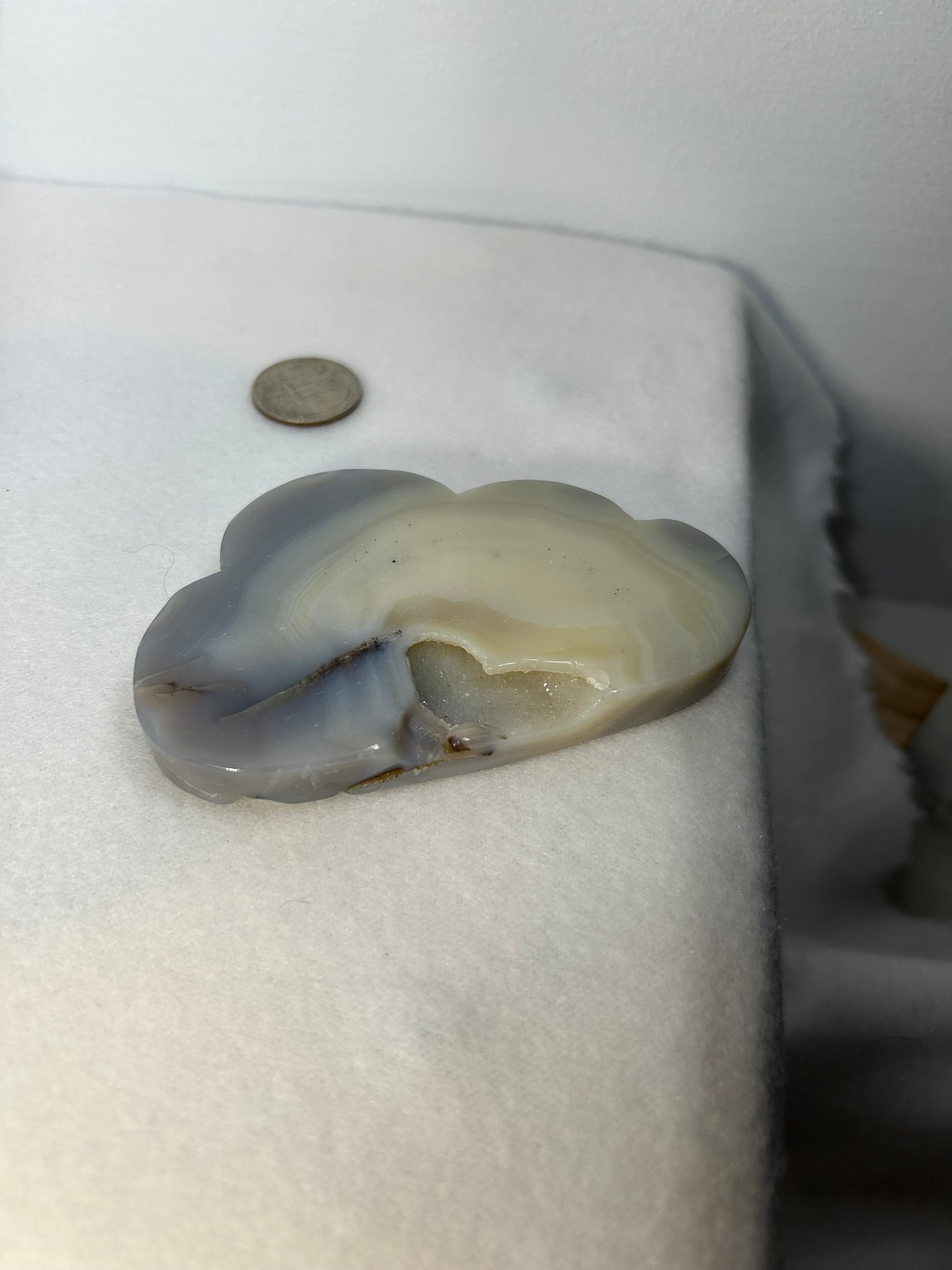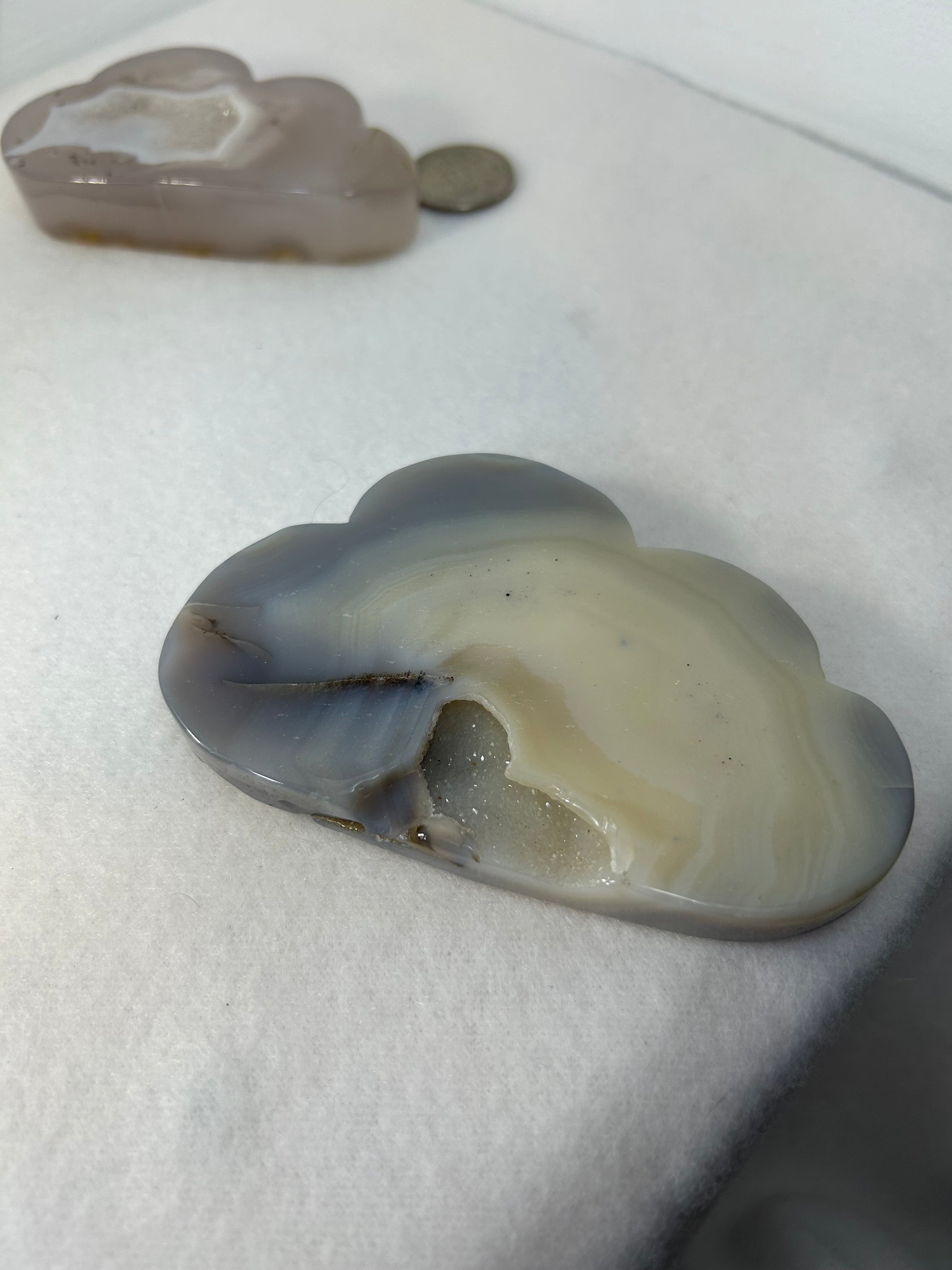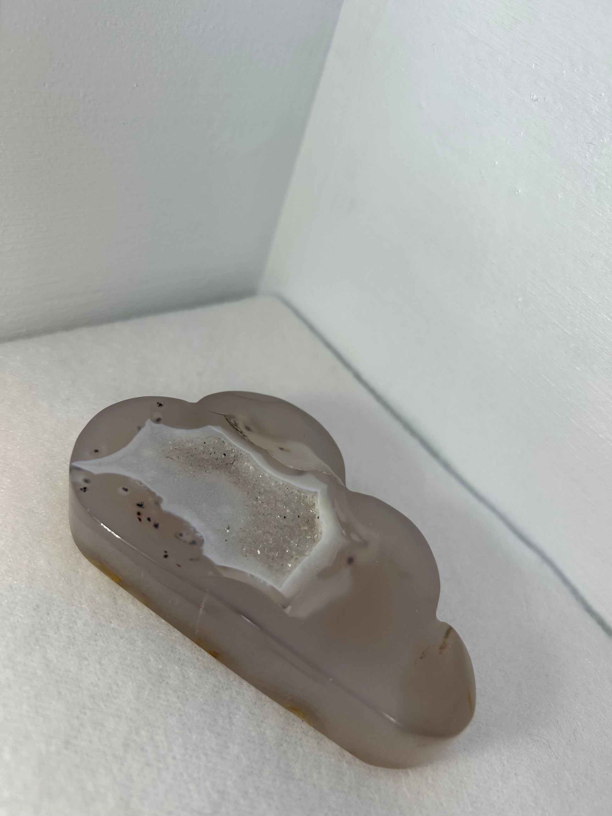 Whether displayed in your home as a symbol of tranquility and harmony, used in meditation and mindfulness practices to enhance focus and clarity, or gifted to a loved one as a token of peace and serenity, our Banded Agate Cloud Carving brings a touch of natural beauty and spiritual serenity to any space.