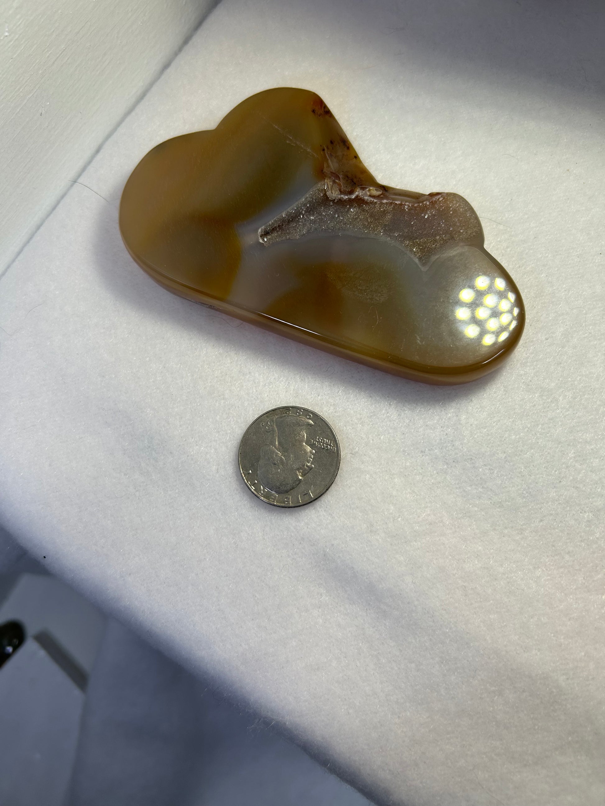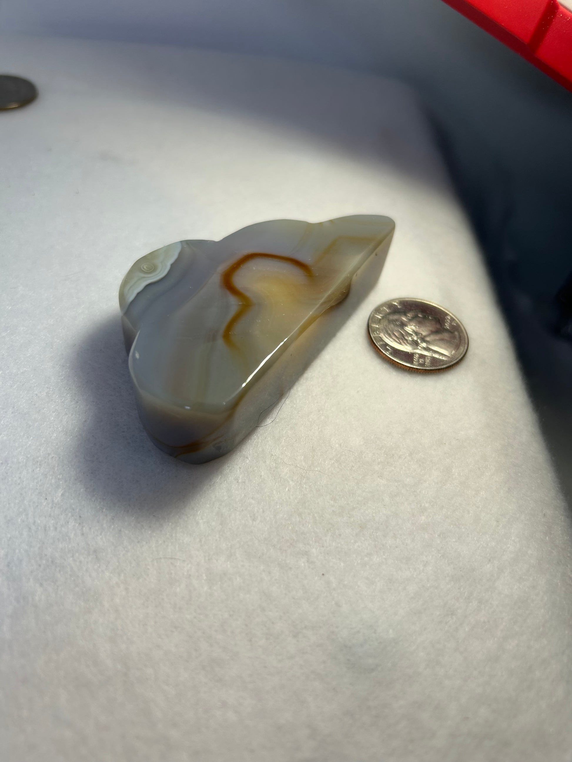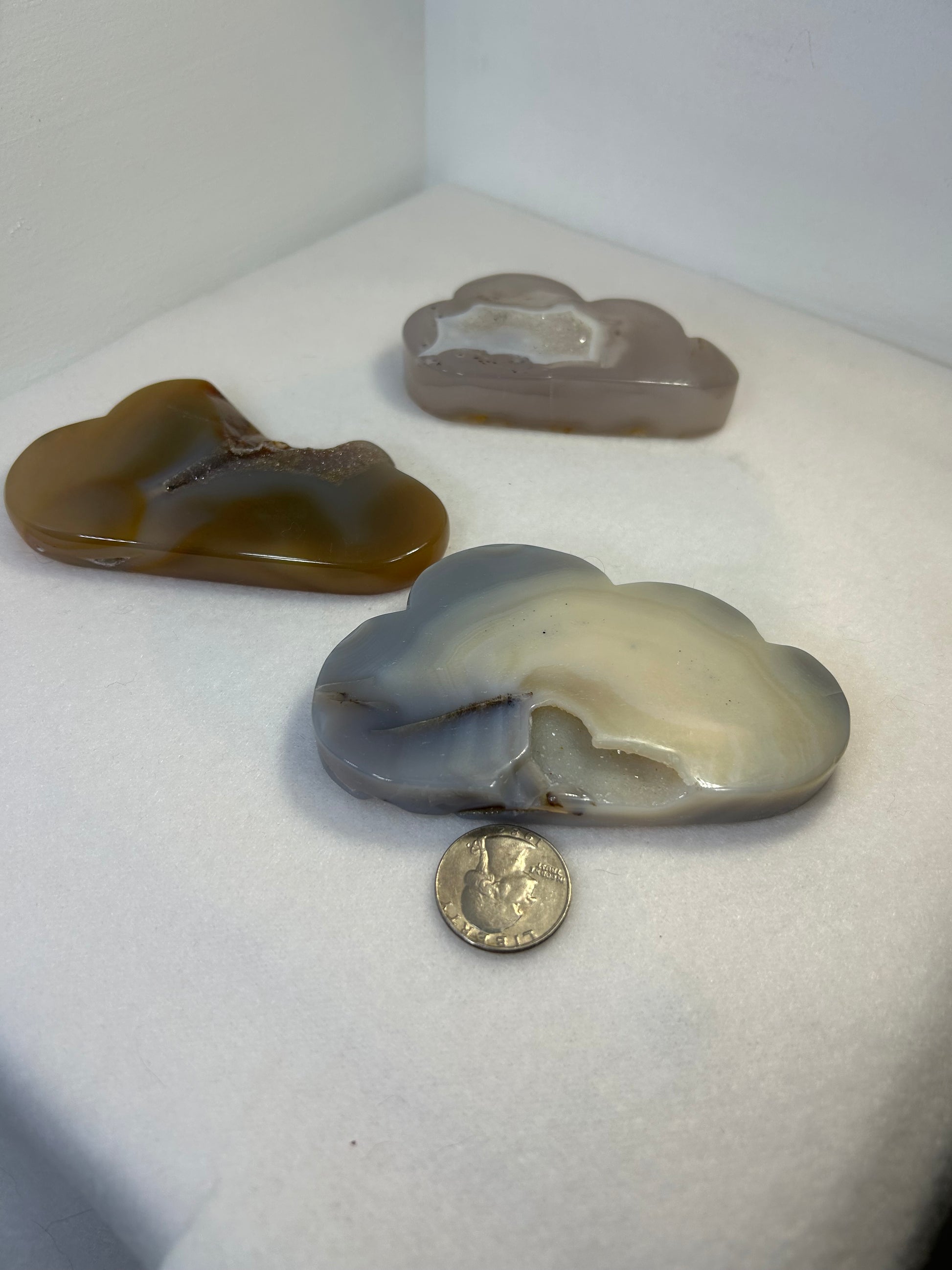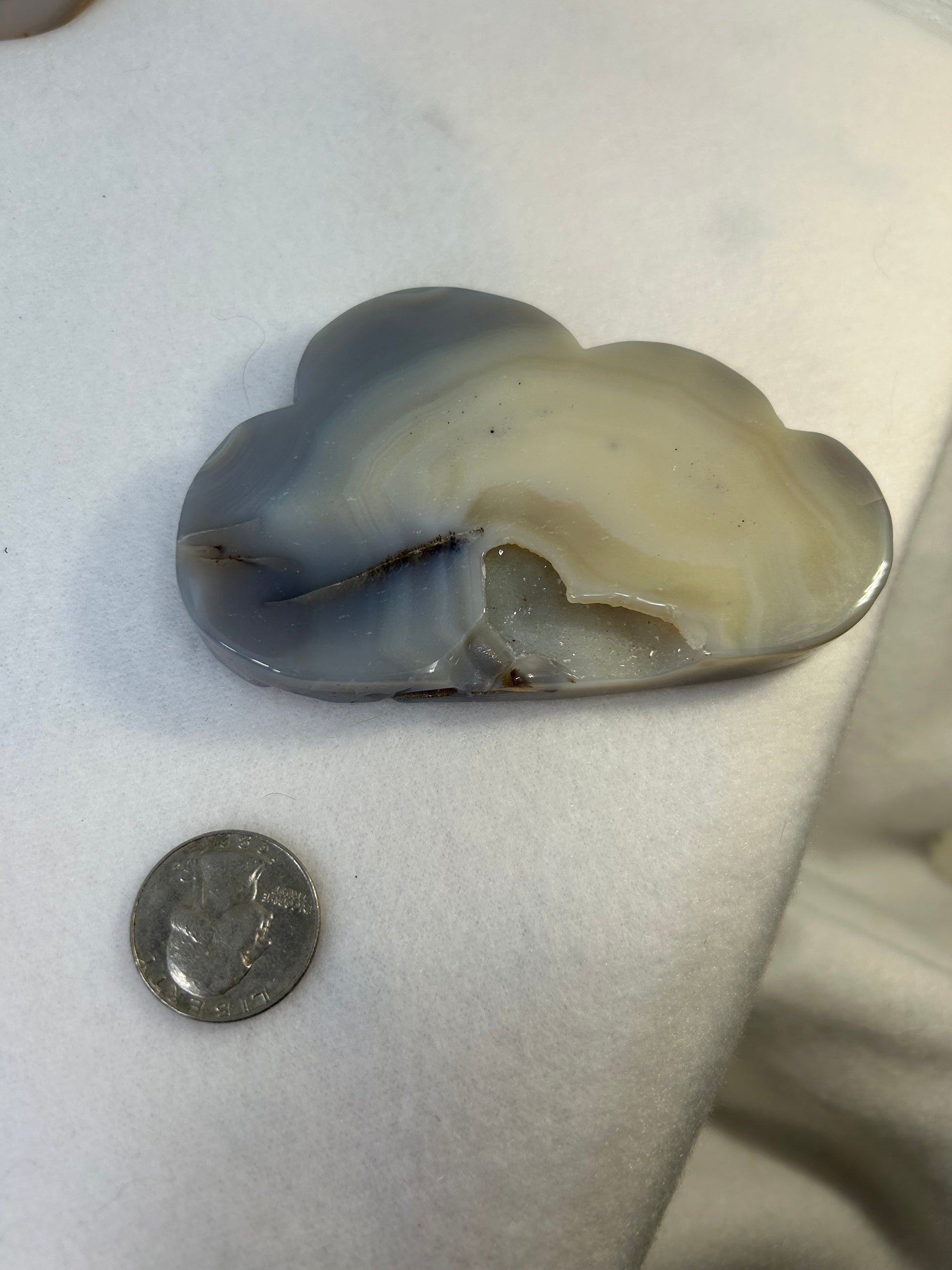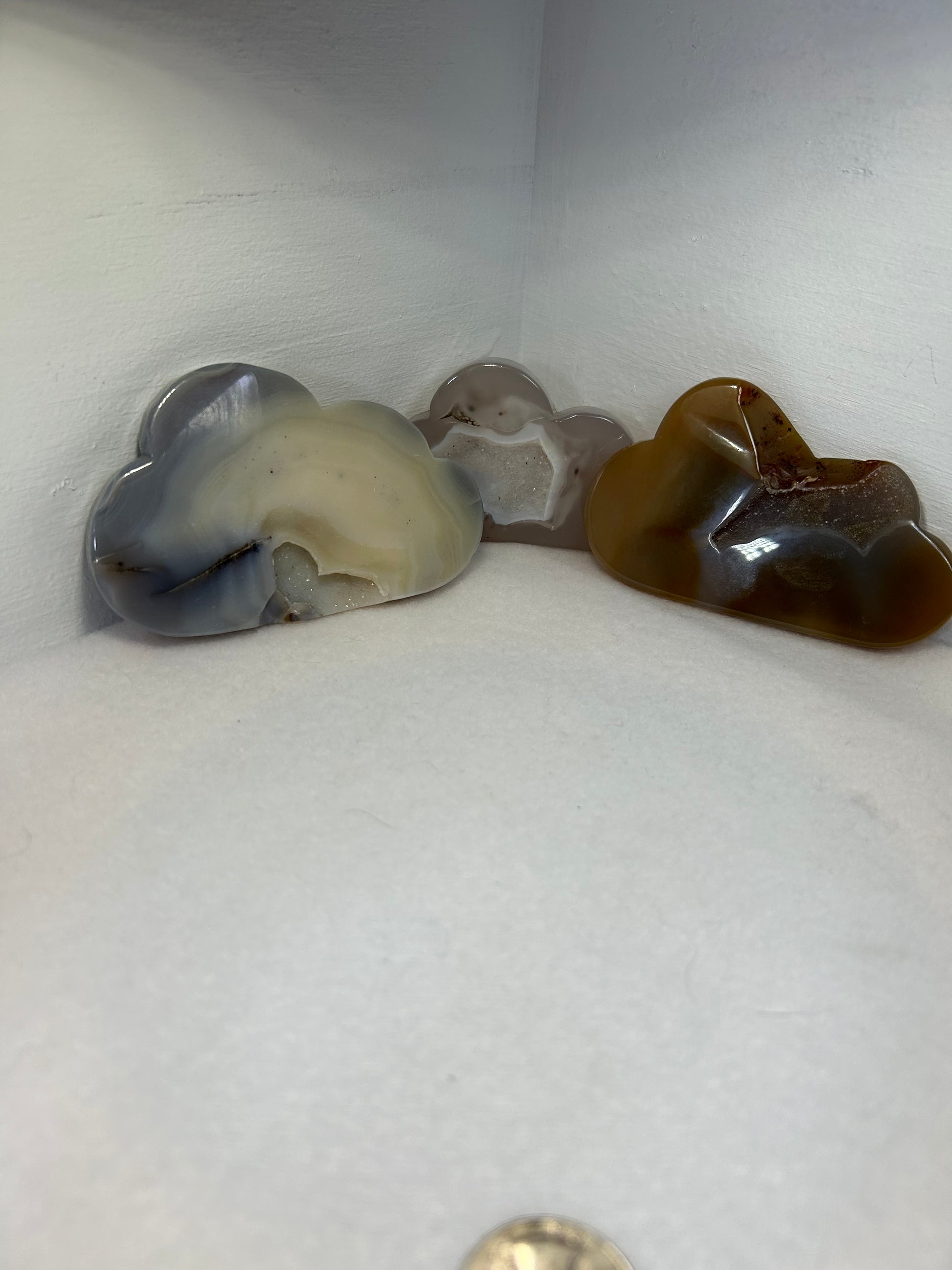 Whether displayed in your home as a symbol of tranquility and harmony, used in meditation and mindfulness practices to enhance focus and clarity, or gifted to a loved one as a token of peace and serenity, our Banded Agate Cloud Carving brings a touch of natural beauty and spiritual serenity to any space.