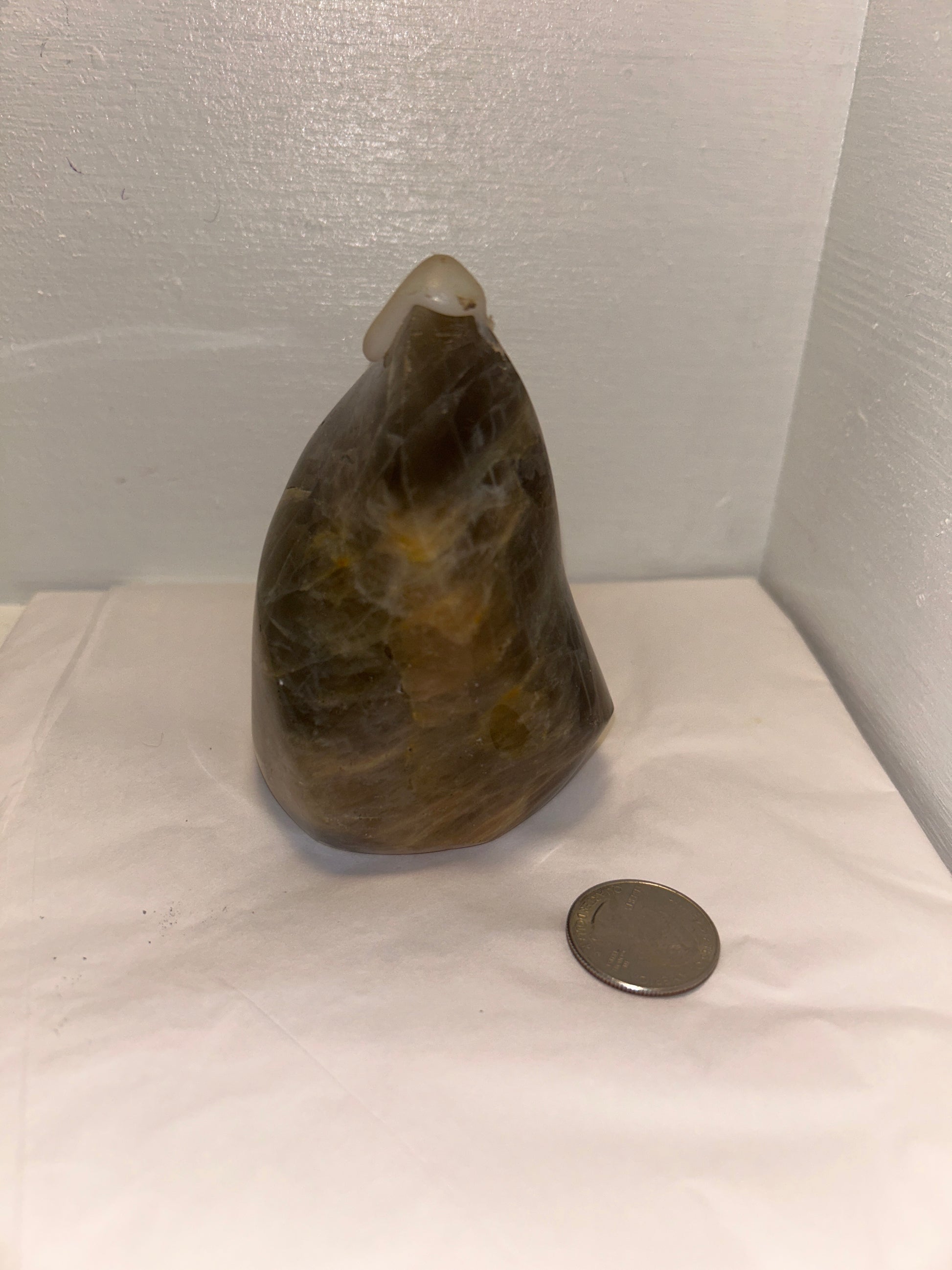 Whether displayed on your altar, in your sacred space, or as a decorative accent in your home, our Peach Moonstone Flame serves as a potent symbol of divine feminine energy, emotional healing, and intuition. Let its nurturing energy infuse your space with love and compassion.