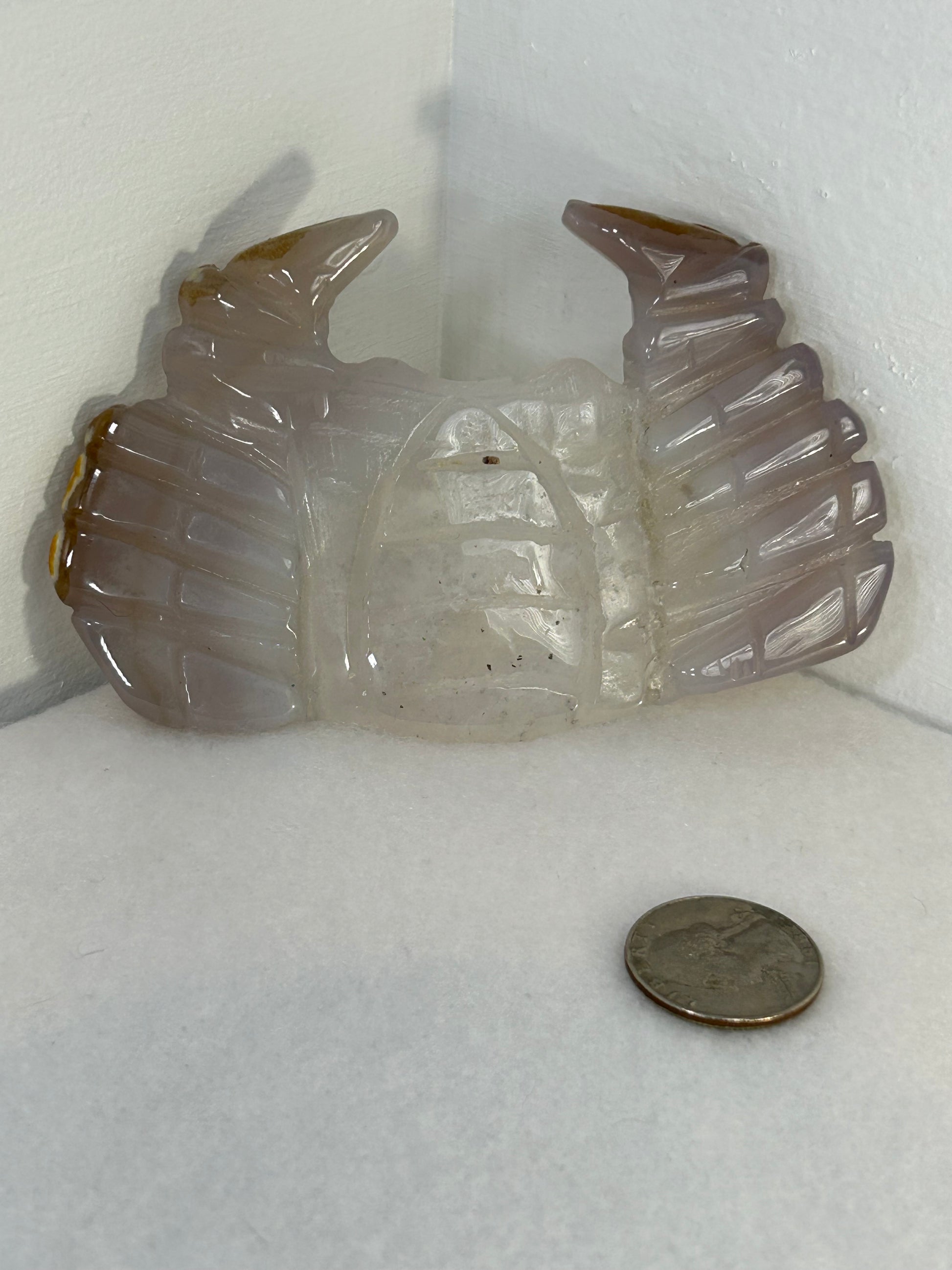 Please note that due to the natural variations in crystals, each Chalcedony Crab Carving may vary slightly in color, texture, and appearance. The images provided are for reference purposes only, and the carving you receive may differ from the ones depicted.