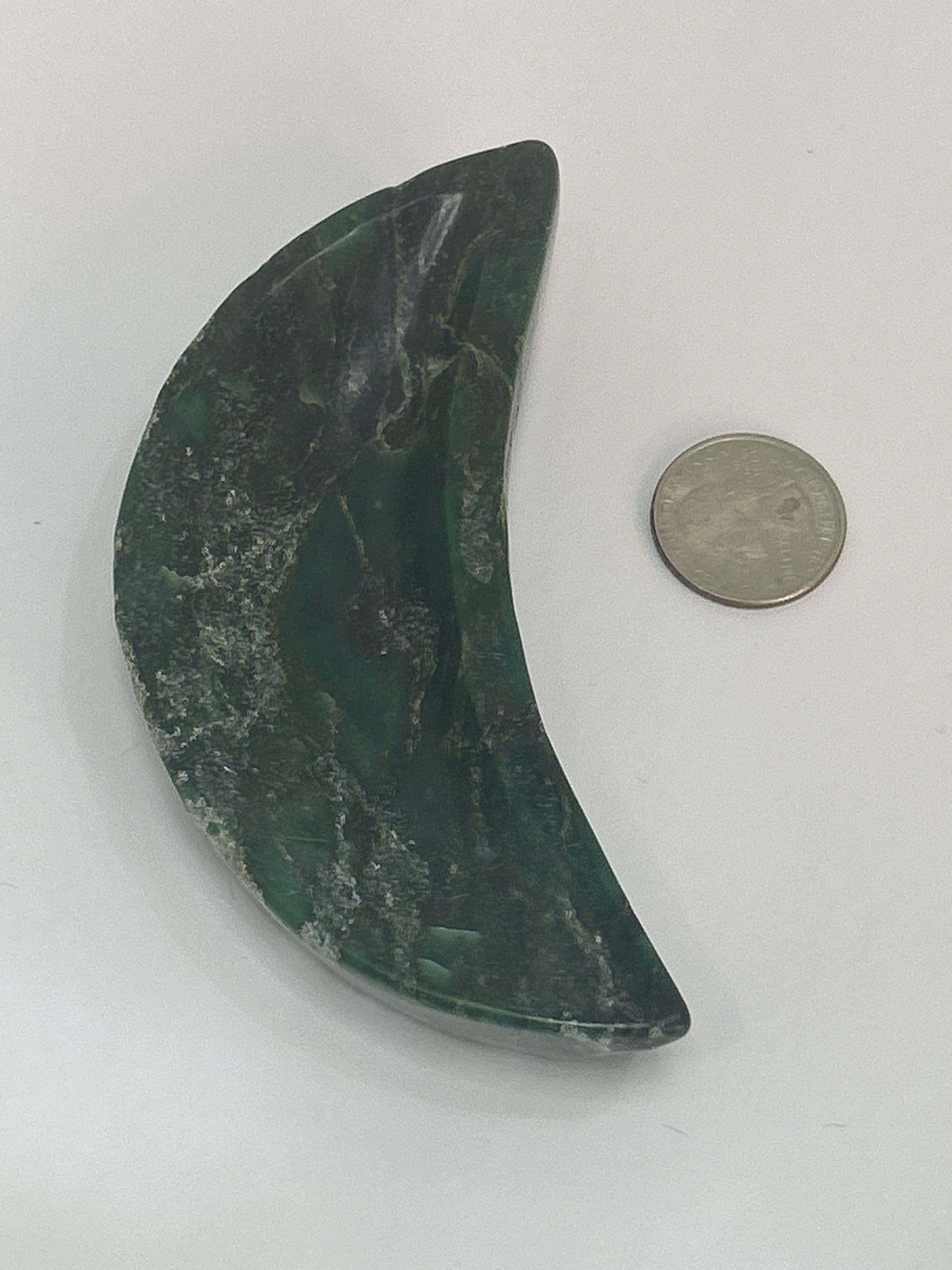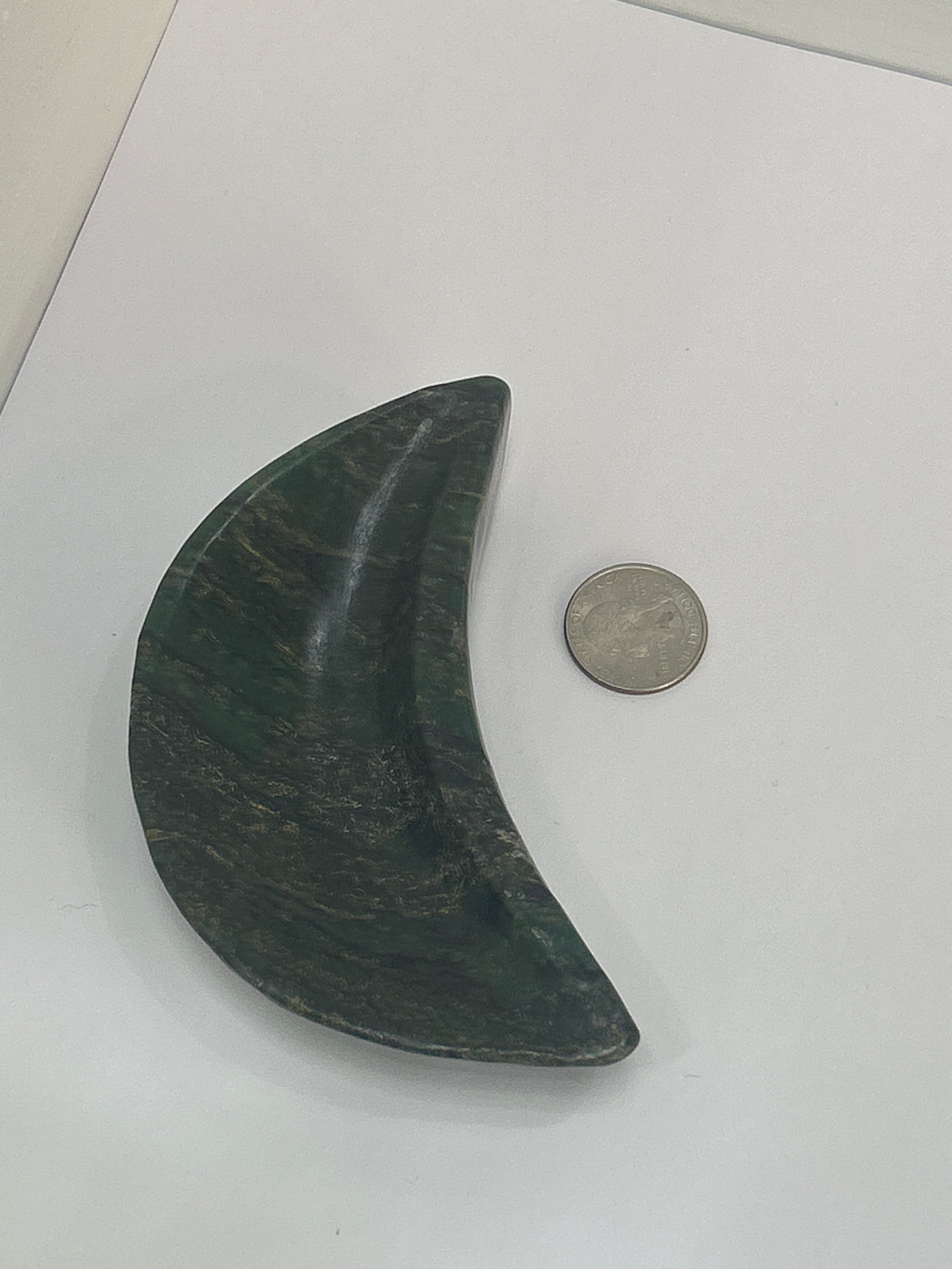 Infuse your space with the lush, nurturing energy of our Emerald Moon Bowl. Carved in the shape of a crescent moon, this exquisite bowl symbolizes abundance, love, and the intuitive power of the moon. Emerald, with its vibrant green hues, radiates harmony and growth, making this bowl both a stunning piece and a meaningful energy tool.