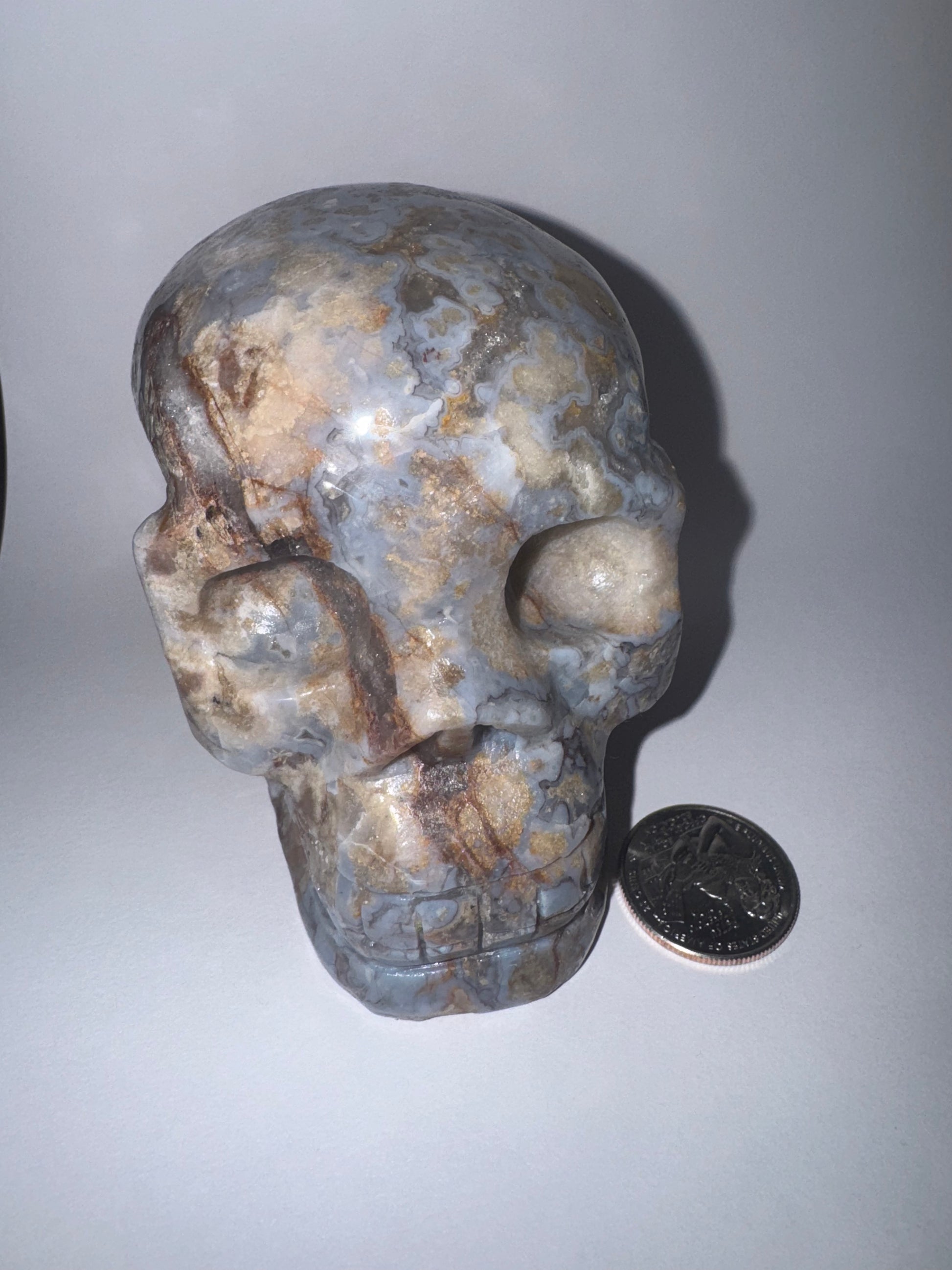 Whether displayed on your altar, in your sacred space, or as a decorative accent in your home, our Flower Agate Skull serves as a potent symbol of growth, renewal, and inner beauty. Let its gentle energy infuse your space with tranquility and harmony.