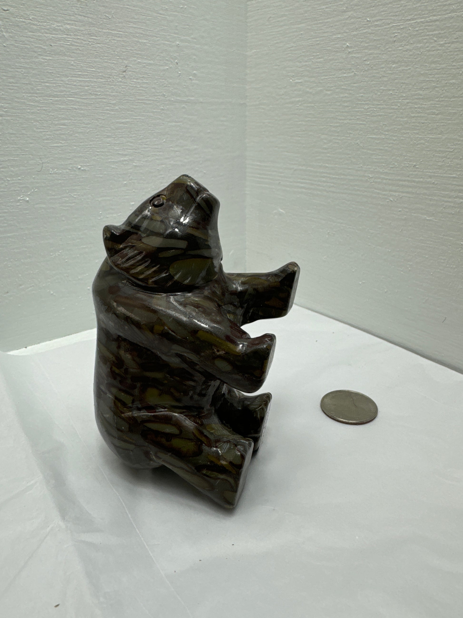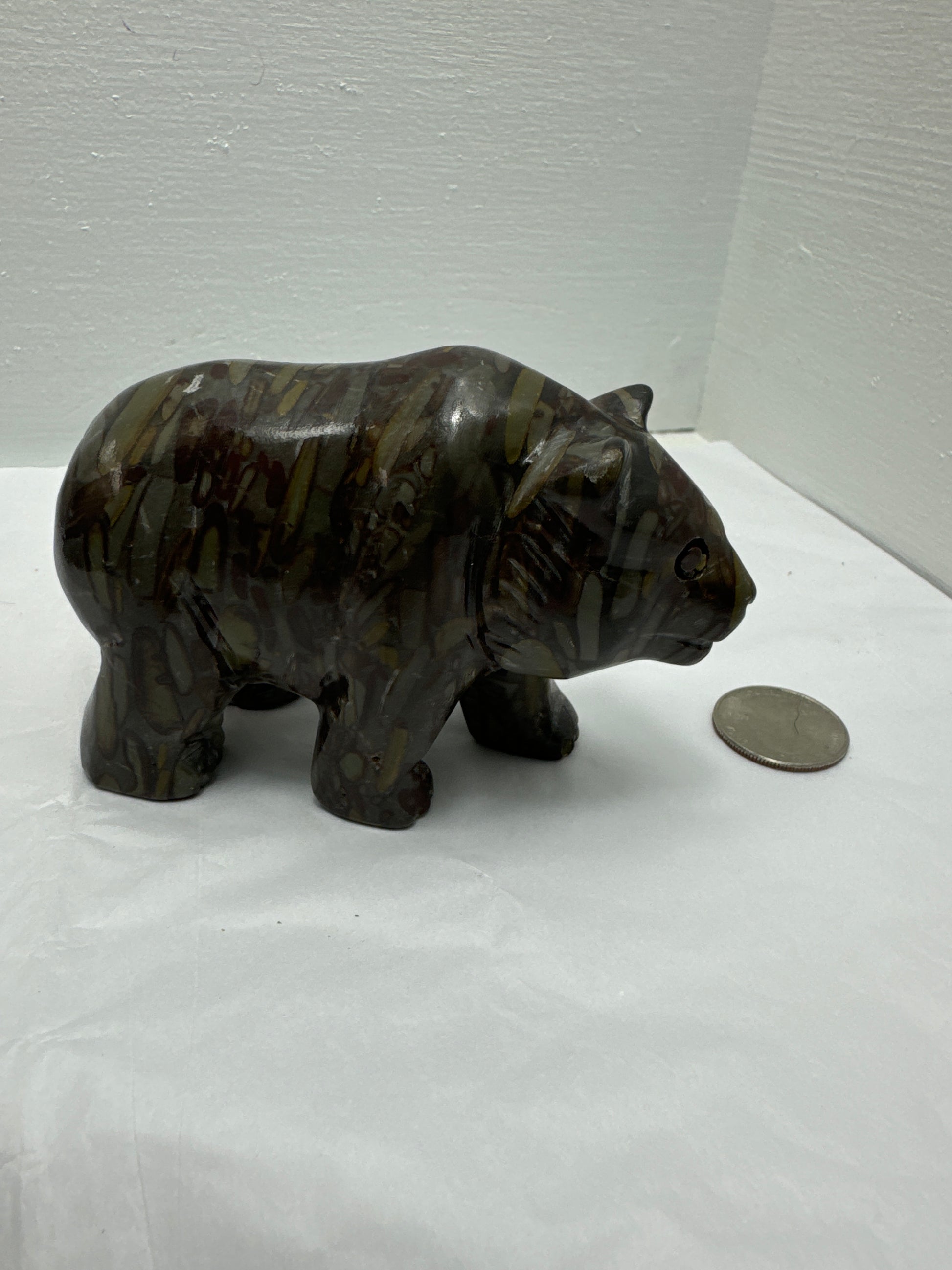 Discover the vibrant energy of our Fruit Jasper Bear, a beautifully carved symbol of strength, resilience, and nurturing energy. The unique Fruit Jasper stone, known for its rich blend of colors, carries the energy of vitality, joy, and emotional balance, making this bear carving a perfect talisman for personal growth and healing.