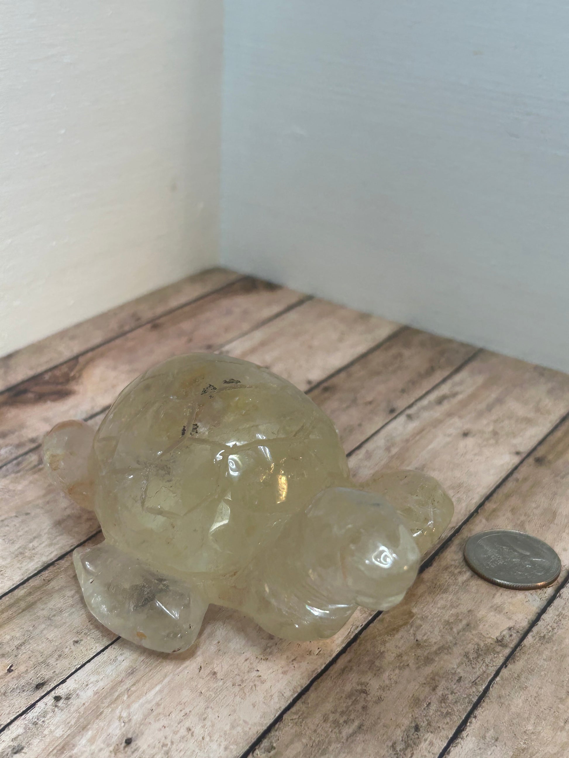 Each Golden Healer Turtle is hand-carved from high-quality Golden Healer Quartz, featuring warm golden tones with subtle natural inclusions that radiate positivity and light. The smooth, polished finish highlights the intricate carving details, capturing the gentle essence of the turtle.