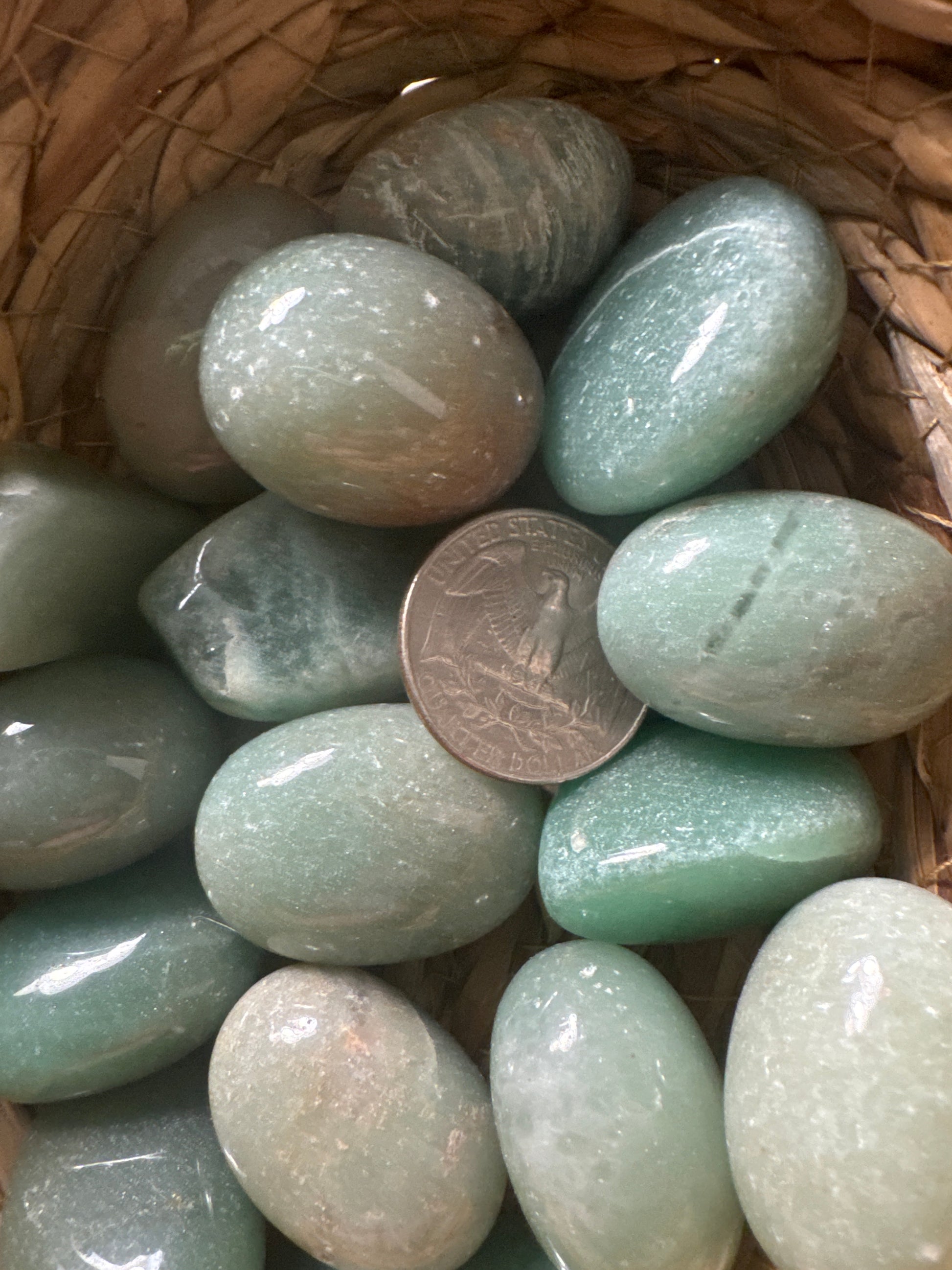 Each Green Aventurine Tumble features a soft, translucent green hue with natural shimmer and variations, reflecting its connection to nature and healing energy. Its polished surface enhances the stone's calming, peaceful appearance, making it both visually stunning and energetically rejuvenating.