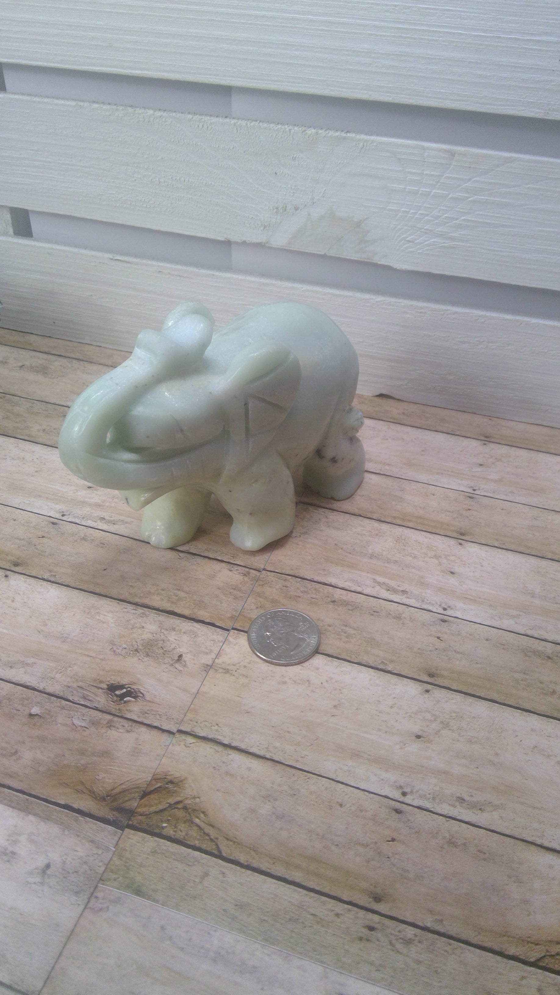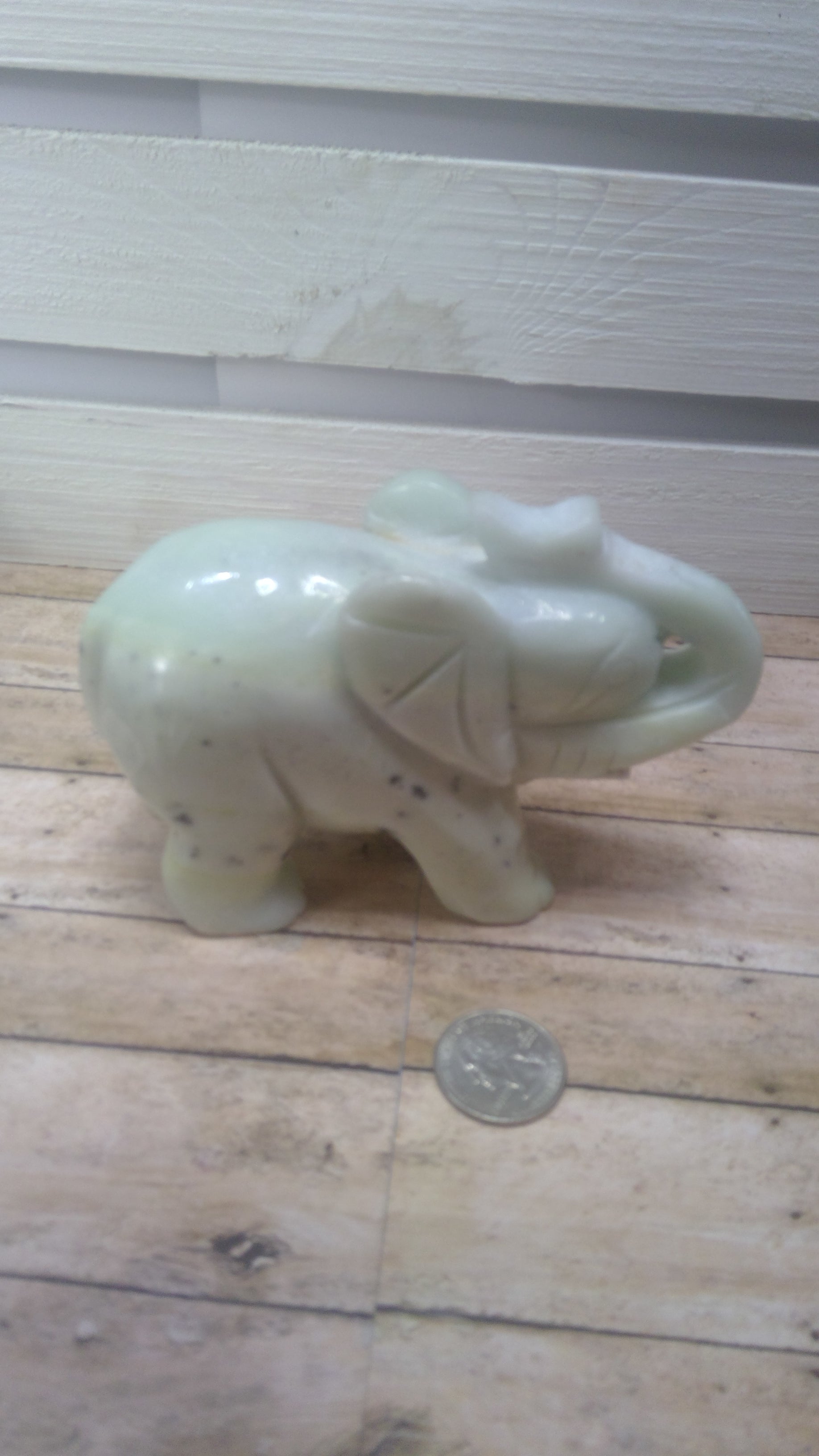 GREEN JADE WITH KIWI BANDING ELEPHANT- Harmony, Prosperity, Strength