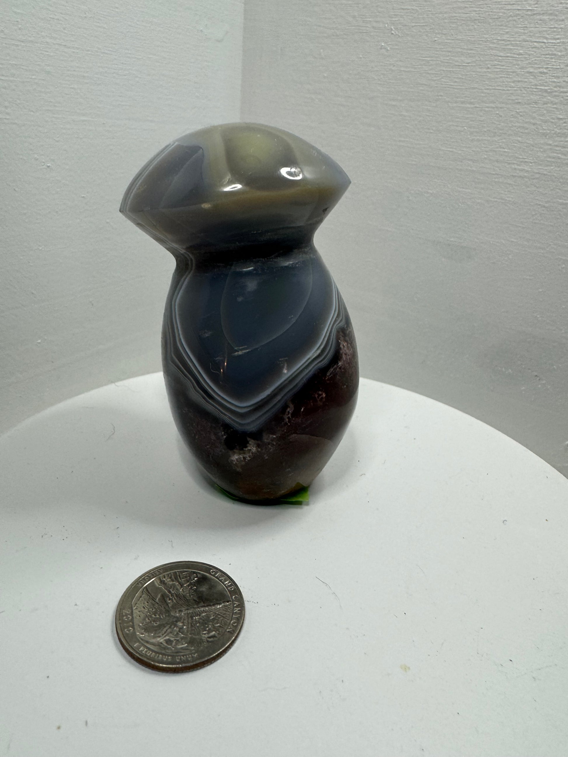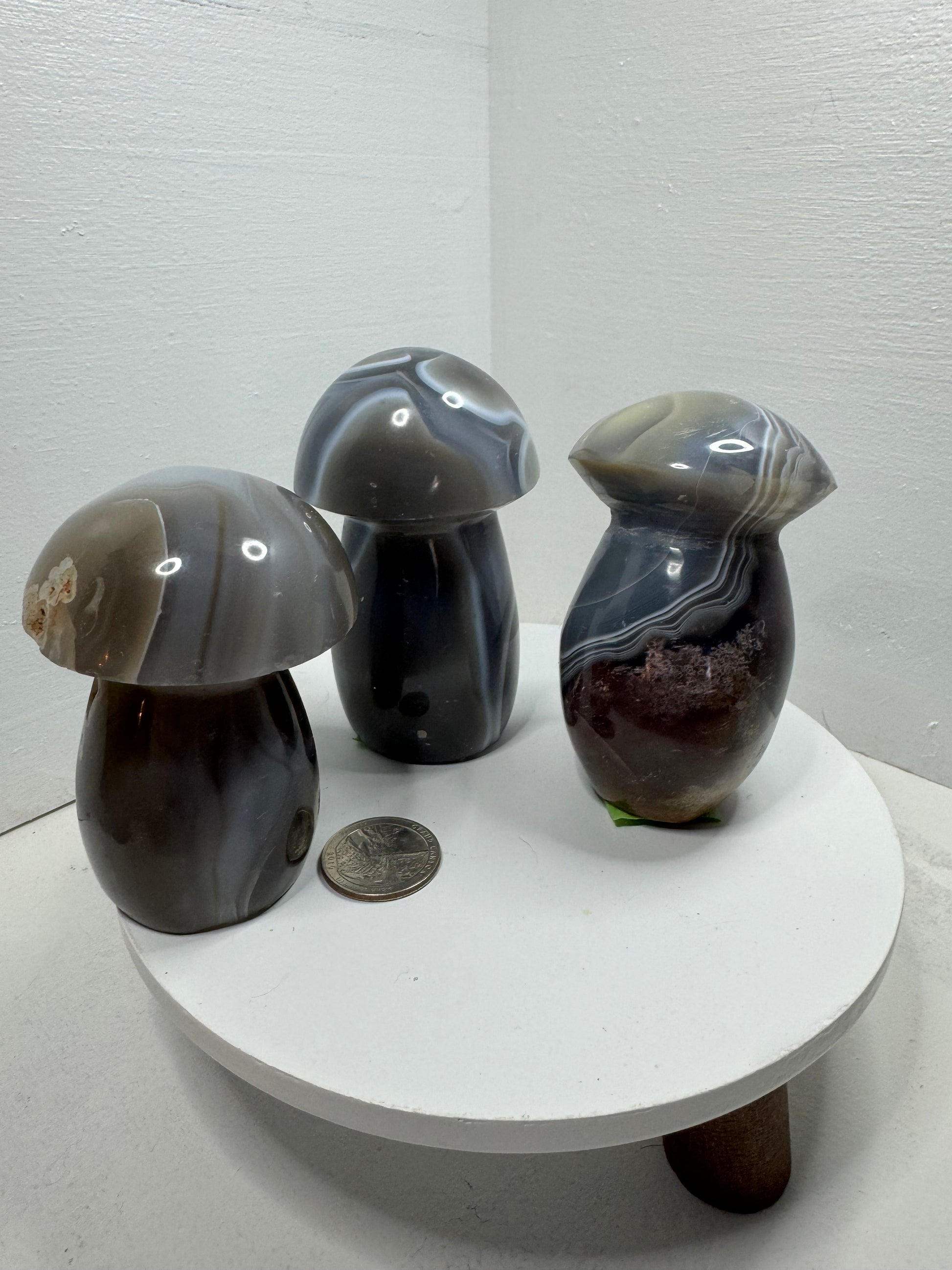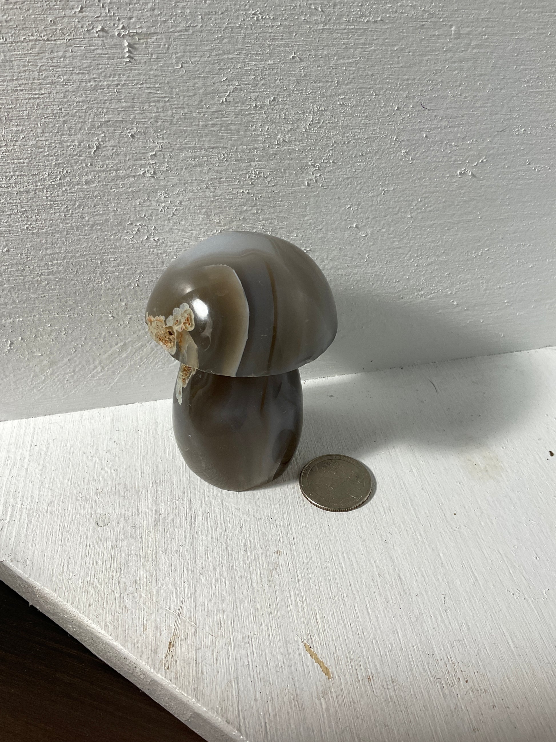 Whether displayed on your altar, in your home, or at your workplace, our Grey Banded Agate Mushrooms serve as a beautiful reminder of the stability and protection that surrounds you. Let their presence infuse your space with tranquility and balance.