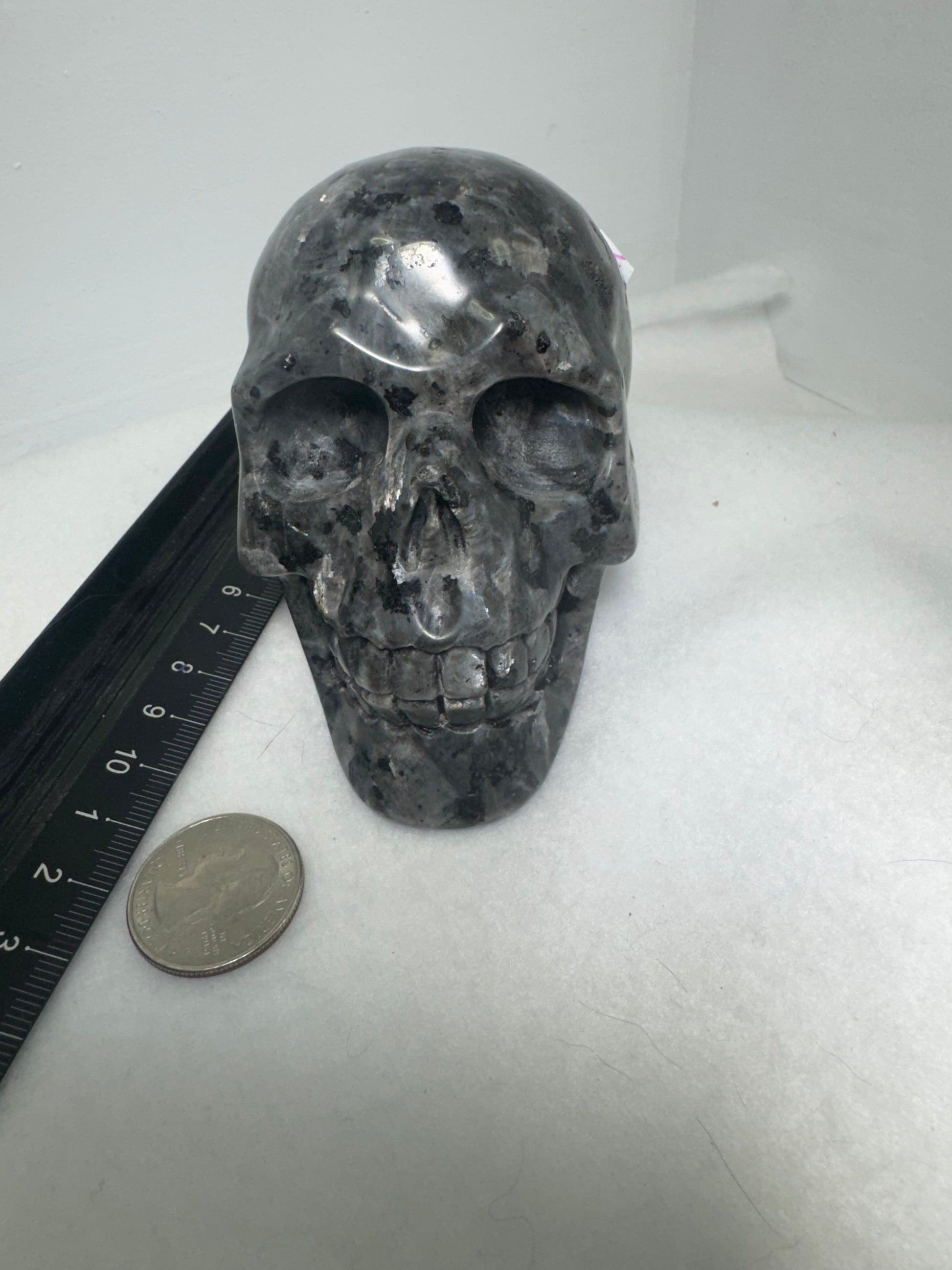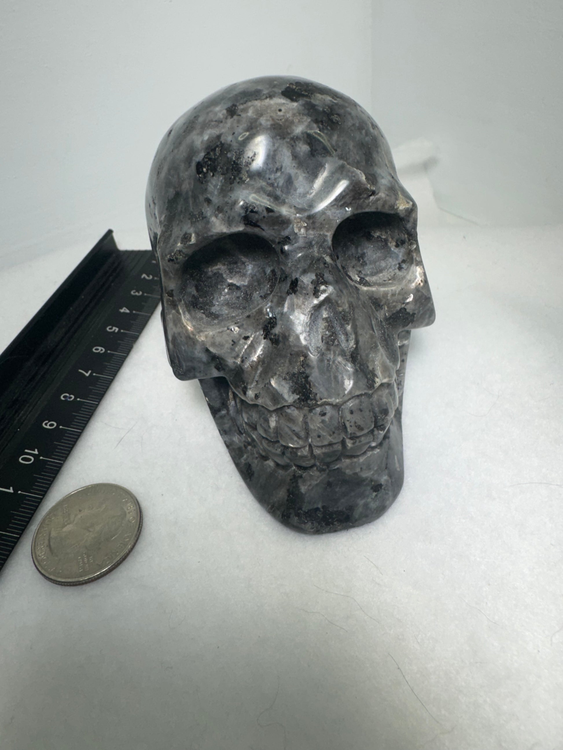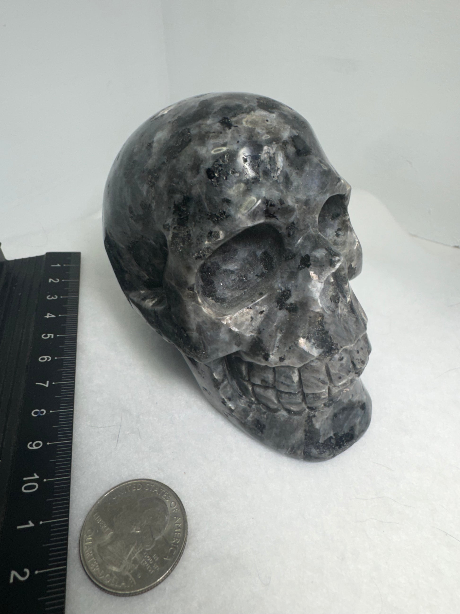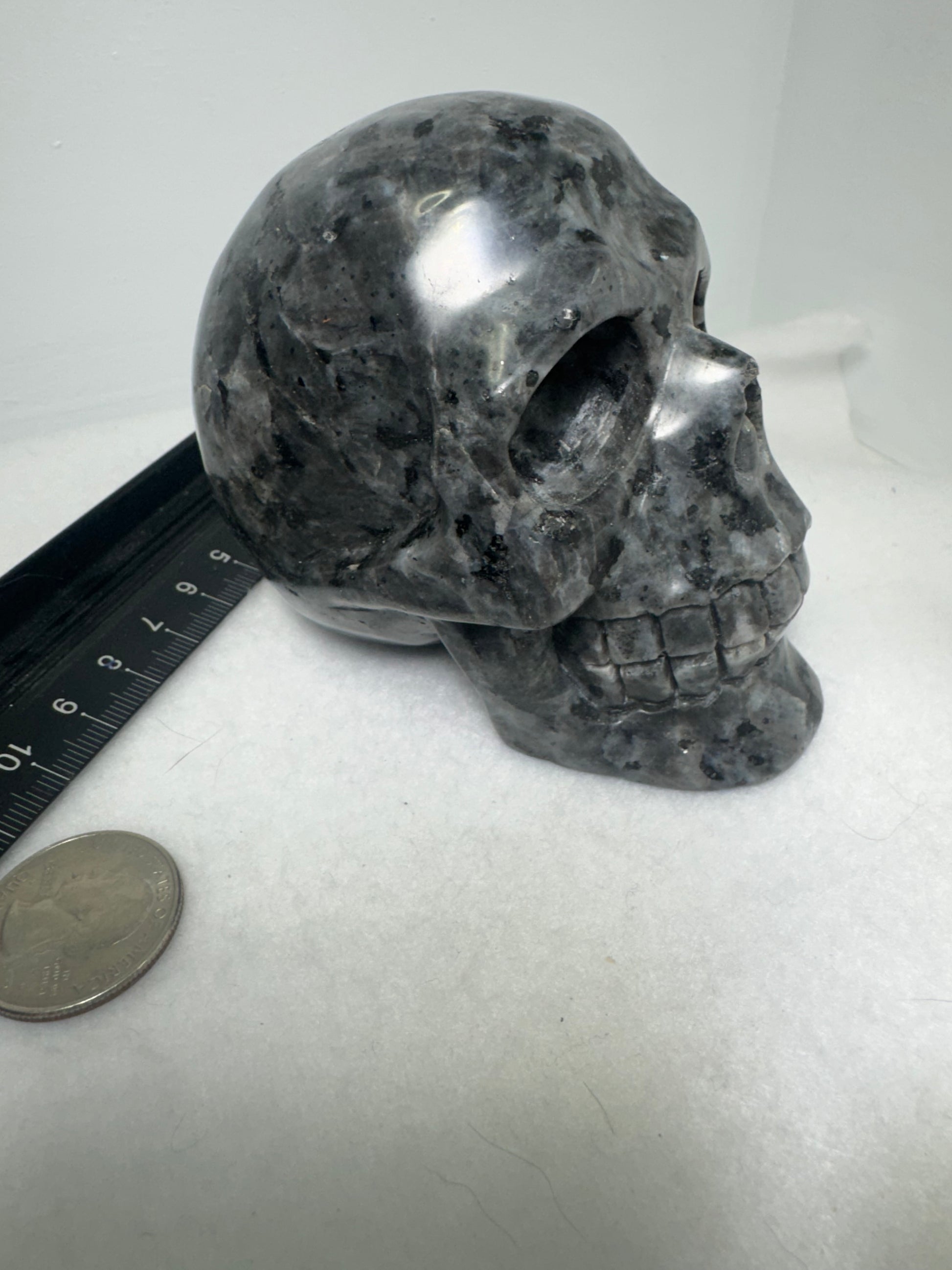 π Please note: Due to the natural variations in larvikite, each Skull may exhibit differences in color, flash, and veining. While we strive to represent our products accurately in photos, please allow for slight discrepancies in appearance.