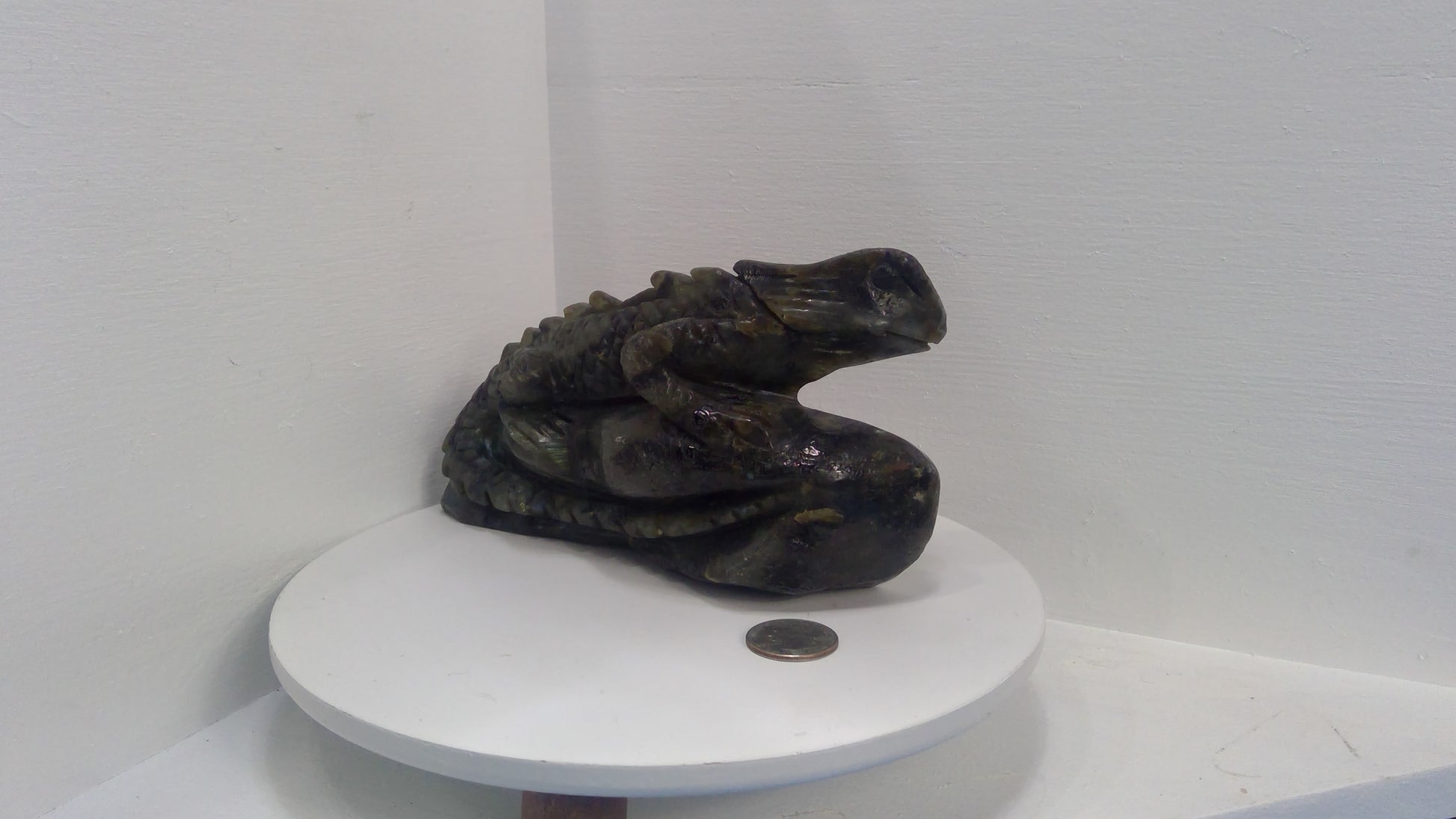 Each Labradorite Lizard carving is unique in its natural patterns and flashes of color due to gemstone variations, ensuring every piece is truly one of a kind.