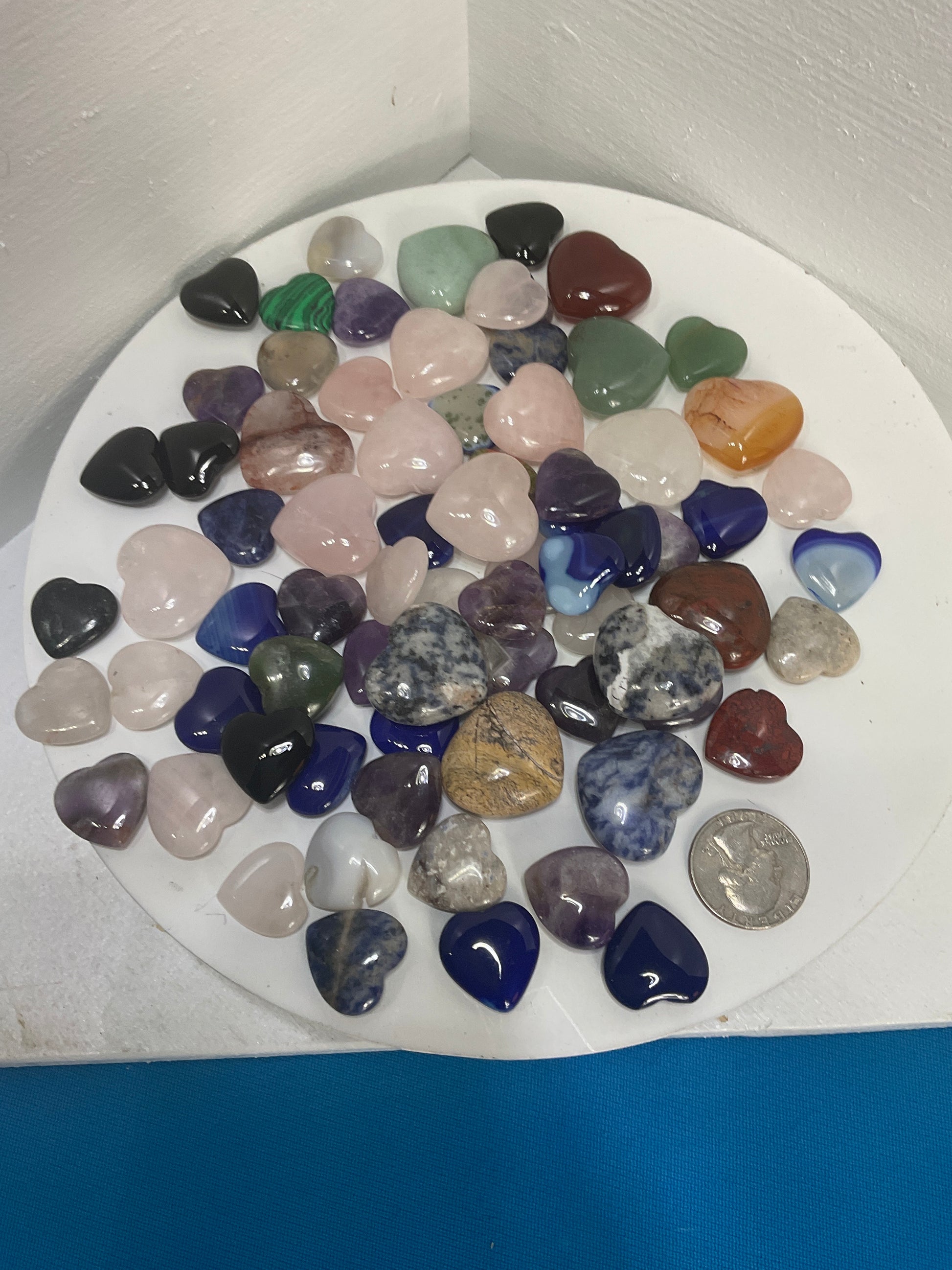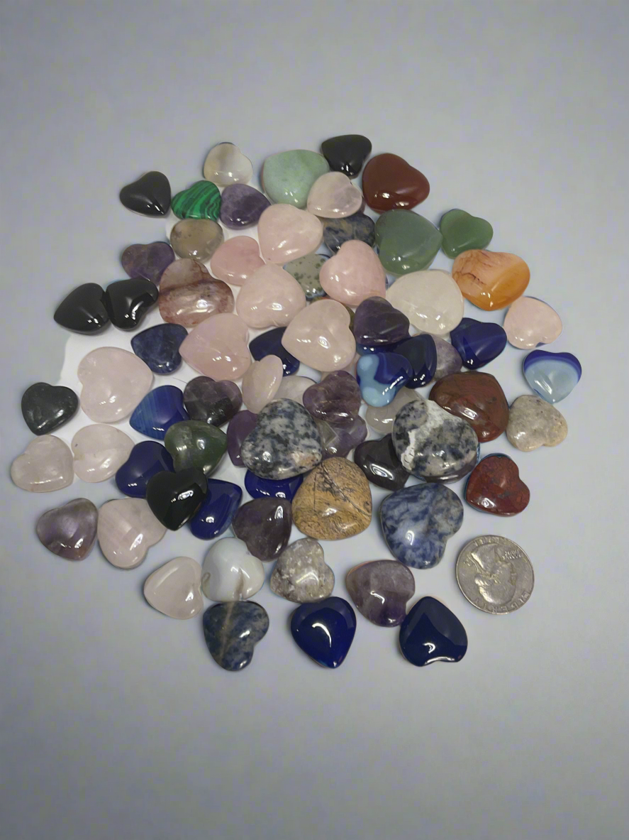 Each mini heart carving is unique in color and pattern due to the natural variations in stone, ensuring every piece is truly one of a kind.
