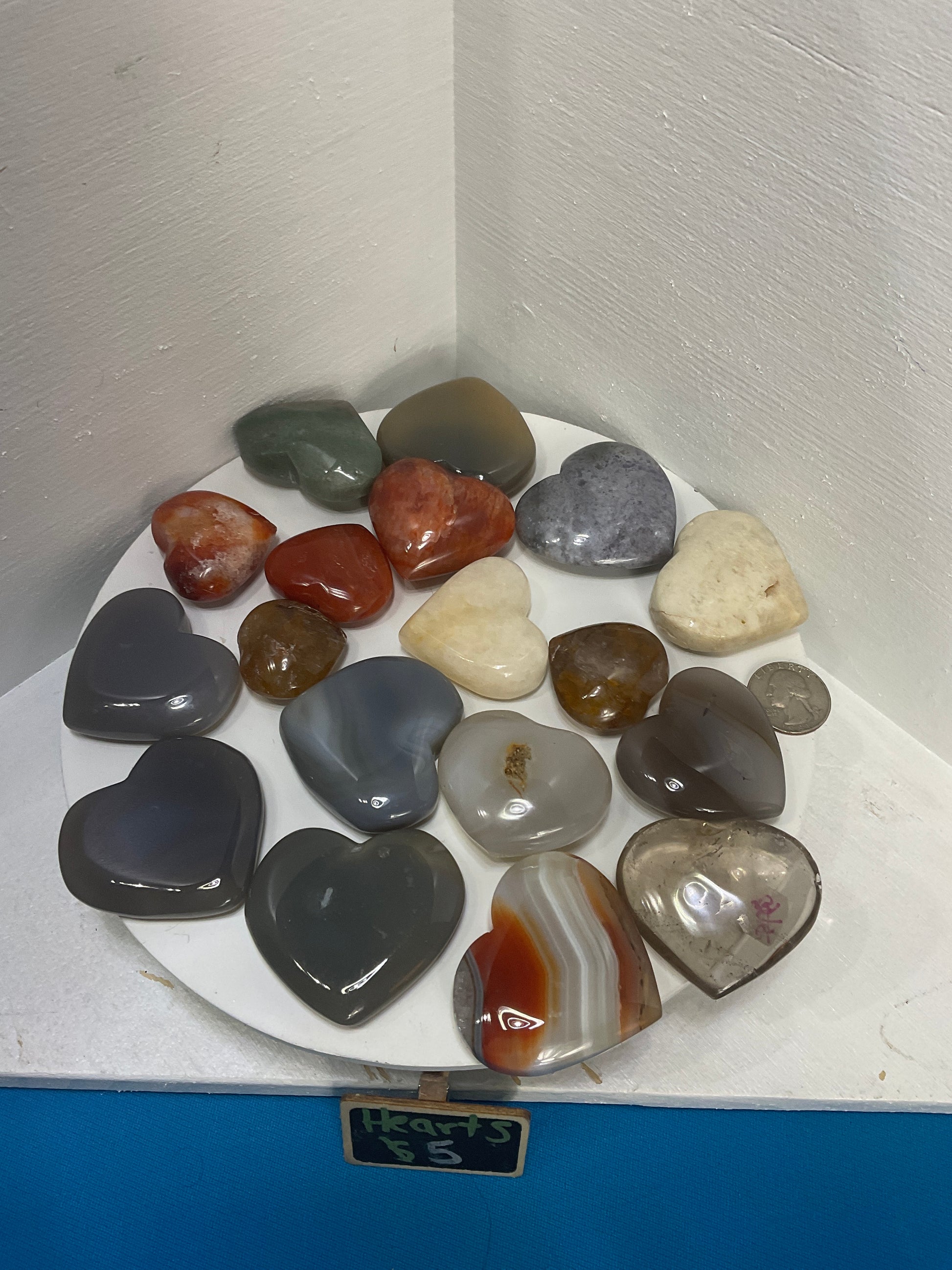 Each mini heart carving is unique in color and pattern due to the natural variations in stone, ensuring every piece is truly one of a kind.
