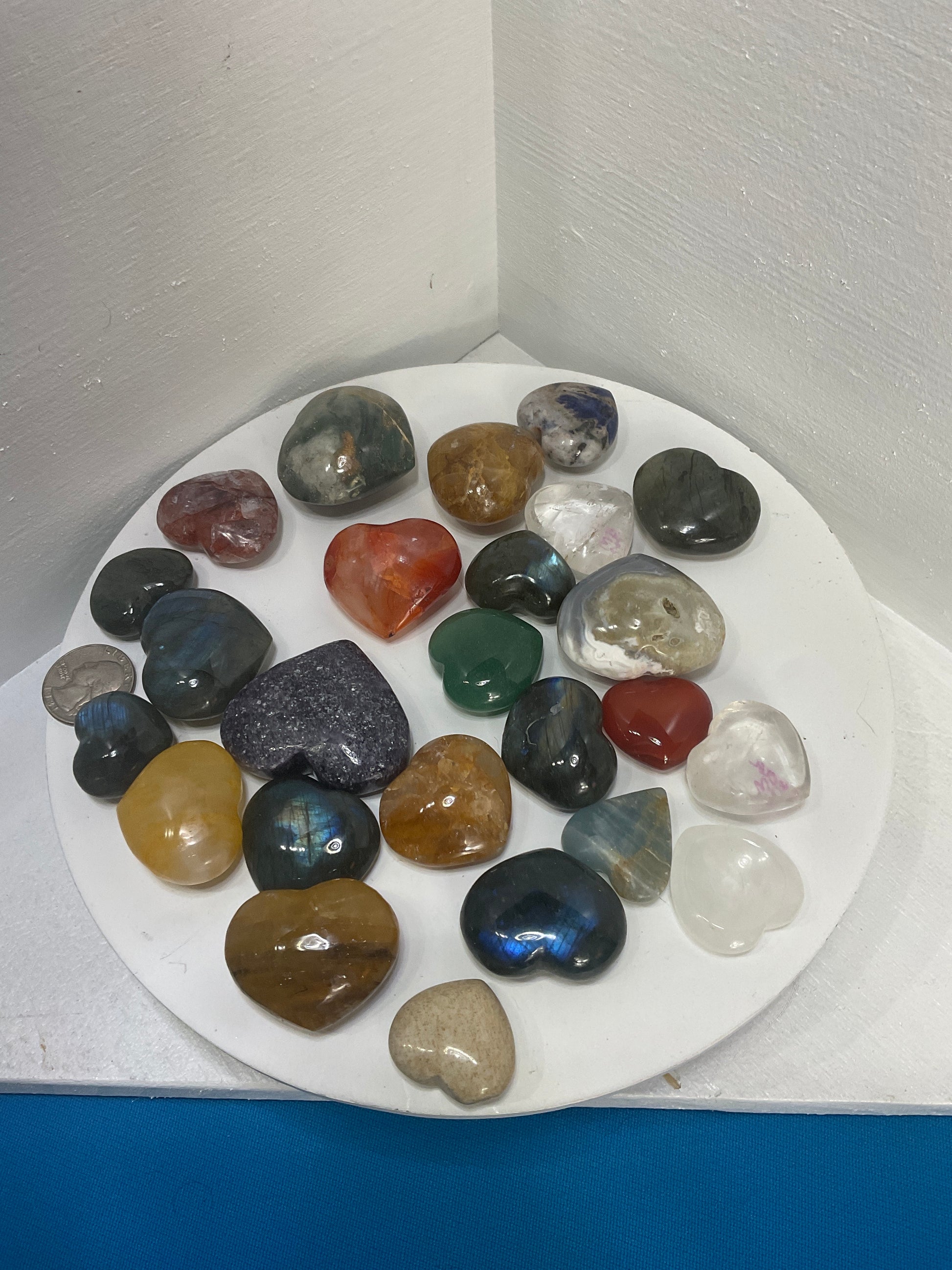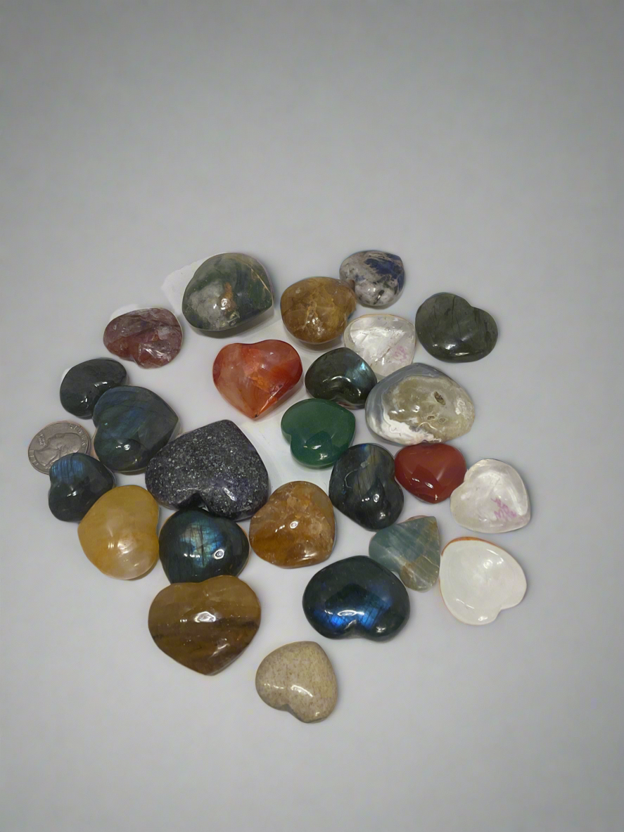 Each mini heart carving is unique in color and pattern due to the natural variations in stone, ensuring every piece is truly one of a kind.