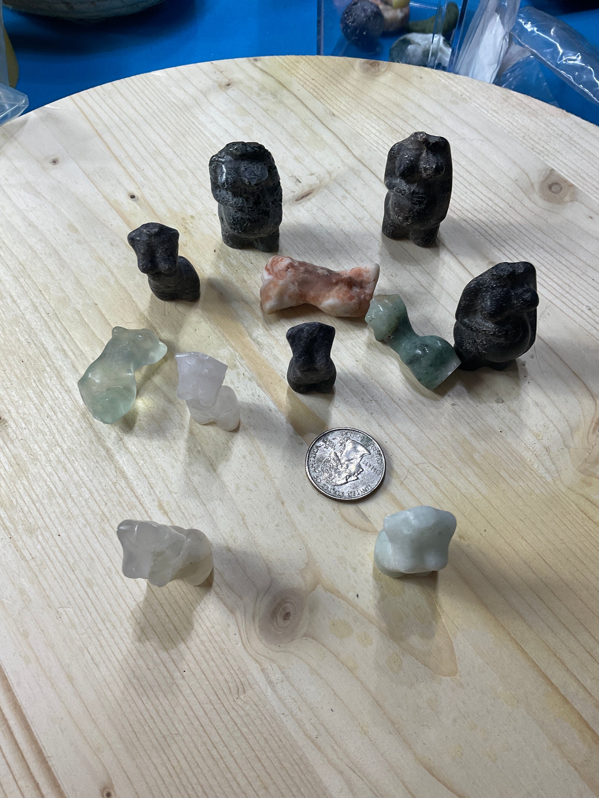Each mini lady body carving is unique in color and pattern due to natural gemstone variations, ensuring every piece is truly one of a kind.