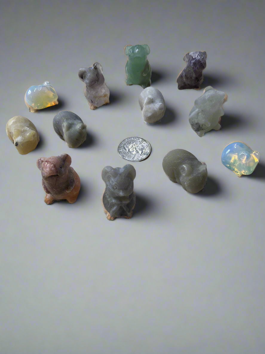 Each Mini Mouse Carving is crafted from unique stones like Jasper, Rose Quartz, or Aventurine, each bringing its own energy and charm to the piece. The polished, detailed carving captures the essence of a mouse, making it an adorable and meaningful addition to any collection.