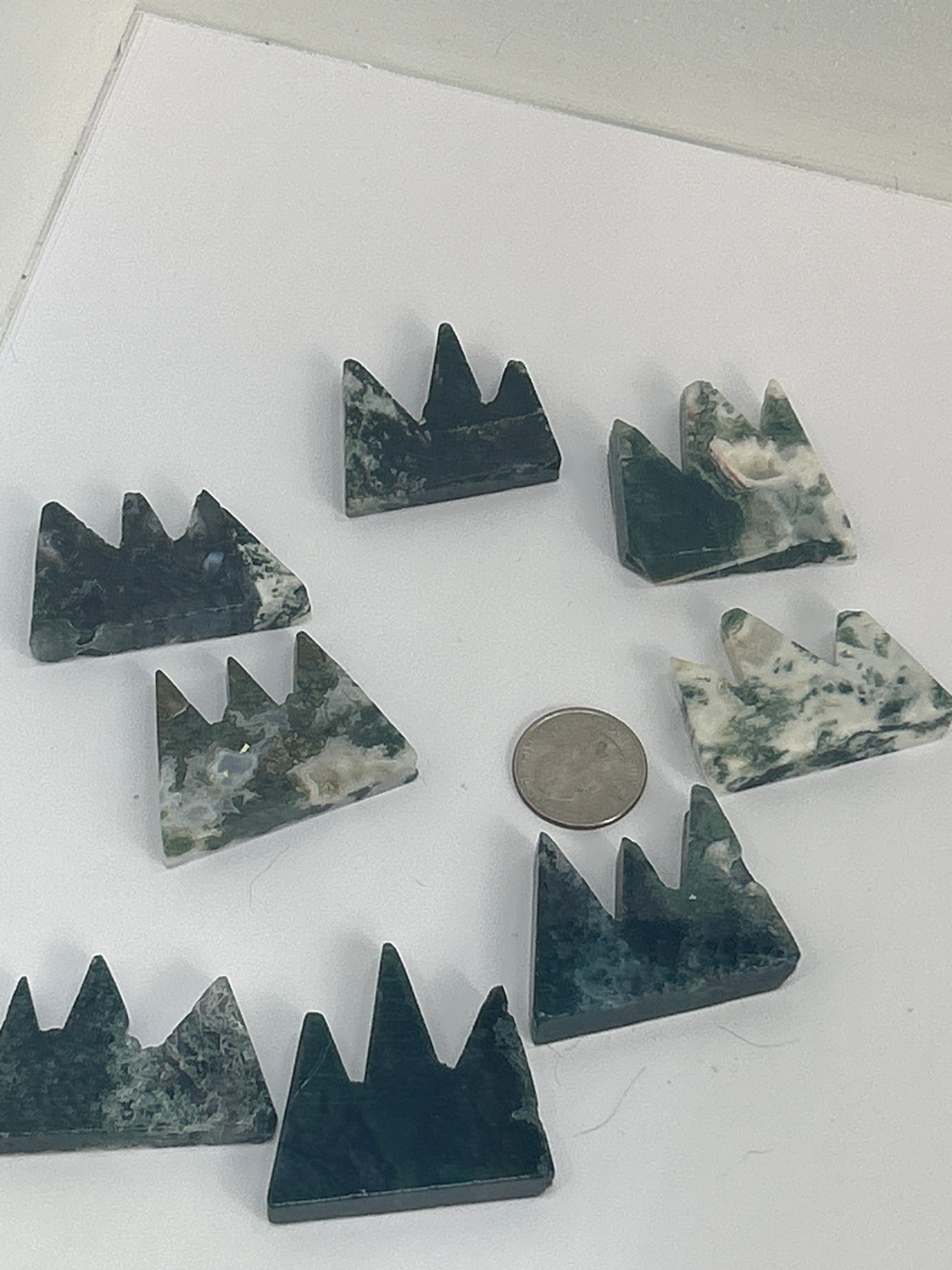 Each piece is unique in its natural patterns and tones, ensuring every Mini Moss Agate Mountain Range is truly one of a kind. 🌿✨