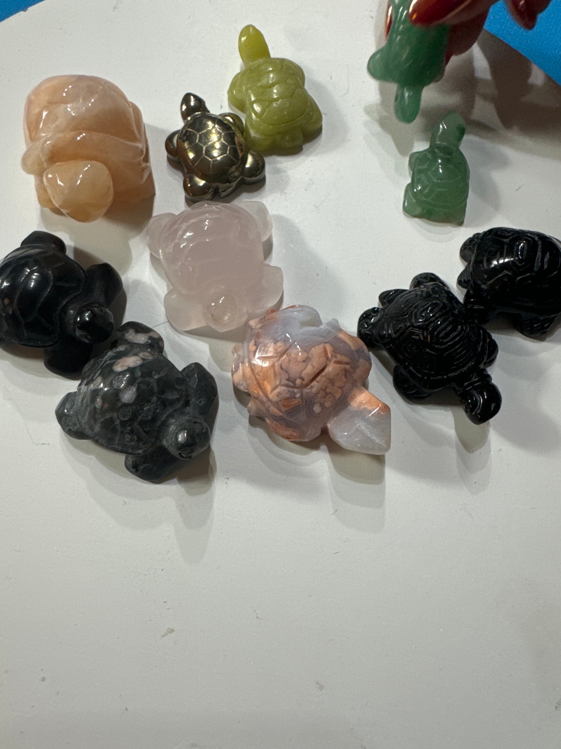 Each mini turtle carving is listed by approximate weight and size (e.g., 10g-2cm). Due to the natural characteristics of each stone, every turtle carving is unique in color and pattern, ensuring every piece is one of a kind.
