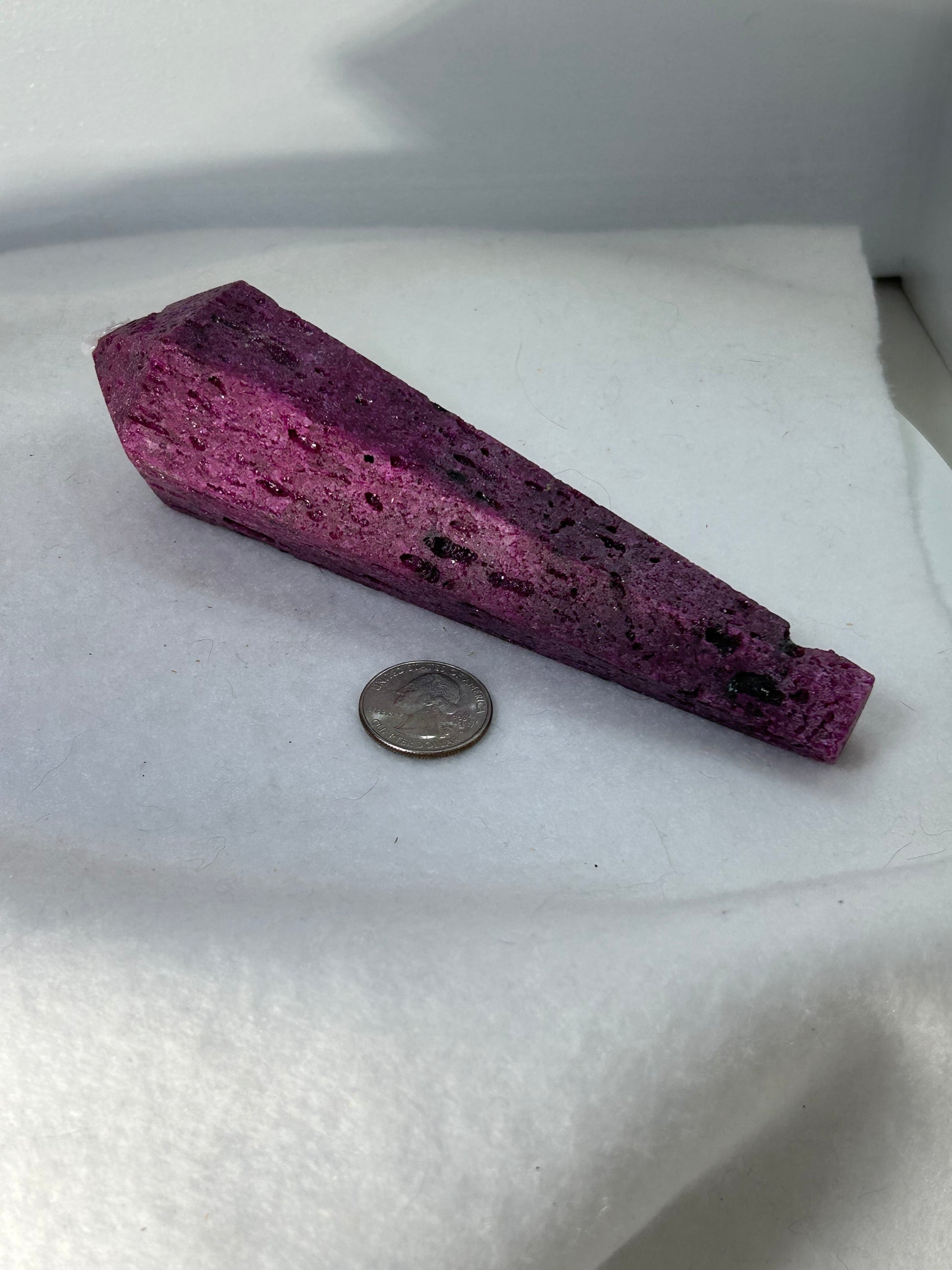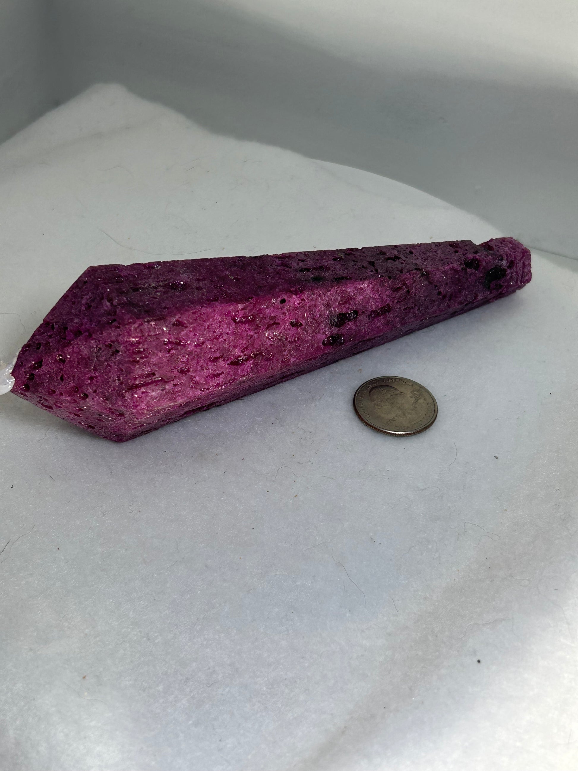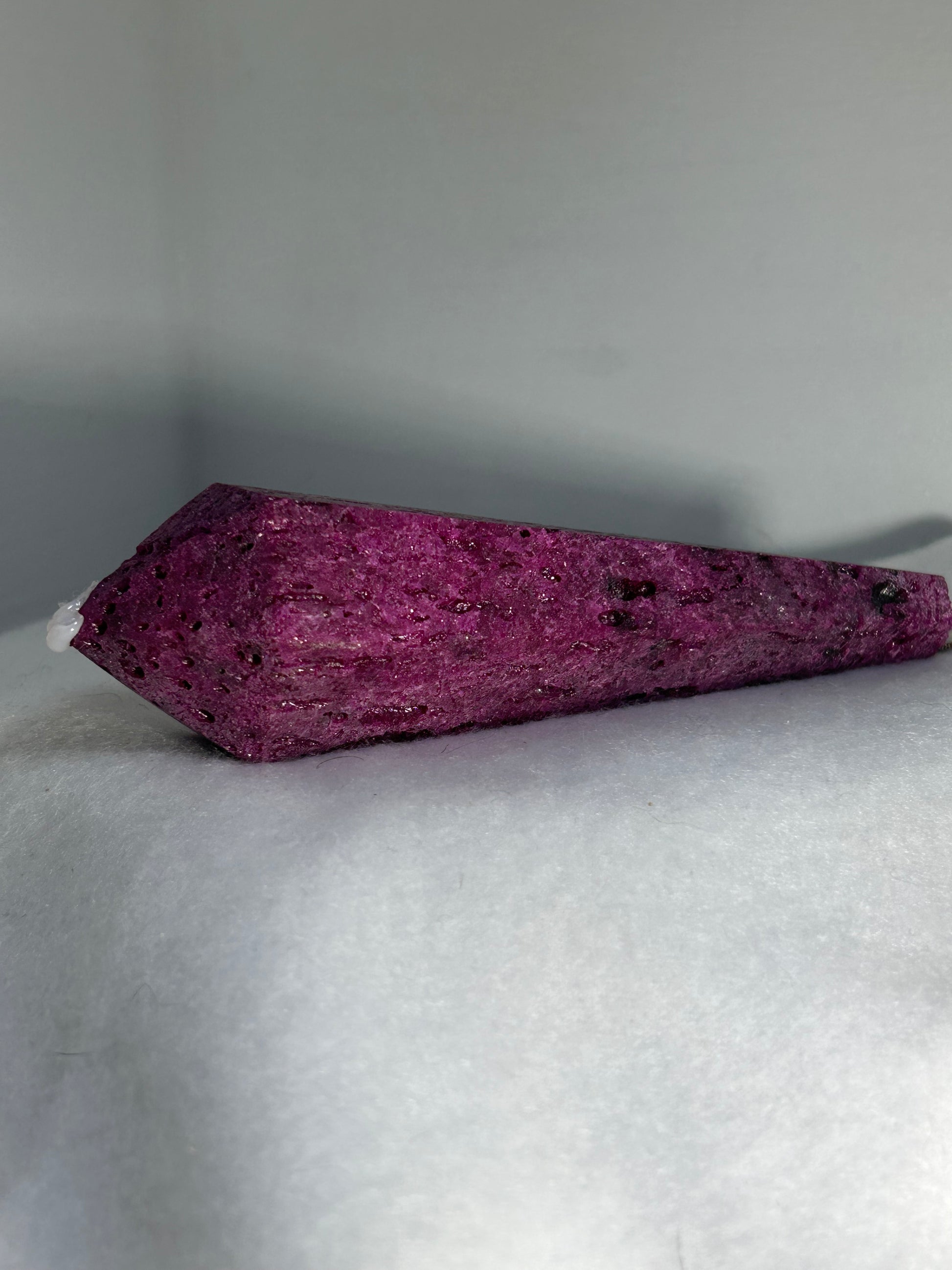Each Ruby Corundum wand is unique, with natural variations in color, pattern, and size. The wand you receive may differ slightly from the one pictured.
