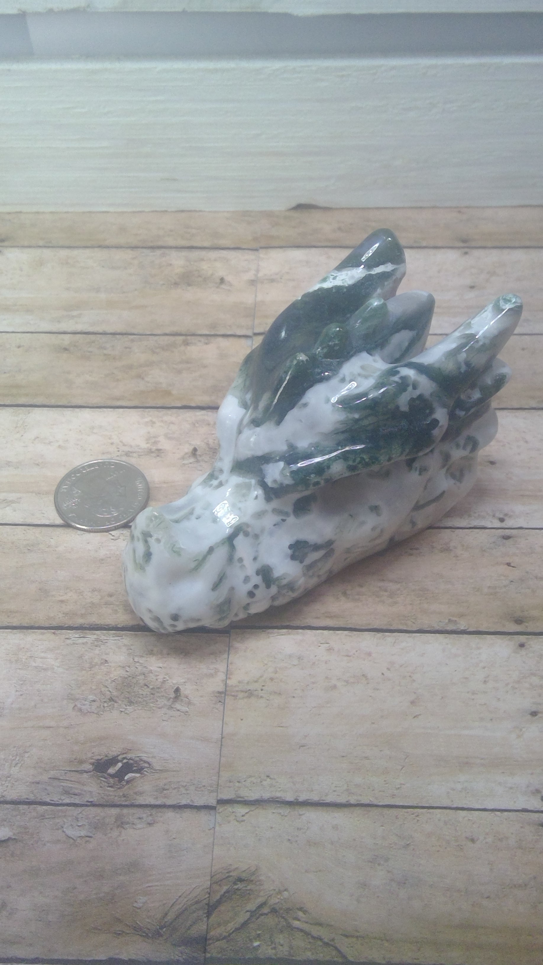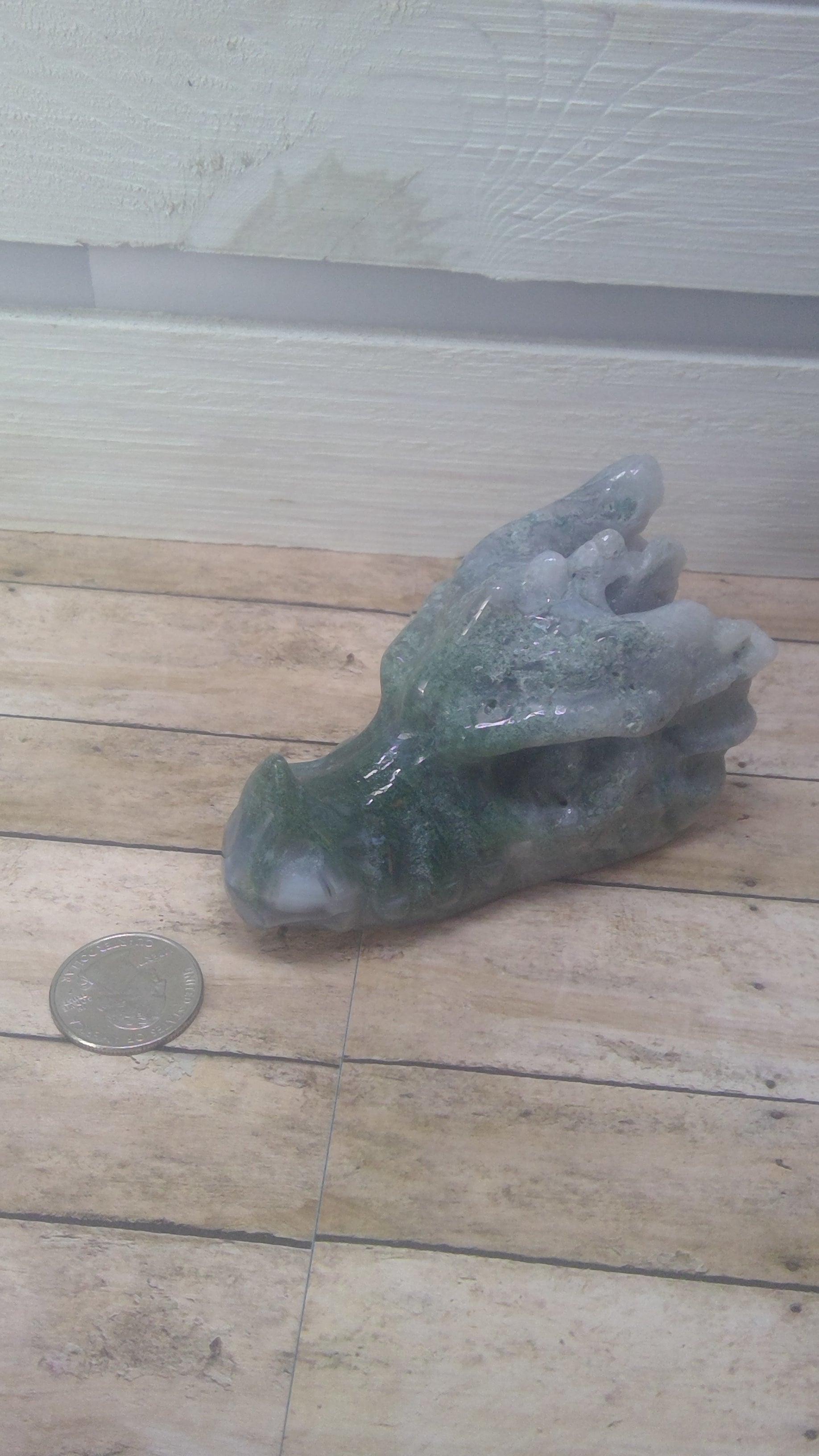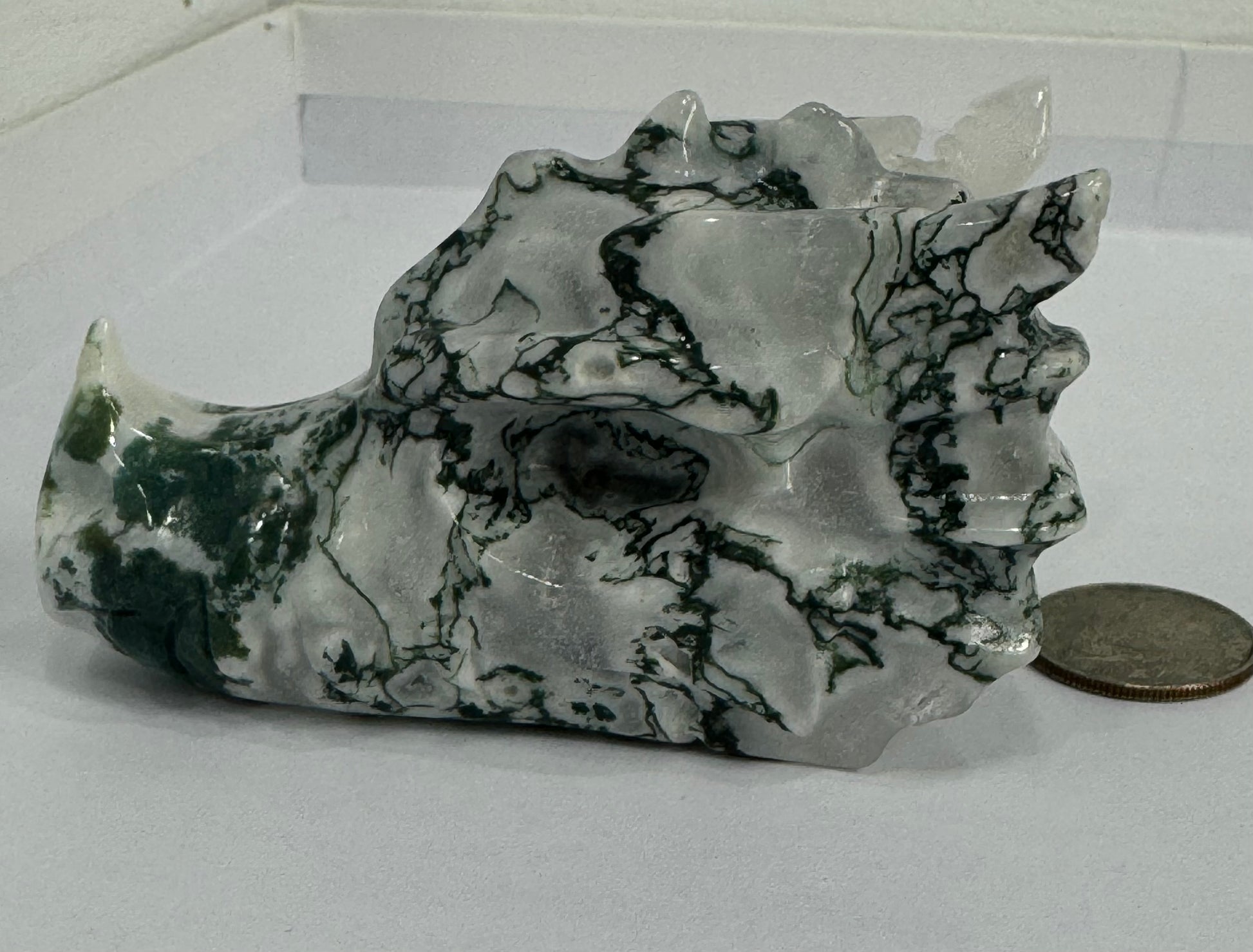 MOSS AGATE DRAGON SKULL- abundance, growth, emotional healing