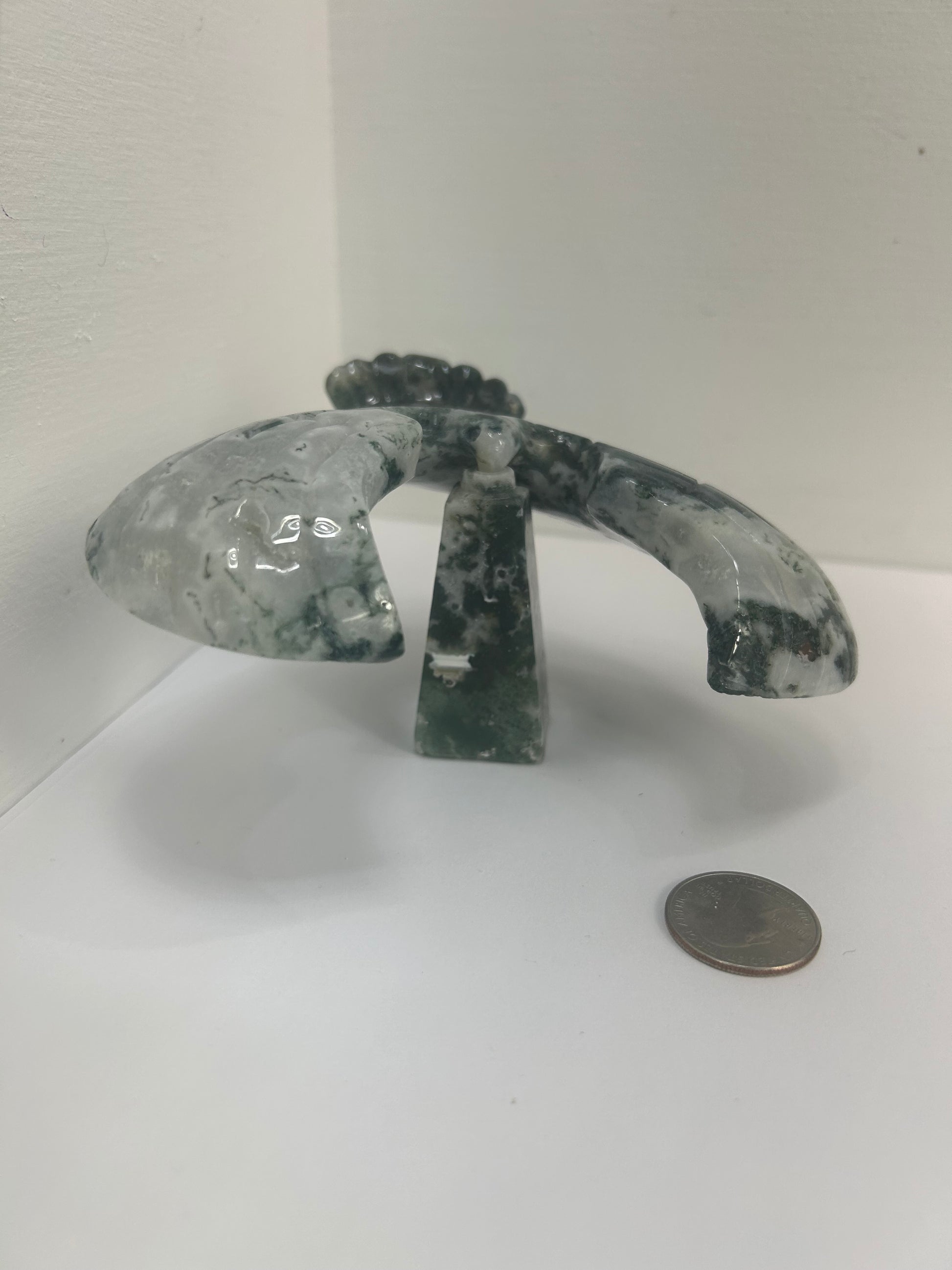 MOSS AGATE SPINNING BIRD with base- Freedom, Grounding, Natural Harmony ๐ฆ๐