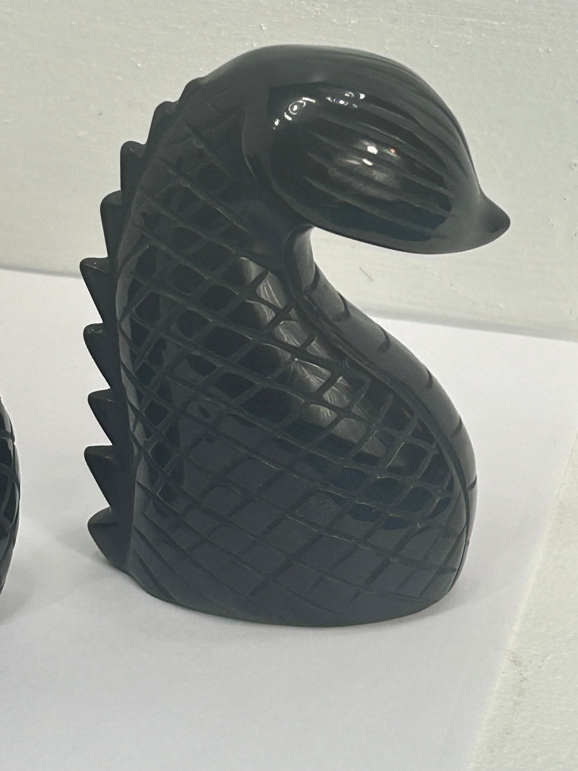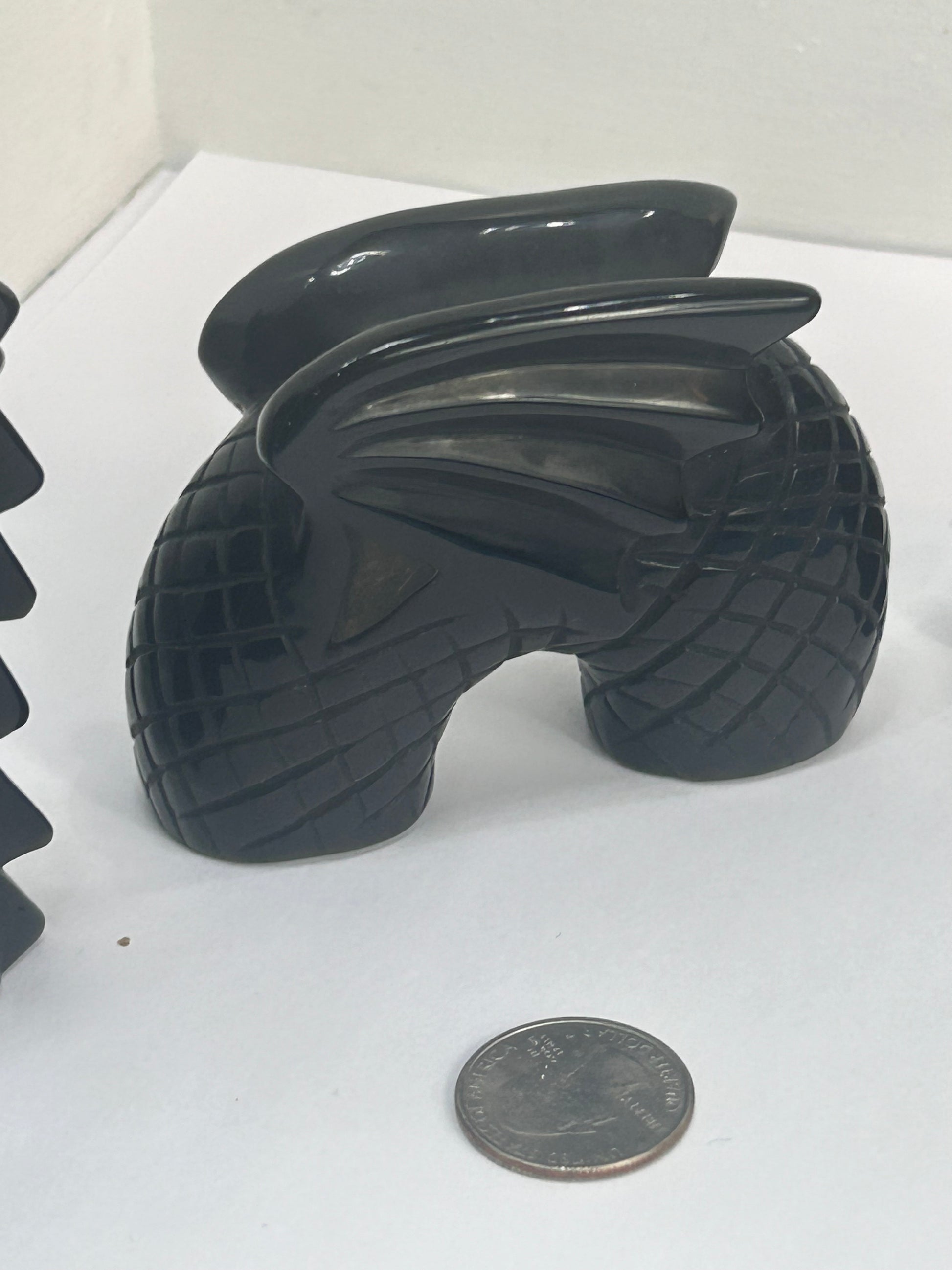Each piece in the Obsidian Dragon set is intricately carved, showcasing detailed dragon designs and the glossy, polished finish of black obsidian. The 3-piece design adds versatility and enhances its display appeal.