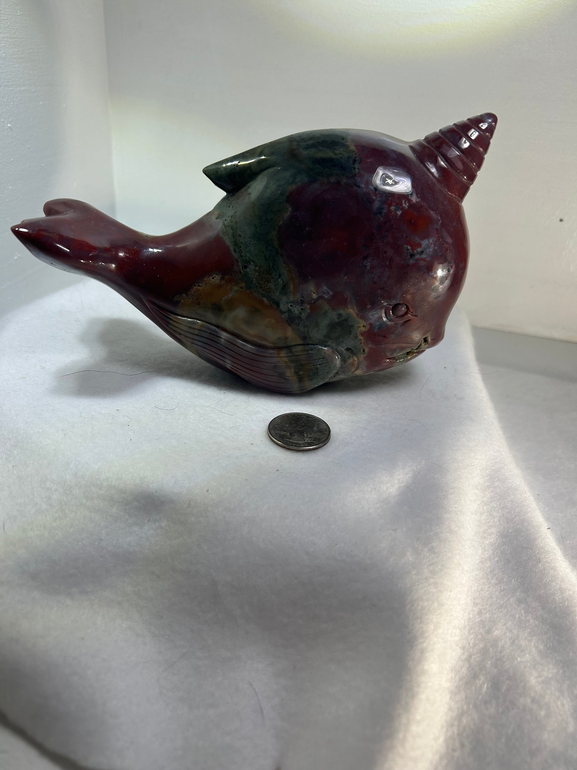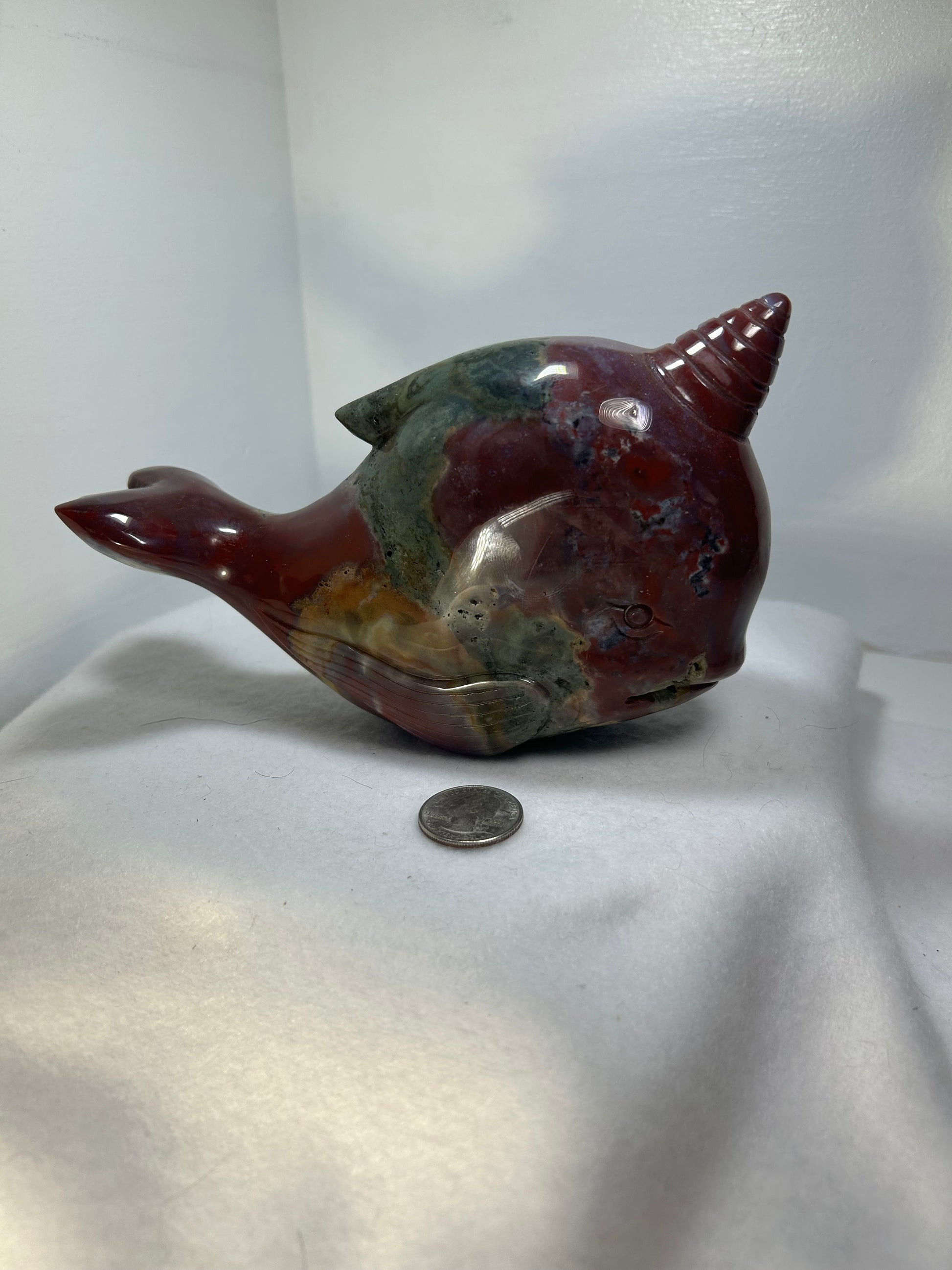 🌊🦄 **Ocean Jasper Narwhal Carving: Dive into Serenity, Wisdom, and Joy!** 🐳✨