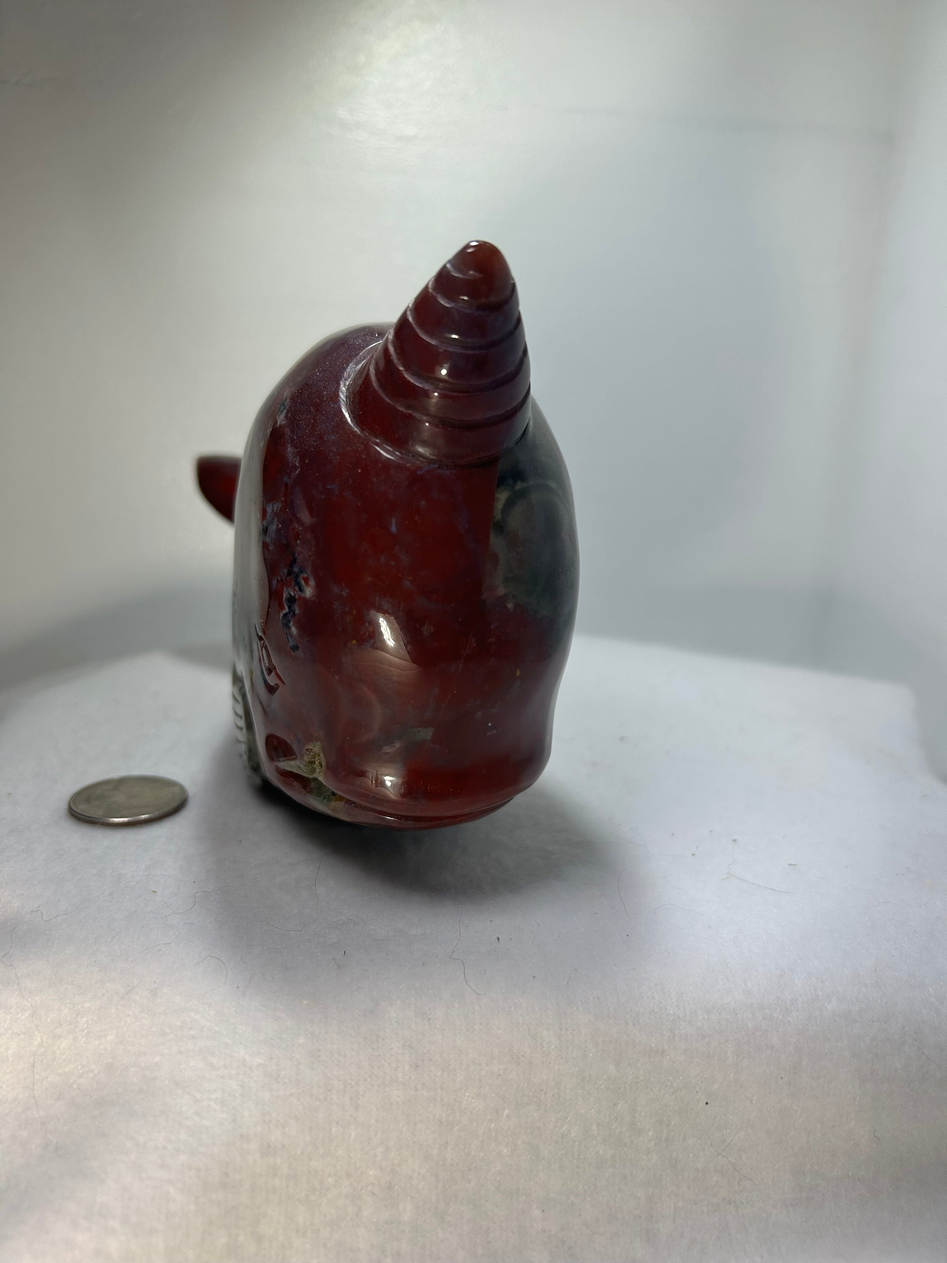 Whether displayed on your desk, in your meditation space, or as a whimsical accent in your home, our Ocean Jasper Narwhal Carving radiates a sense of serenity, wisdom, and joy. Let its playful energy inspire you to dive deep into your imagination and explore the wonders of the ocean within.