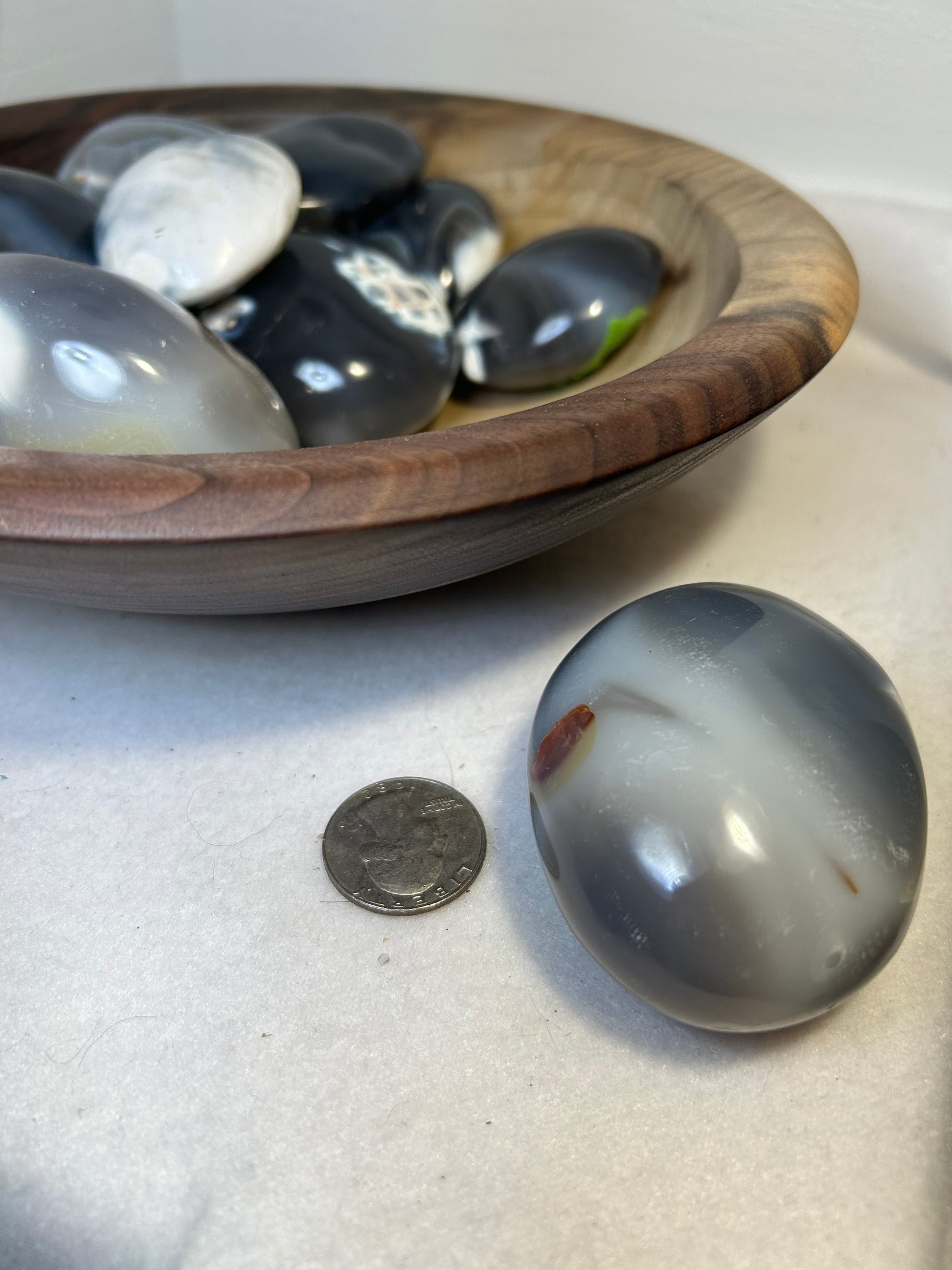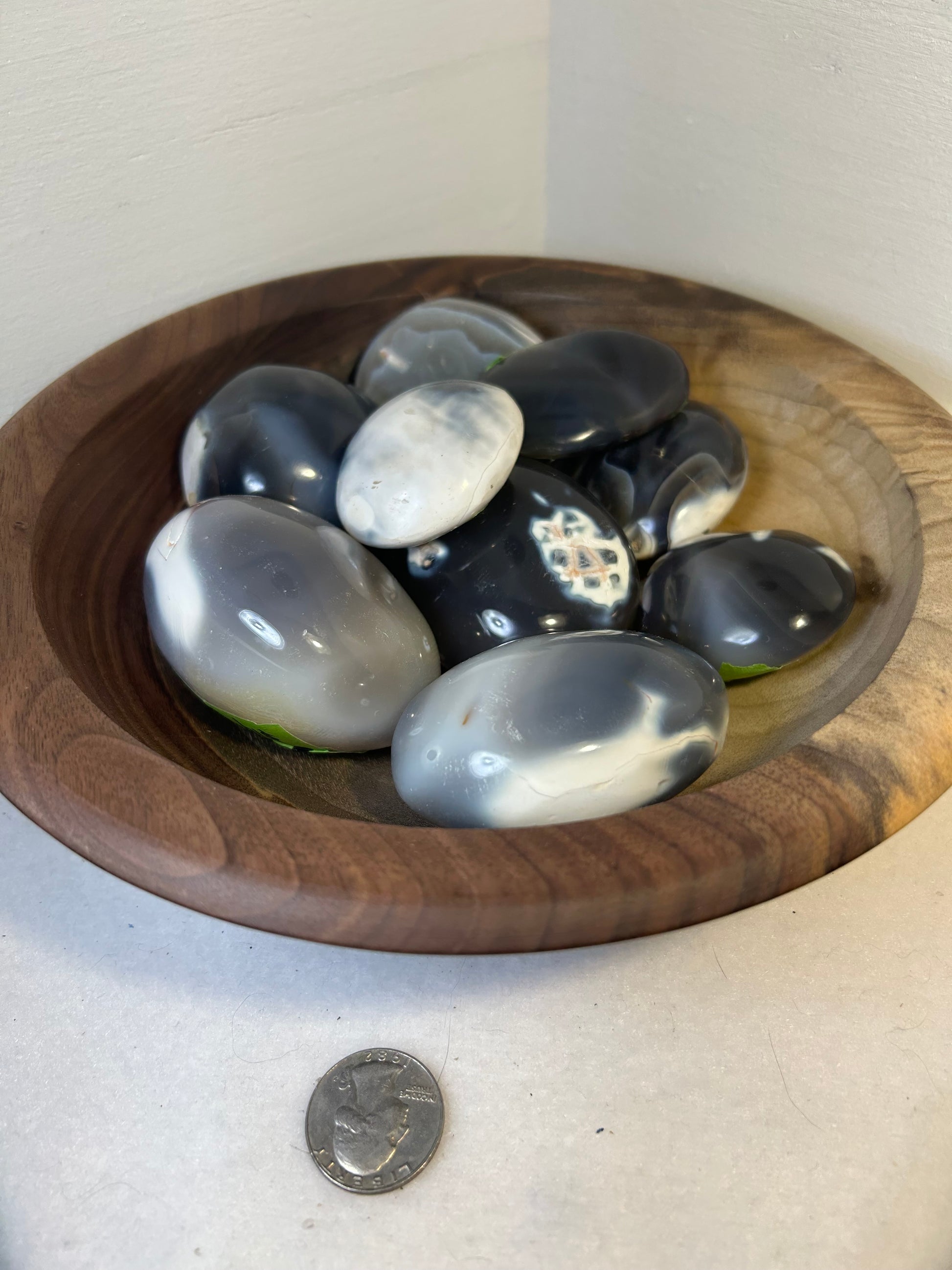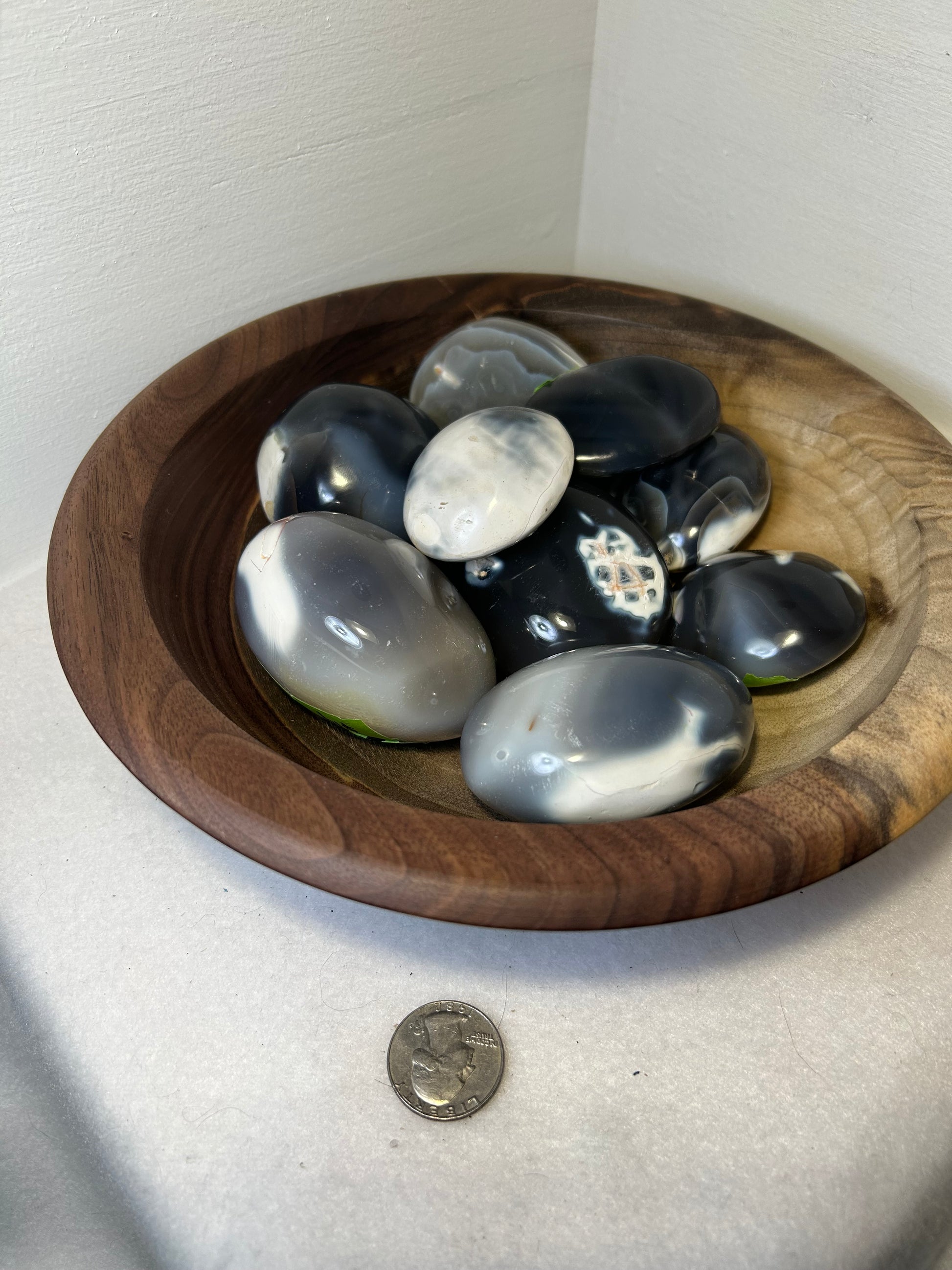 Each Orca Agate palm stone is unique, with natural variations in color, pattern, and size. The stone you receive may differ slightly from the one pictured.