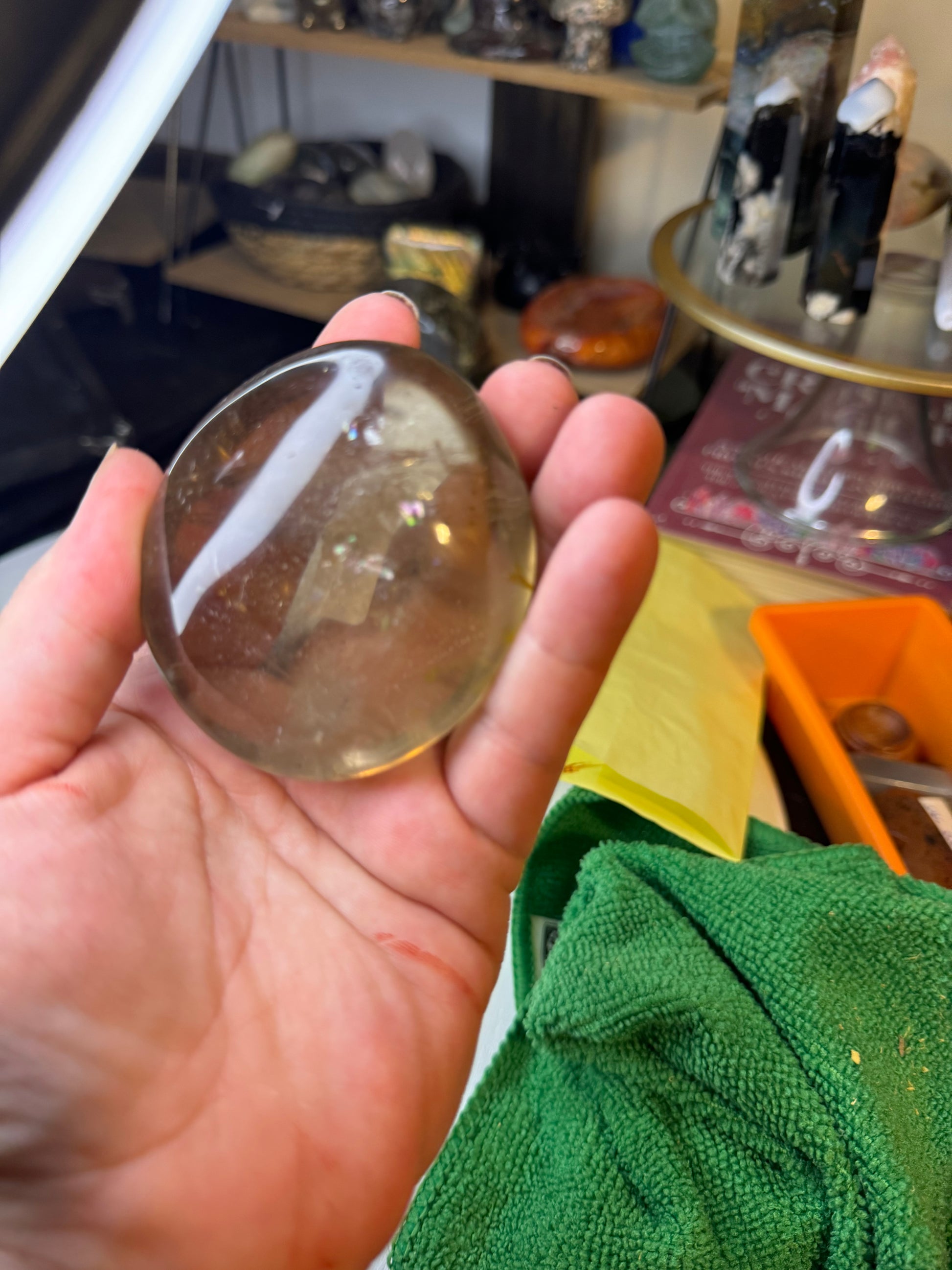 SMOKEY QUARTZ PALM STONE-grounding, protection, and spiritual cleansing
