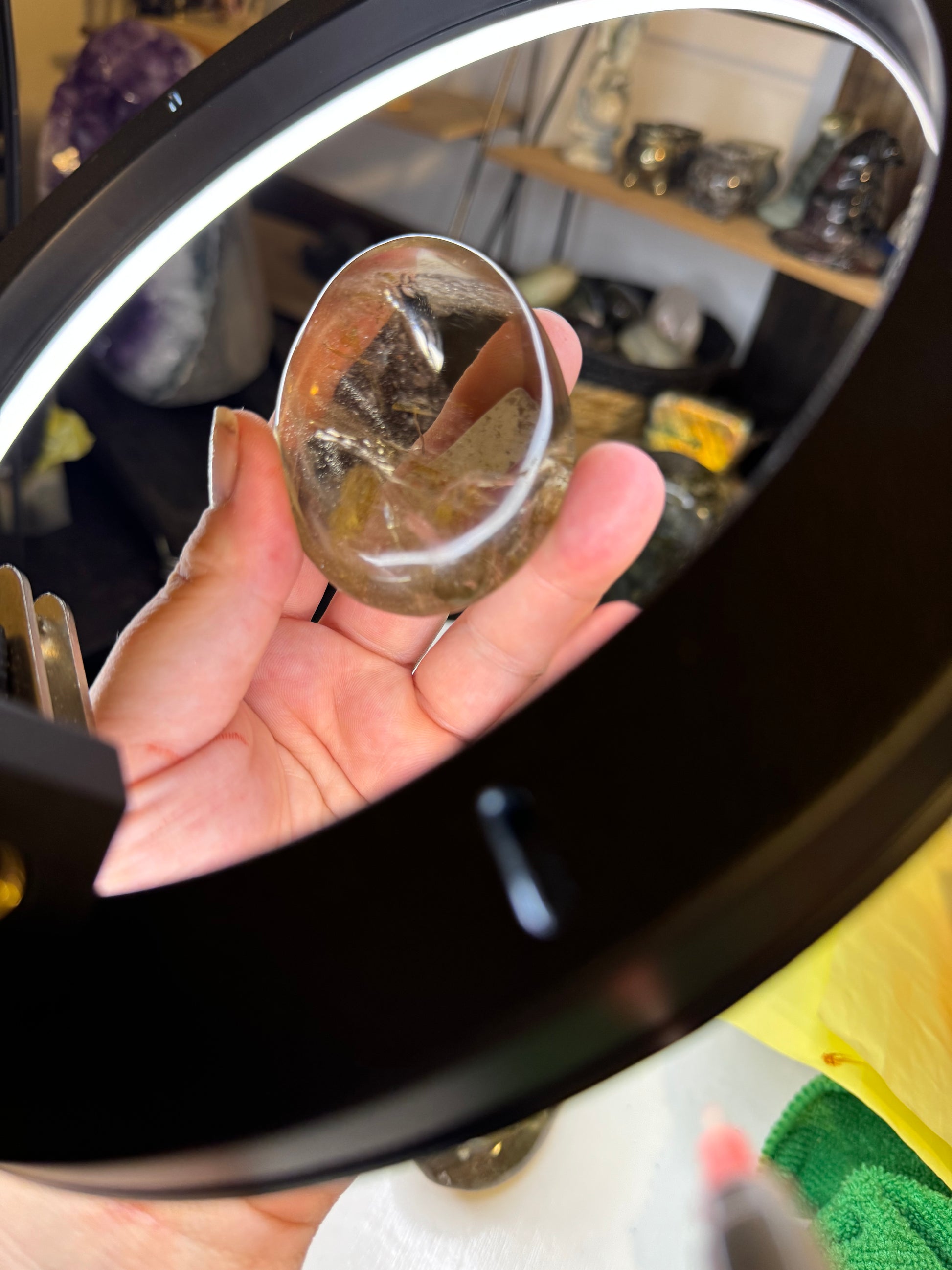 Harness the grounding and protective energies of our Smokey Quartz Palm Stone, crafted to fit perfectly in the palm of your hand. This sleek and polished crystal is not only visually stunning but also holds powerful metaphysical properties to support you on your spiritual journey.