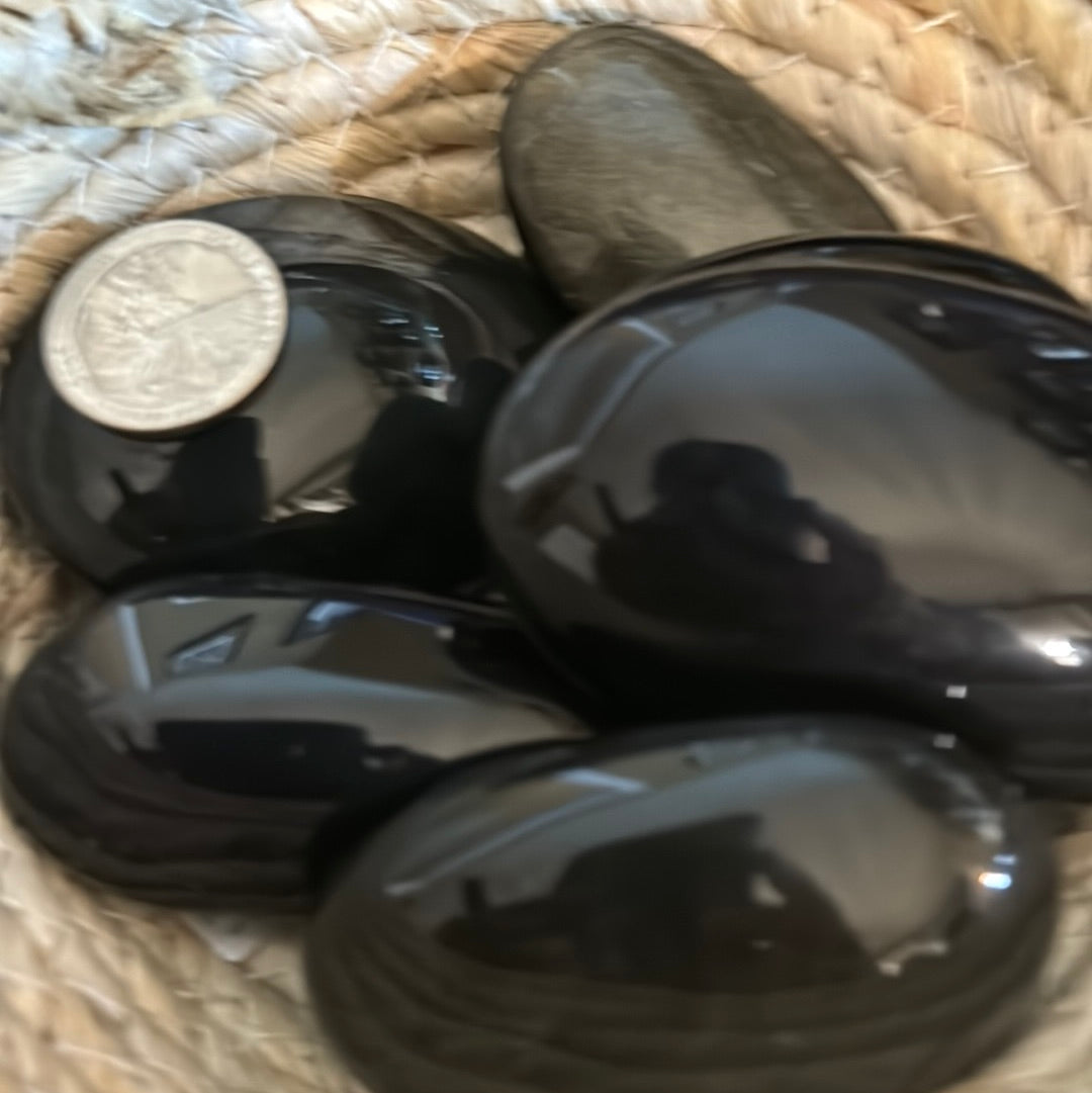 Each Obsidian palm stone is unique, with natural variations in color, pattern, and size. The stone you receive may differ slightly from the one pictured.
