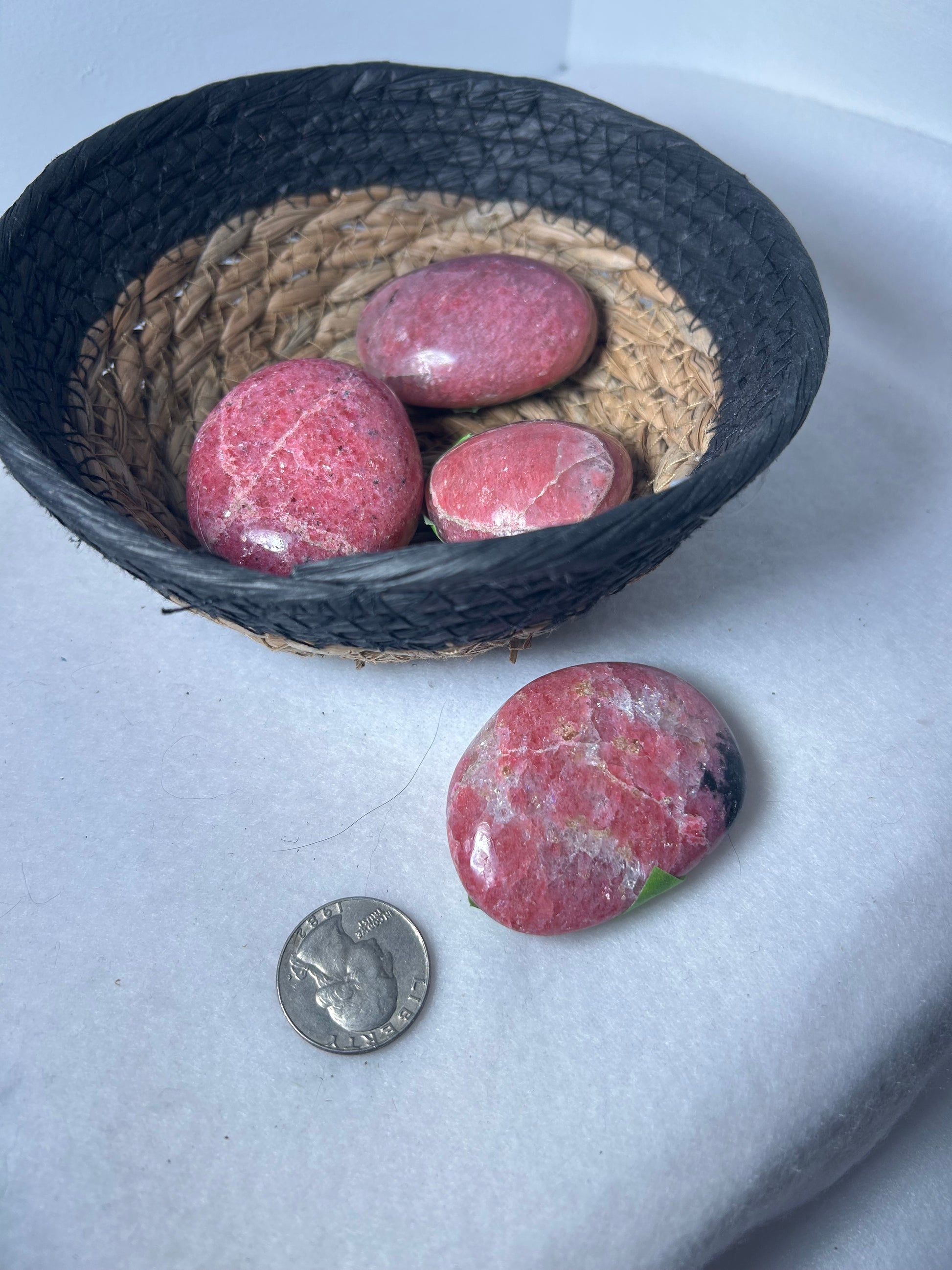 RHODONITE PALM STONE-compassion, gratefulness, healing