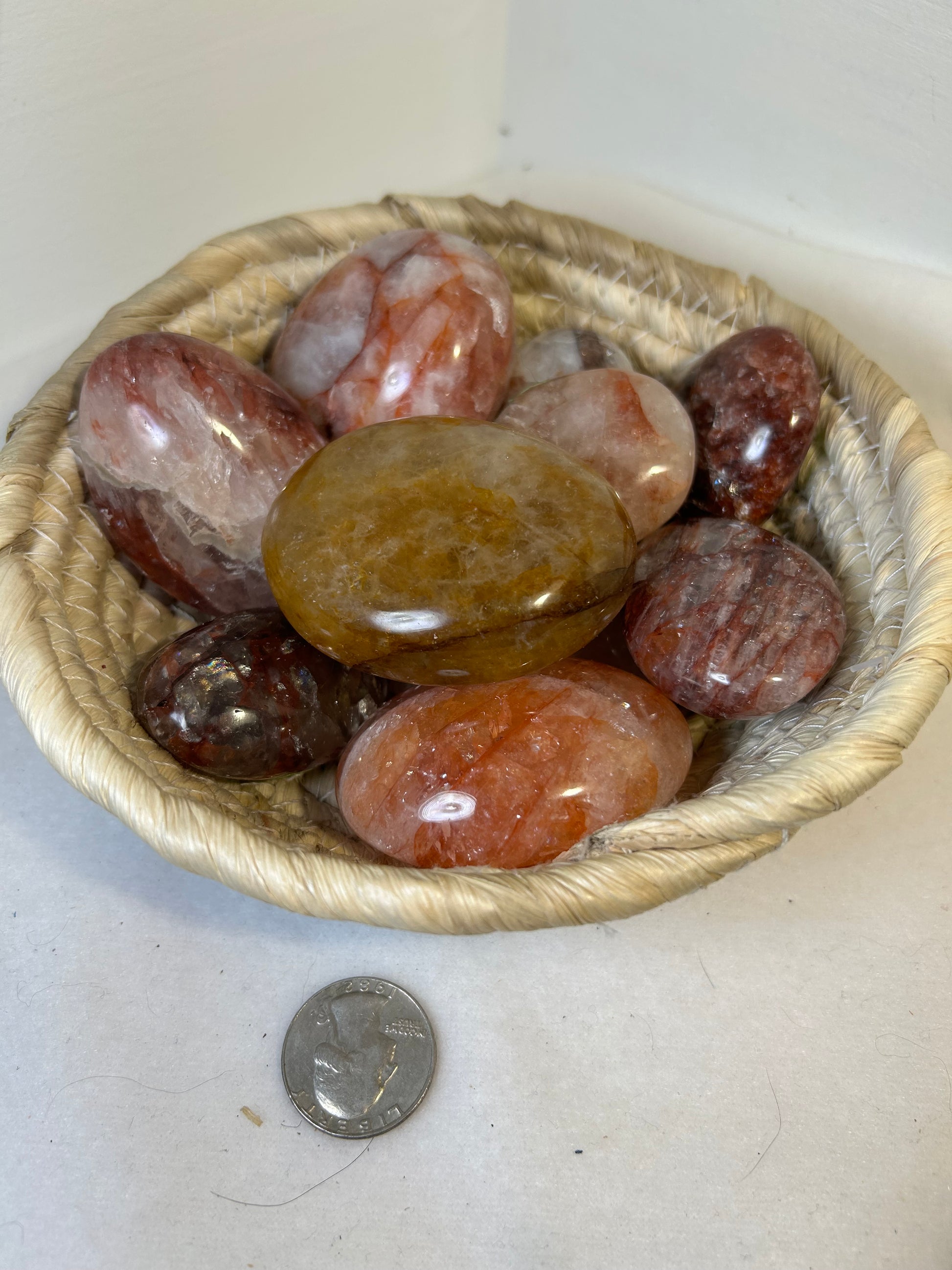 Each Fire Quartz palm stone is unique, with natural variations in color, pattern, and size. The stone you receive may differ slightly from the one pictured.