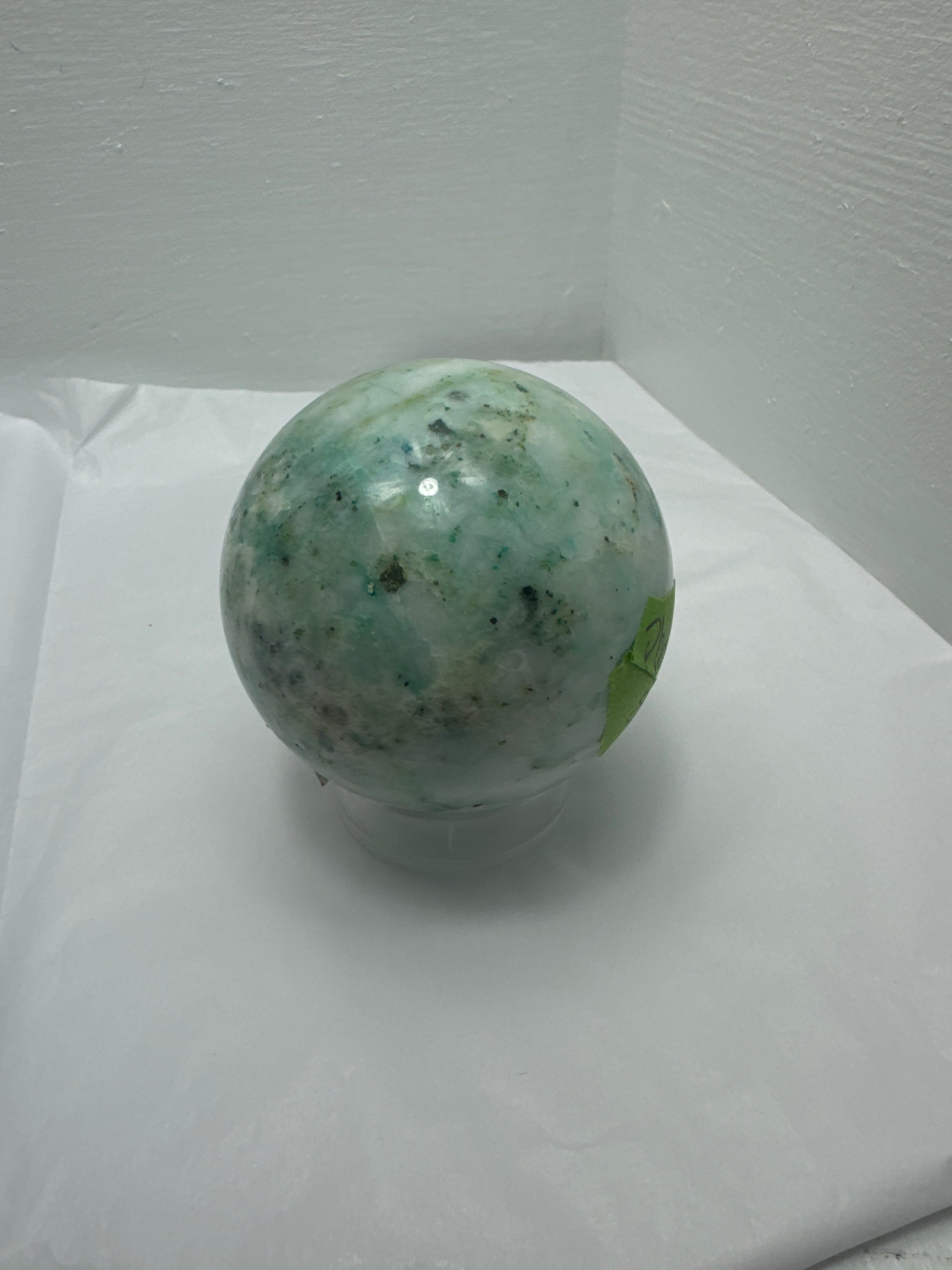 Each Phoenix Stone Sphere features a stunning mix of green, blue, and copper hues, with swirls and patterns that are as captivating as the energy it carries. Its smooth, polished surface and perfect spherical shape make it a beautiful addition to any crystal collection or decor.