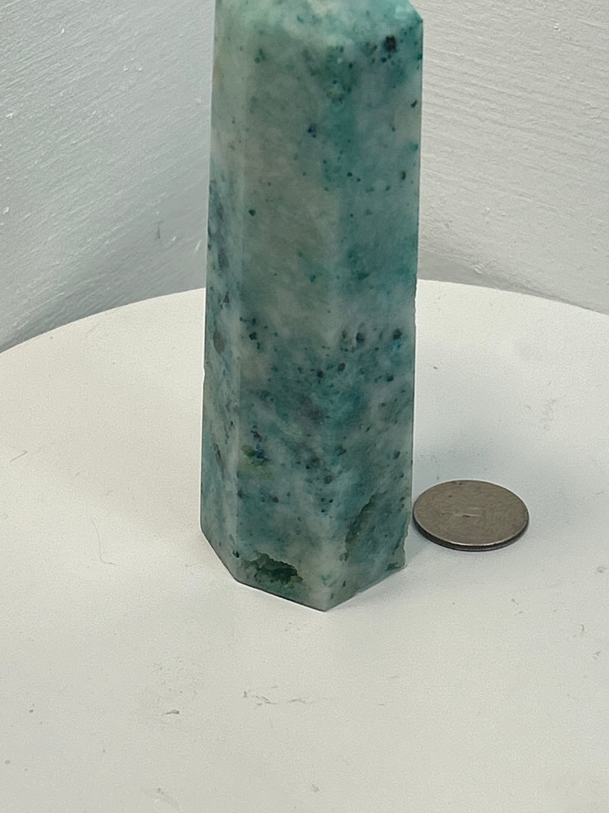 Each Phoenix Stone Tower is crafted from genuine phoenix stone, showcasing stunning swirls of green, turquoise, and earthy tones. The polished finish enhances its vibrant colors and unique patterns, making it a visually captivating and energetically powerful centerpiece.