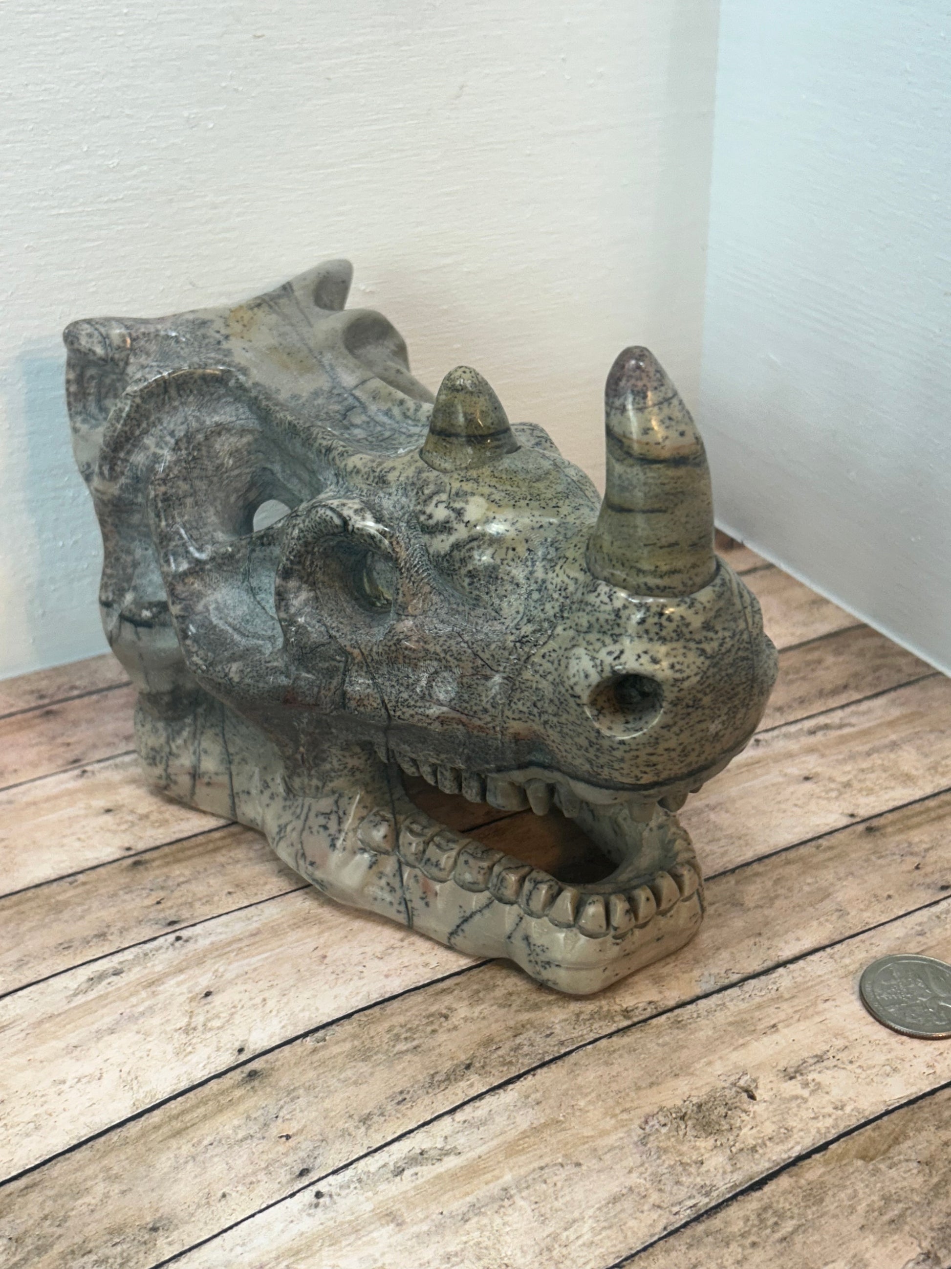 PICASSO JASPER DINO SKULL WITH HORN- Strength, Transformation, and Creativity