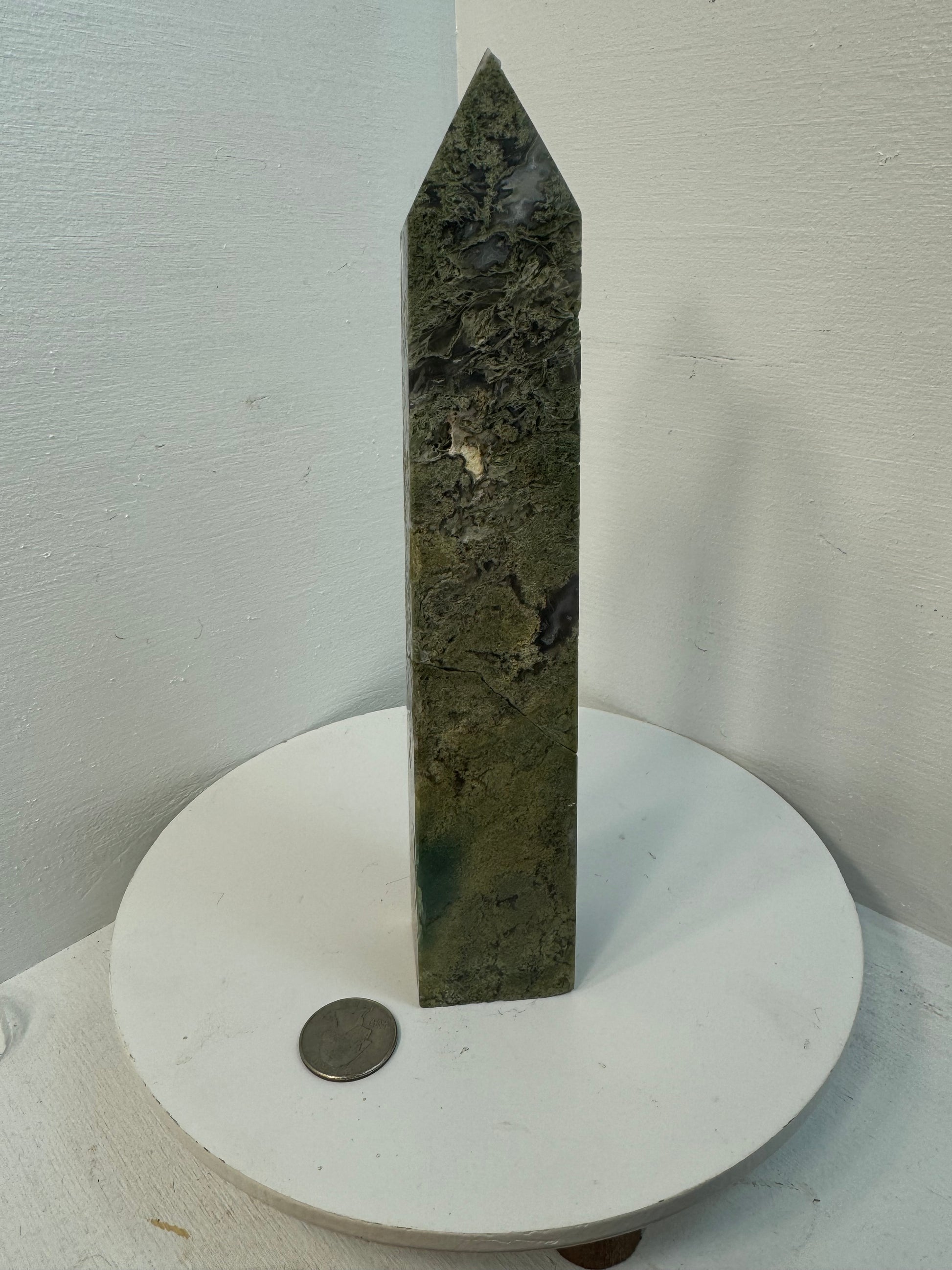 Each Rainforest Jasper Tower is crafted from genuine rainforest jasper, showcasing a stunning array of greens, browns, and soft earthy patterns that resemble lush forest landscapes. The polished tower design amplifies its energy and makes it a striking decorative piece.