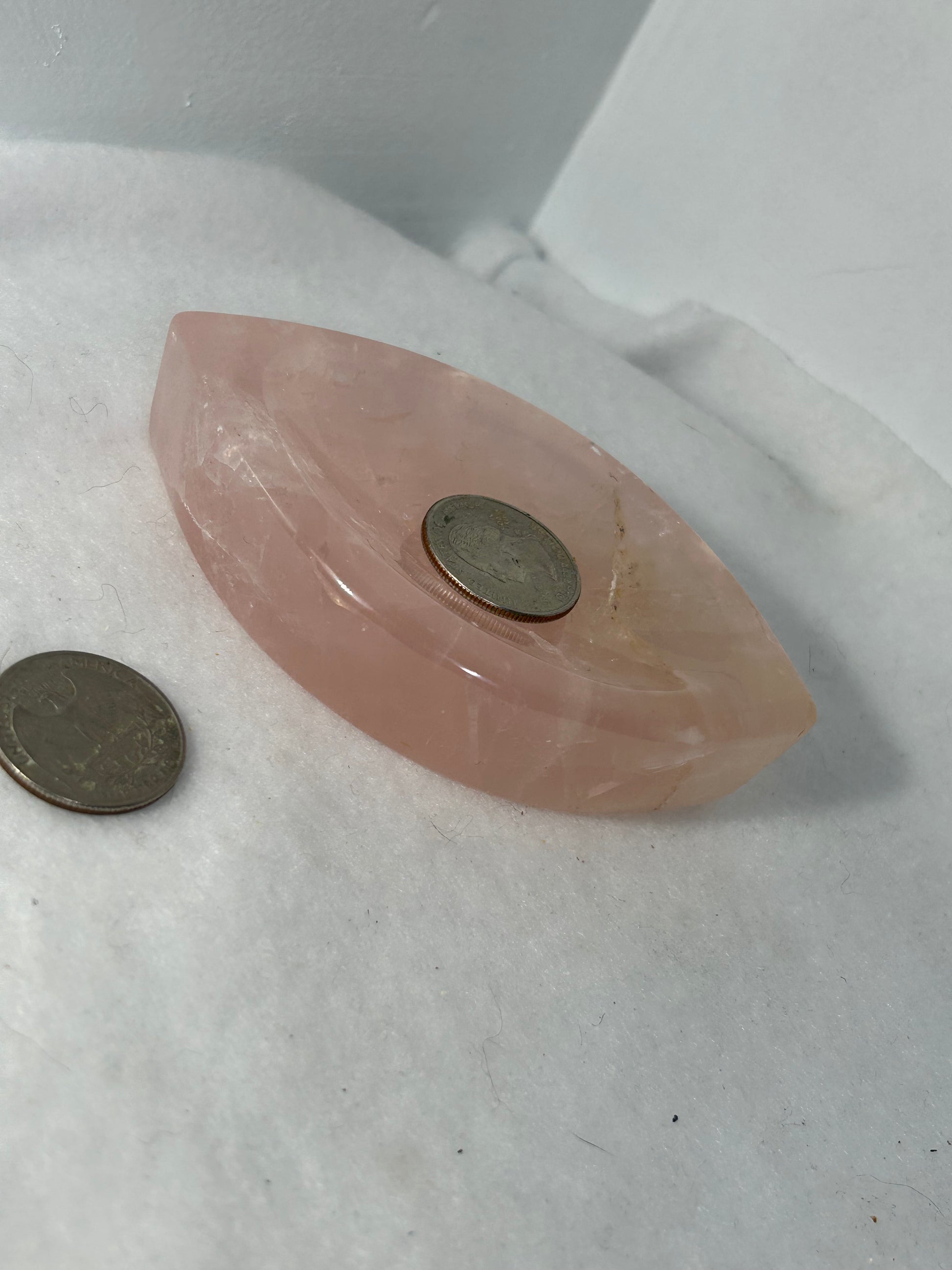 Please note that due to the natural variations in crystals, each Rose Quartz Bowl may vary slightly in color, texture, and appearance. The images provided are for reference purposes only, and the bowl you receive may differ from the ones depicted.